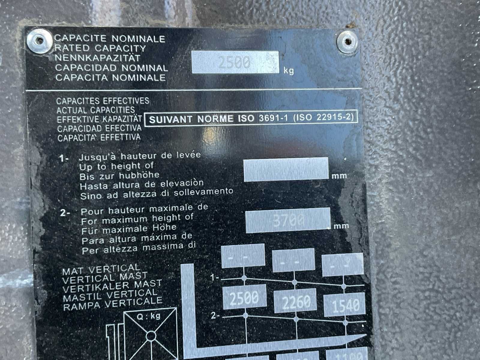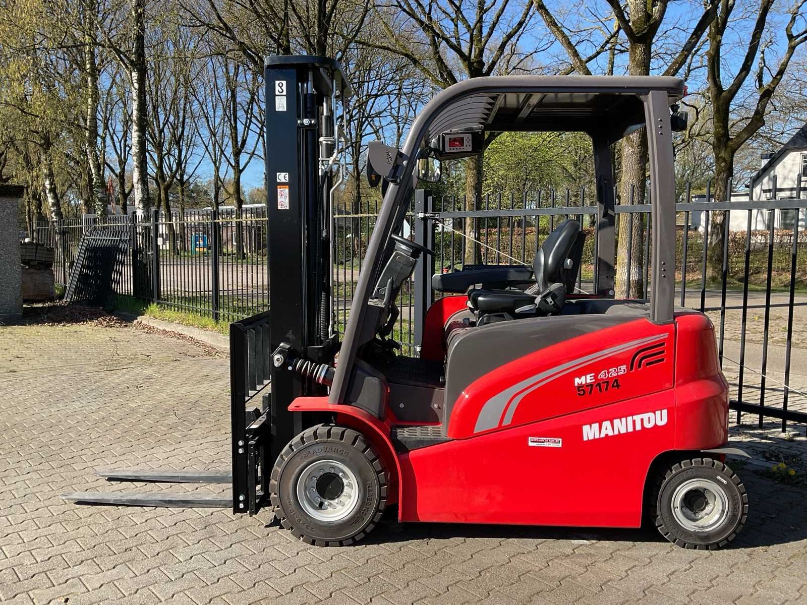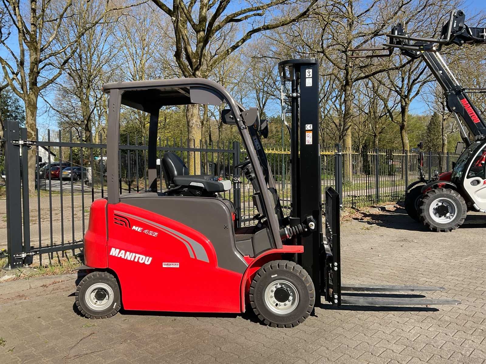 Voorzien van: digitaal display, Merk: Manitou Type: ME 425 80V Bouwjaar: 2022 Serienummer: MAN00000V00865685 Brandstof: elektrisch Mast: duplex Soort band: lucht Aantal wielen: 4 Afgelezen urenstand: 48 Side-shift: true Hydraulisch verstelbare lepels: true Duplex mast: true Eigen gewicht: 5080kg Hefvermogen: 2500kg Lepellengte: 1070mm Max. hefhoogte: 3700mm Totale afmeting L: 3600mm Totale afmeting Breedte: 1250mm Totale afmeting Hoogte: 2370mm