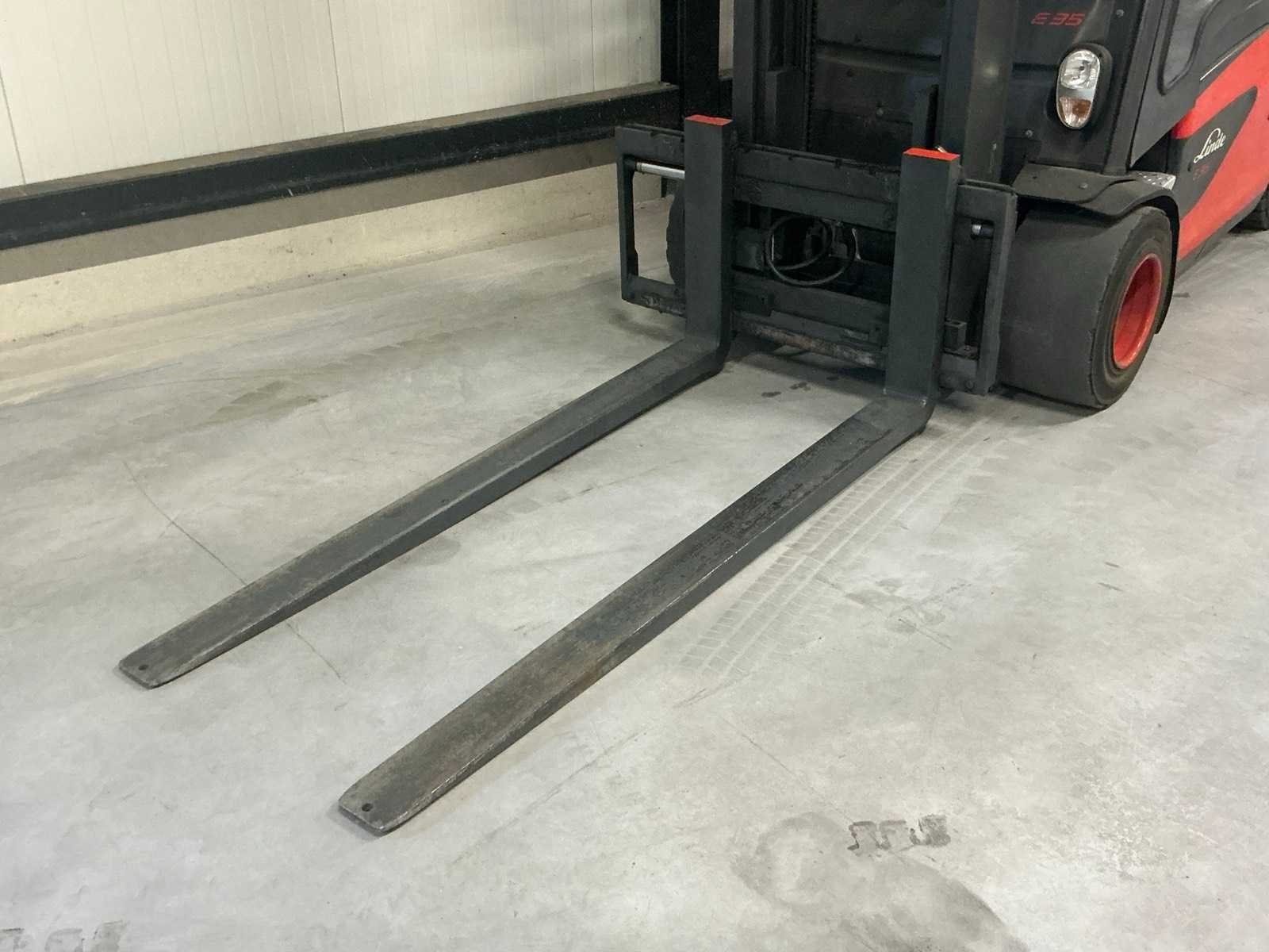 Merk: Linde Type: E35L-01 Bouwjaar: 2019 Serienummer: H2X387V04042 Brandstof: Elektrisch Mast: Duplex Soort band: Volrubber banden Aantal wielen: 4 Afgelezen urenstand: 3212 Side-shift: true Duplex mast: true Eigen gewicht: 5800kg Hefvermogen: 3500kg Lepellengte: 1800mm Max. hefhoogte: 5045mm Vol rubber banden: true Totale afmeting L: 3700mm Totale afmeting Breedte: 1300mm Totale afmeting Hoogte: 3100mm