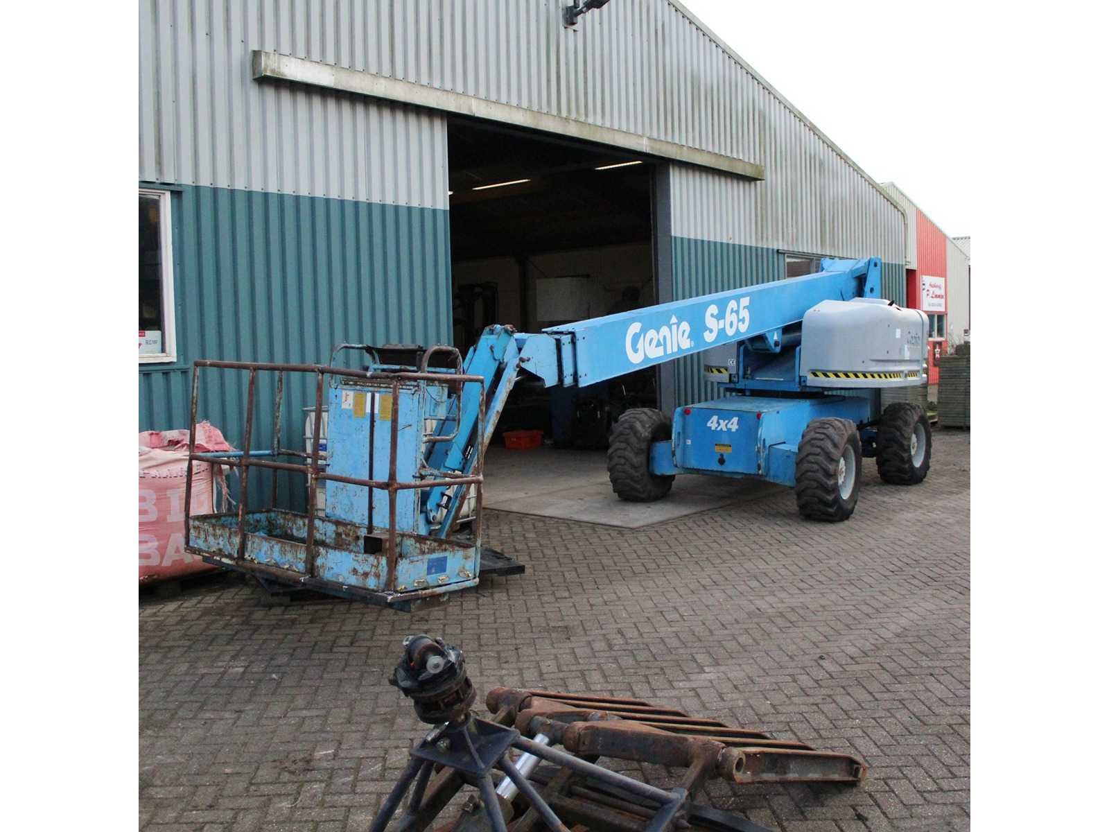 Genie S-65 - Brandstof: Diesel - Werkhoogte: 21,8 Meter - Motor: 4 cilinder Deutz luchtgekoeld Merk: Genie Type: S-65 Bouwjaar: 2000 Diesel: true Telescoop hoogwerker: true Werkhoogte: 21800mm Horizontale rijkwijdte: 17900mm Plateau afm. l: 760mm Plateau afm. b: 1850mm Platform capaciteit: 230kg Afgelezen urenstand: 4127 Eigen gewicht: 12882kg Totale afmeting L: 9500mm Totale afmeting Breedte: 2490mm Totale afmeting Hoogte: 2720mm