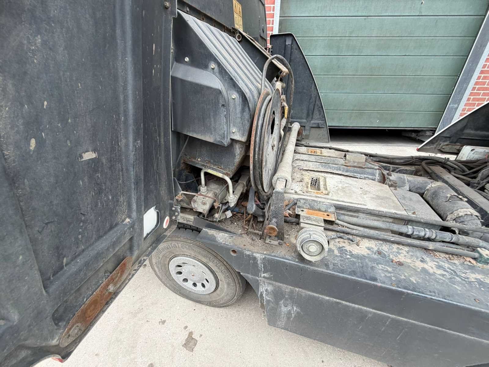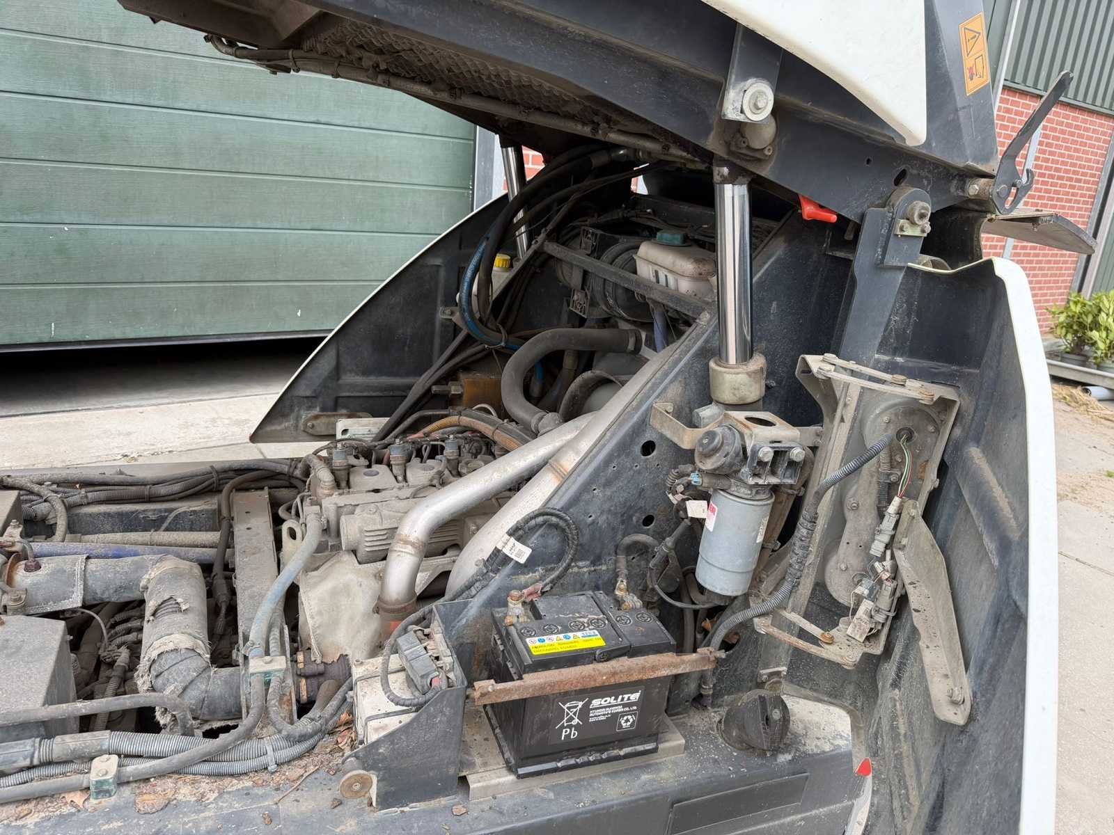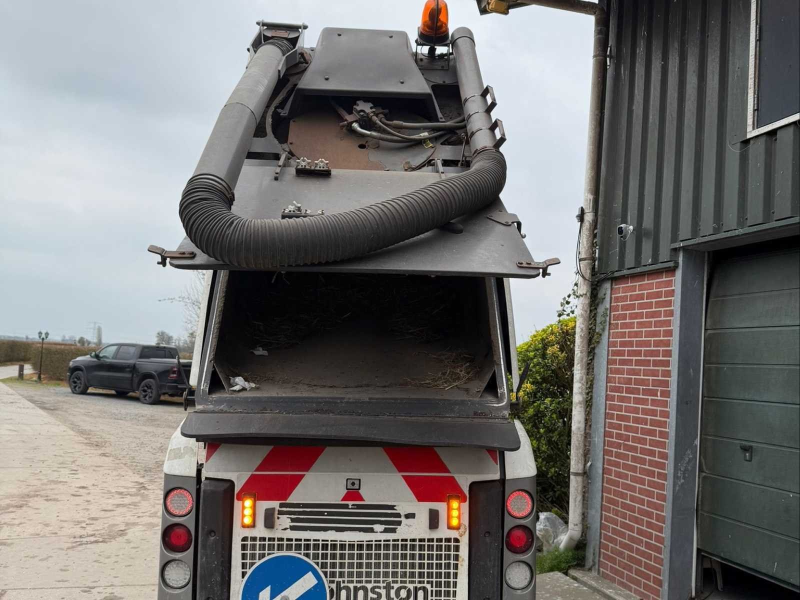 Johnston veegmachine uit 2013 Dit is een Johnston C202 compacte straatveegmachine, Capaciteit: (vuilcontainer) van 1,8 tot 2,0 \(m^{3}\) en een watertank van 152 tot 300 liter. Veegtechniek: Beschikt over voorwaarts gerichte borstels met een veegbreedte tot 2,5 meter, en een zuigmond voor het opzuigen van vuil. Kenmerken: Uitgerust met een stofonderdrukkingssysteem via verstuivers, watervoorziening aan de voorzijde, en vaak een zevenduizendscherm in de cabine voor bediening. Prestaties: Ontworpen voor stedelijke gebieden met een werk- en rijsnelheid die geschikt is voor het reinigen van trottoirs en wegen. Merk: Johnston Type: C202 Bouwjaar: 2013 Serienummer: 2000/203685/0213 Afgelezen urenstand: 5390 Eigen gewicht: 4750kg Inhoud waterreservoir: 300l Werkbreedte: 2500mm Totale afmeting L: 4000mm Totale afmeting Breedte: 1100mm