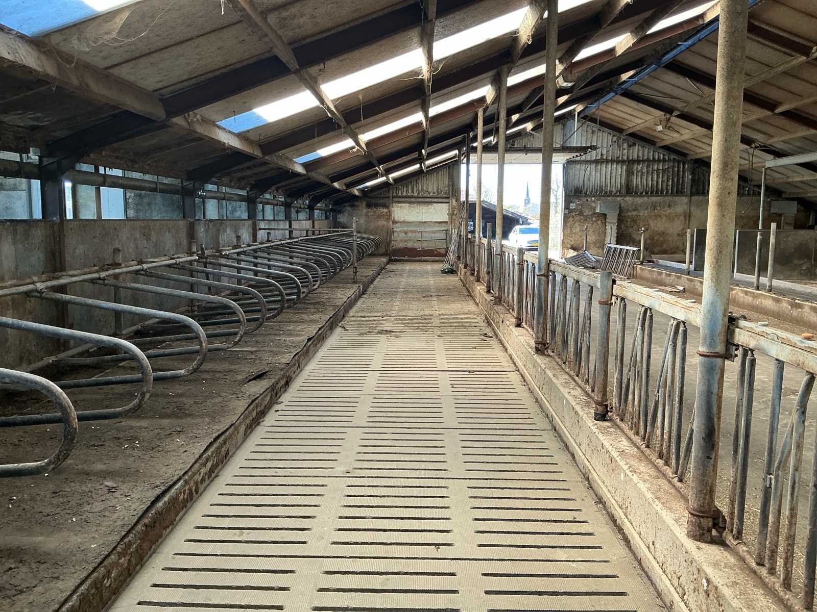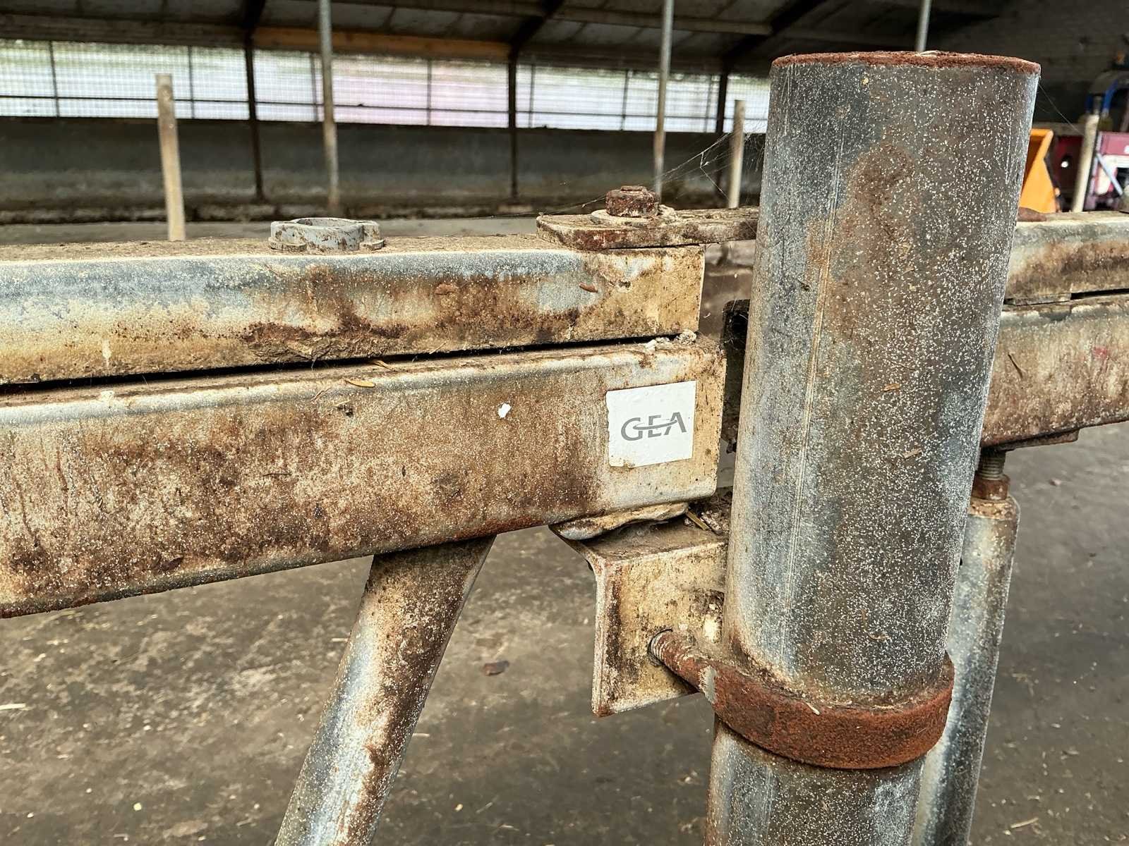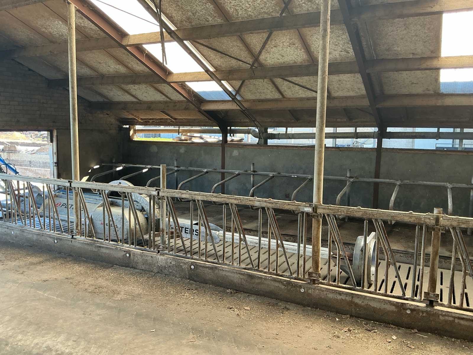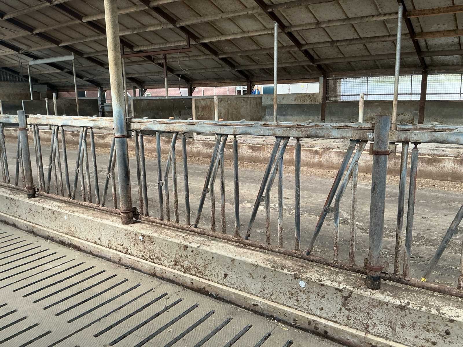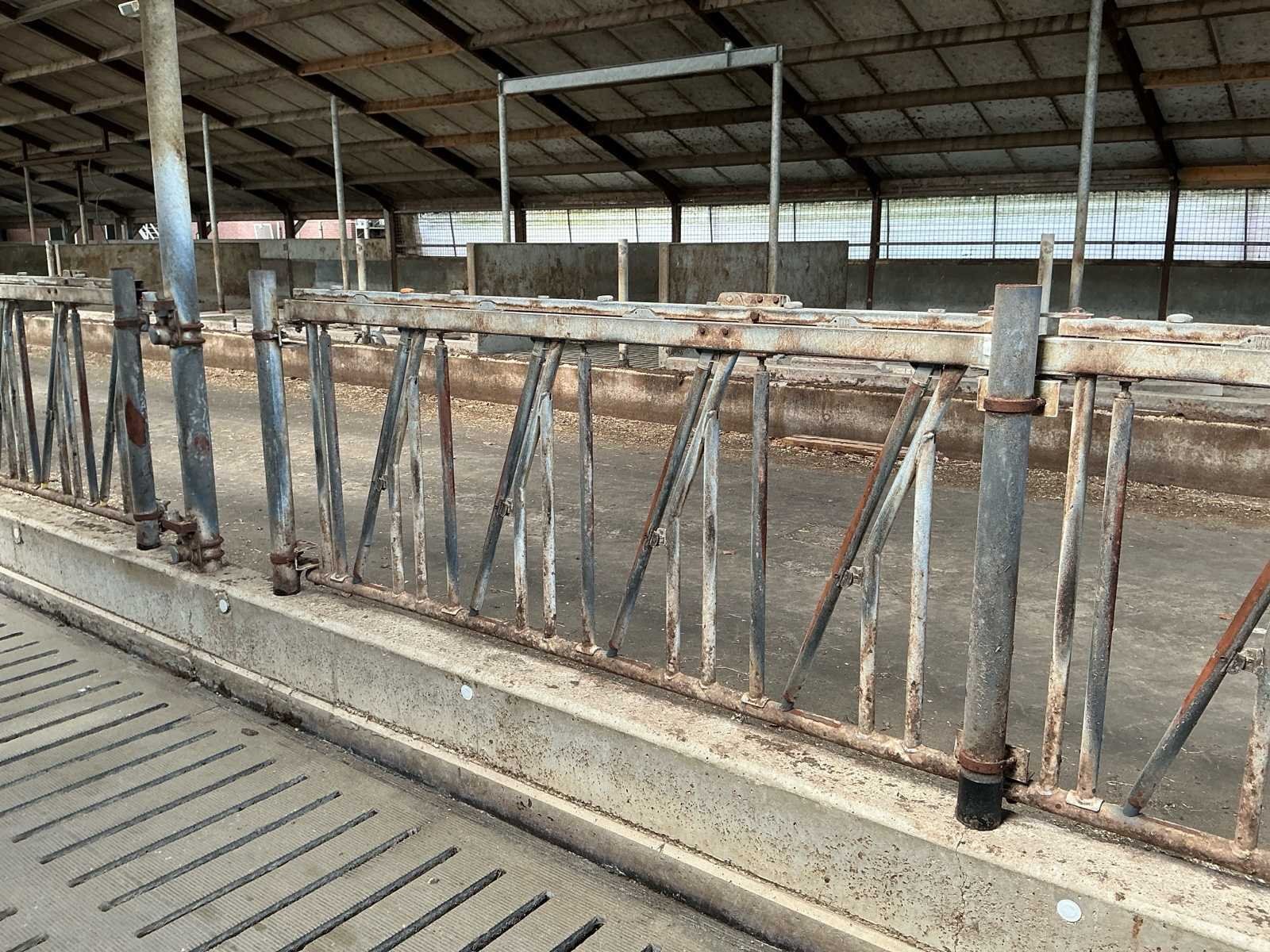 Bestaat uit: 50 stuks jongvee zwevende ligplaatsen, 50 stuks zelfsluitend Gea voerhek, jongvee 8-20 maanden (50mtr), opgehangen aan horizontale montagebuizen, uitgevoerd met kopplaat, opgehangen met draadbeugels waardoor boxbreedte aan te passen is, wordt door verkoper professioneel gedemonteerd, gereed voor transport. Beschikbaarheid in overleg. Merk: Gea Type: Jongvee stalinrichting 50 boxen Diersoort: Rundvee Afmeting l: 50000mm