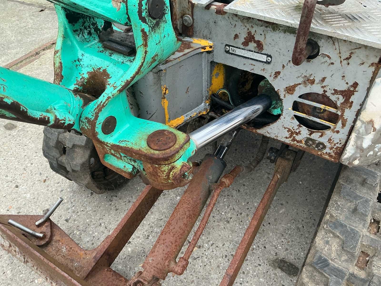 Voorzien van: tandenbak 400mm, bananenbak 200mm, mechanische snel wissel, verbreden onderlag, motorvermogen: 5,7 kW, machinegewicht: 950 kg, rupsen spoorbreedte te wijzigen van 750 mm naar 980 mm, zwenkradius achter 490 mm, hierdoor kan de machine 180° zwenken binnen een ruimte van slechts 1.545 mm,snelheid: 4,0/2,0 km/u, machinemassa: 950 kg, YANMAR 2TNE68 watergekoeld, 2-cilinder, 4-takt, blad 750/980 mm breed x 200 mm hoog, 190 mm omhoog, 240 mm omlaag, offsethoek: 80° naar links, 50° naar rechts. Merk: Kobelco Type: 09SR Bouwjaar: 2000 Merk motor: Yanmar Motorvermogen (kW): 5.7kW Aantal cilinders: 2 Brandstof: Diesel Inclusief graafbak: Ja Graafbak afm. b: 400mm Eigen gewicht: 950kg Totale afmeting Breedte: 750mm