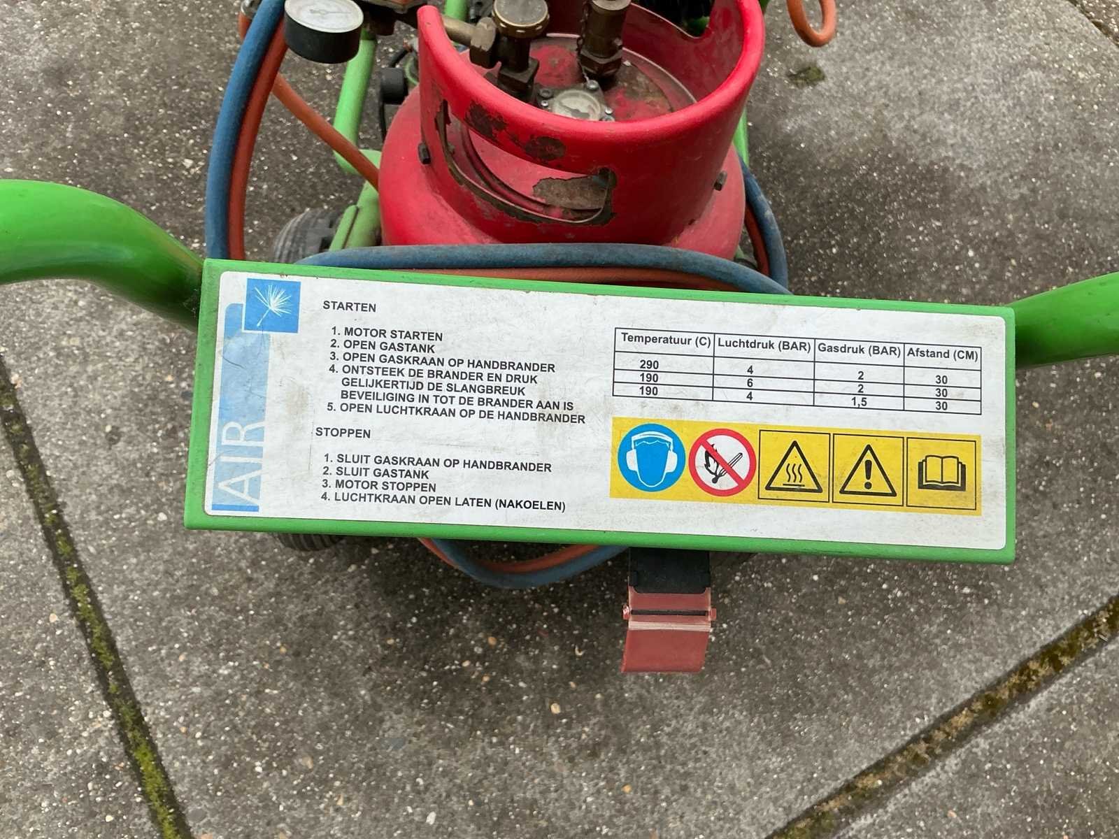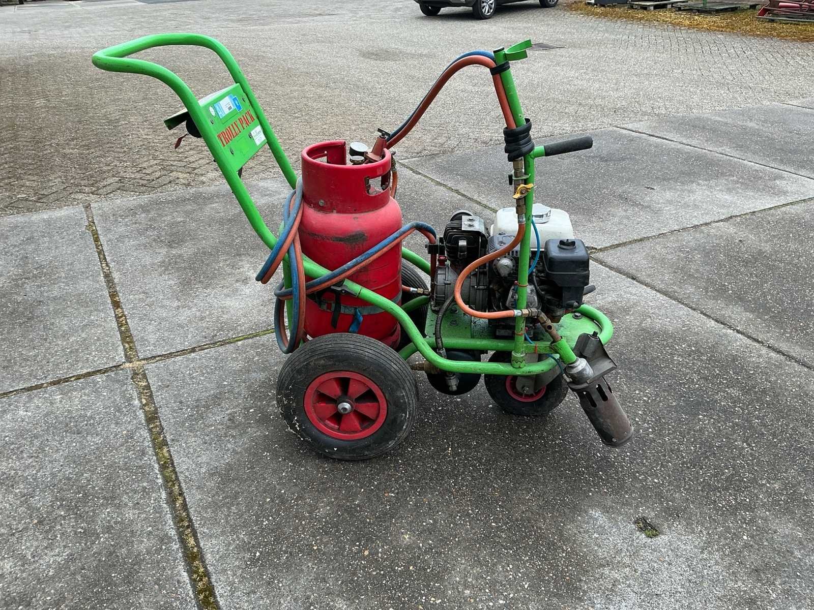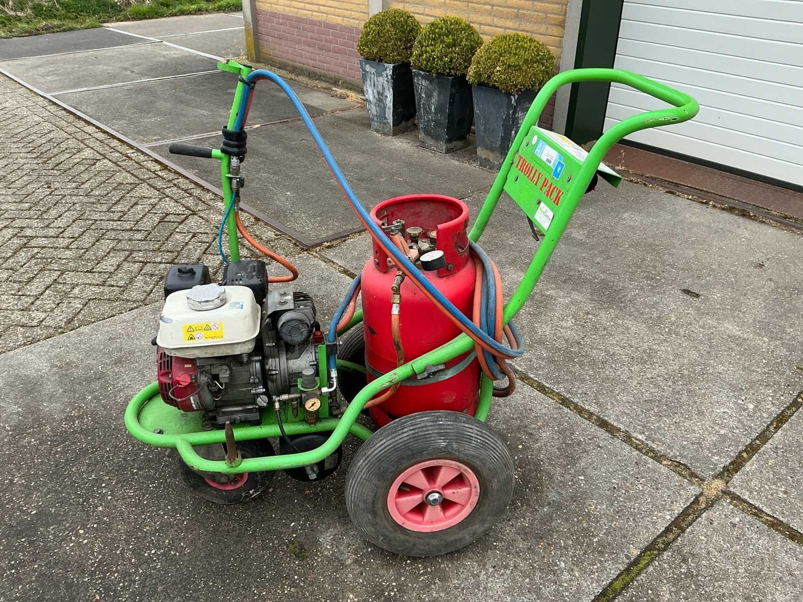 Voorzien van: gastank, barmeter, Honda GX 120 motor, benzine, brander, Merk: Weedcontrol Model: Trolley Pack Lengte: 135cm Breedte: 60cm Hoogte: 107cm