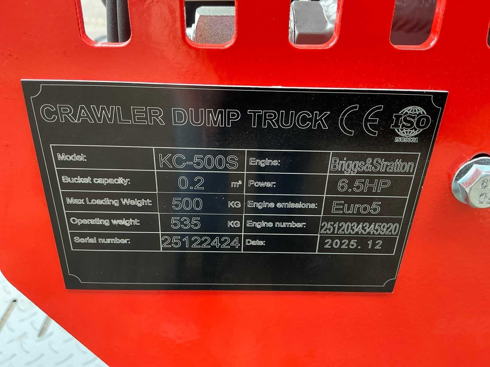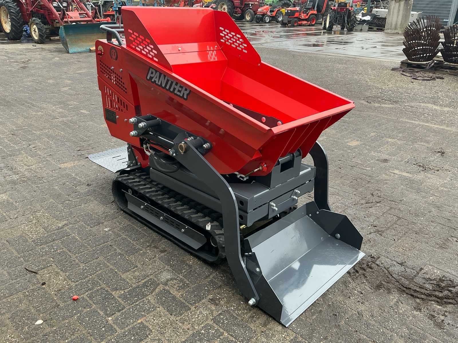 Voorzien van: 2 rijsnelheden, schepbak, hoogkiep functie, sta platform, rubberen rupsen, handbediening Merk: Panther Type: KC-500S Serienummer: 25122424 Bouwjaar: 2025 Merk motor: Vanguard Motorvermogen (kW): 4kW Aantal cilinders: 1 Brandstof: Benzine Bedrijfsgewicht: 535kg Laadvermogen: 500kg Eigen gewicht: 535kg Totale afmeting L: 1600mm Totale afmeting Breedte: 730mm Totale afmeting Hoogte: 1300mm