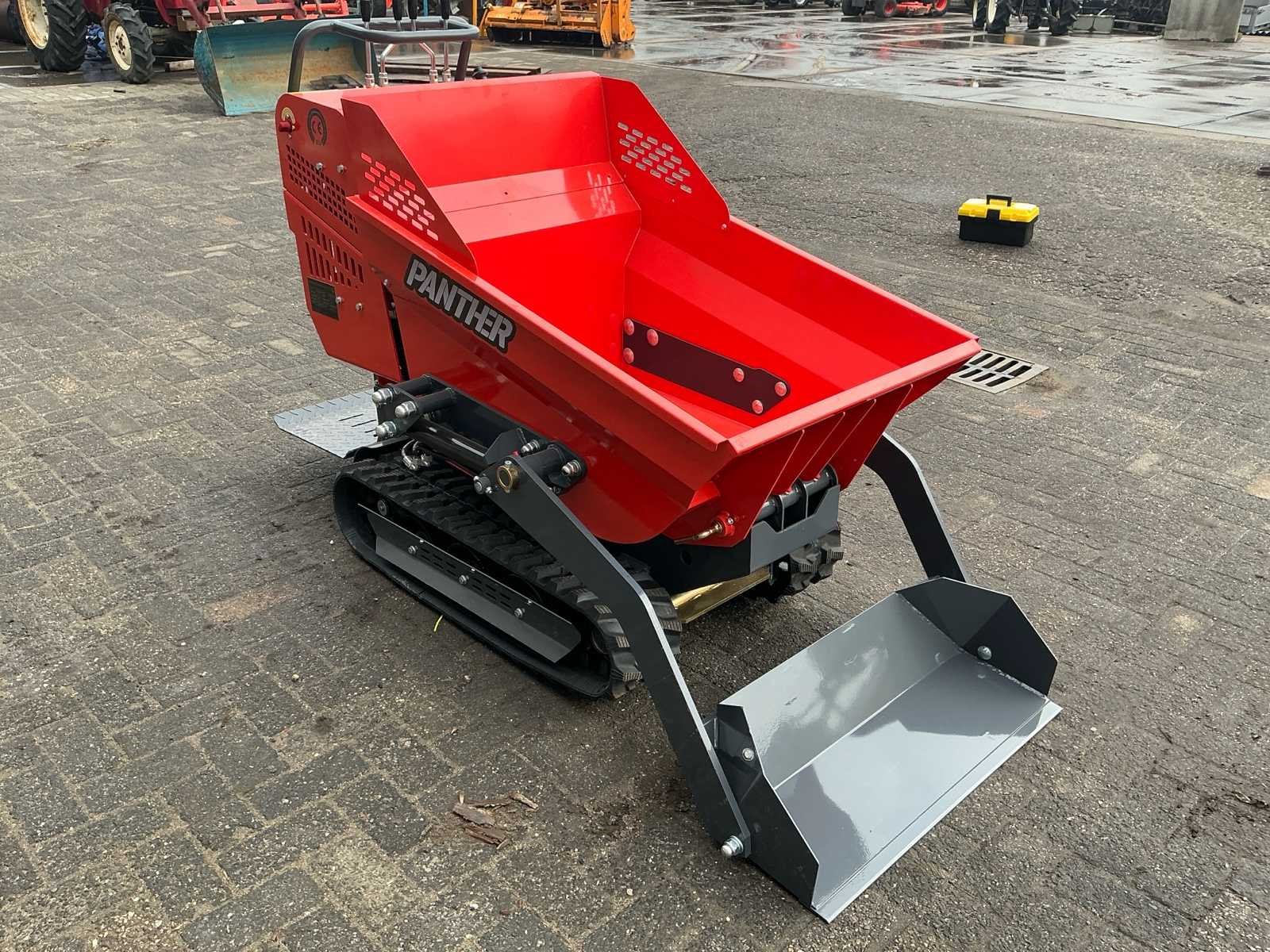 Voorzien van: schepbak, 2 rijsnelheden, handbediening, sta platform, rubberen rupsen Merk: Panther Type: KC-500 Serienummer: 25122418 Bouwjaar: 2025 Merk motor: Vanguard Motorvermogen (kW): 4kW Aantal cilinders: 1 Brandstof: Benzine Bedrijfsgewicht: 414kg Laadvermogen: 500kg Eigen gewicht: 414kg Totale afmeting L: 1600mm Totale afmeting Breedte: 720mm Totale afmeting Hoogte: 1250mm