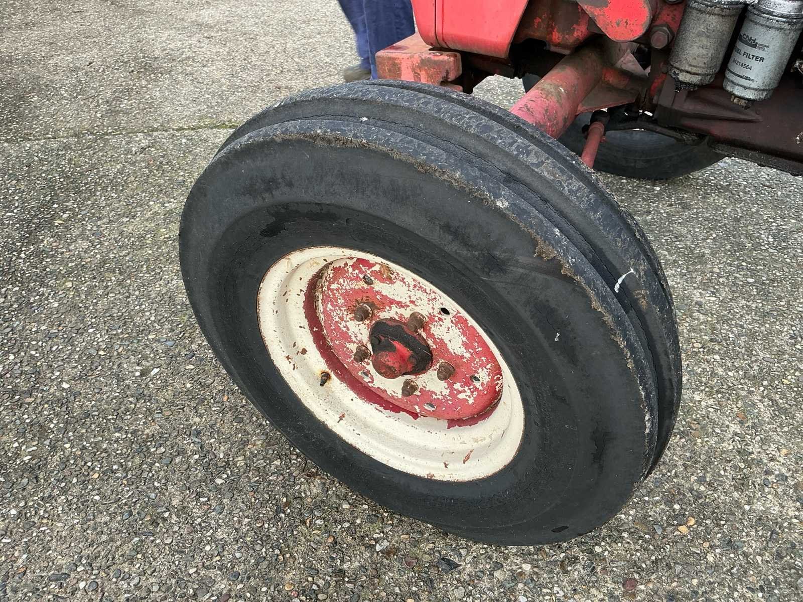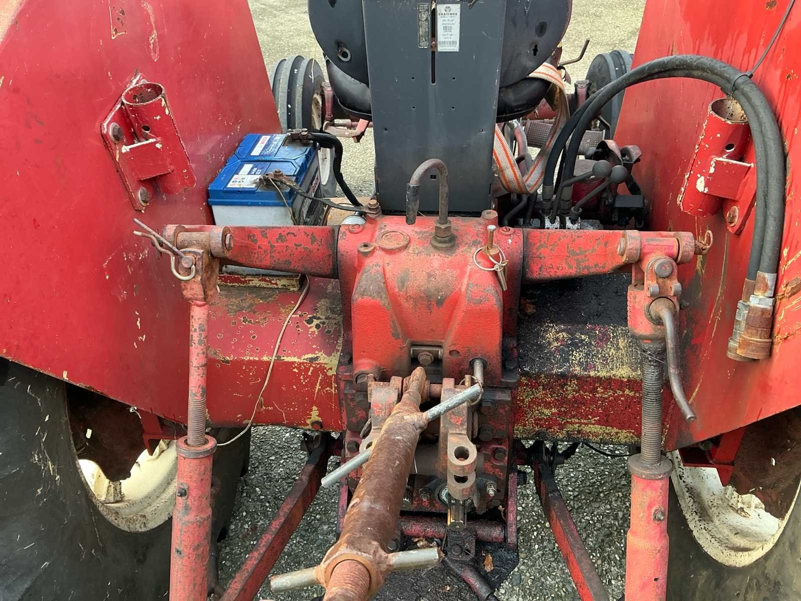 Voorzien van: International 523, Agriomatic, Nederlands kenteken, 540/1000 toeren aftakas, 1x enkelwerkend hydraulisch ventiel, 3-cylinder, 2.9L, 38,8 kW, achterbanden 16.9-30, voorbanden 7.50-16, transportlengte 3,04 m, transportbreedte 1,62 m, transporthoogte 2,18 m. transmissie Agriomatic 8F/4R, gewicht 2,86 t, motortype D-179. Merk: Mc Cormick International Type: 523 Bouwjaar: 1978 Serienummer: 711641 Kenteken: TRD79Z Motorvermogen (kW): 38.8kW Afgelezen urenstand: 10500 Versnellingsbaktype: Mechanisch Aftakastoerental: 540rpm Bandenmaat voor: 7.50-16 Bandenmaat achter: 16.9-30 Aantal hydraulische ventielen achter: 2 Eigen gewicht: 2860kg Totale afmeting L: 3000mm Totale afmeting Breedte: 1620mm Totale afmeting Hoogte: 2200mm Kentekenpapieren compleet?: true Datum eerste toelating: 1978-06-30