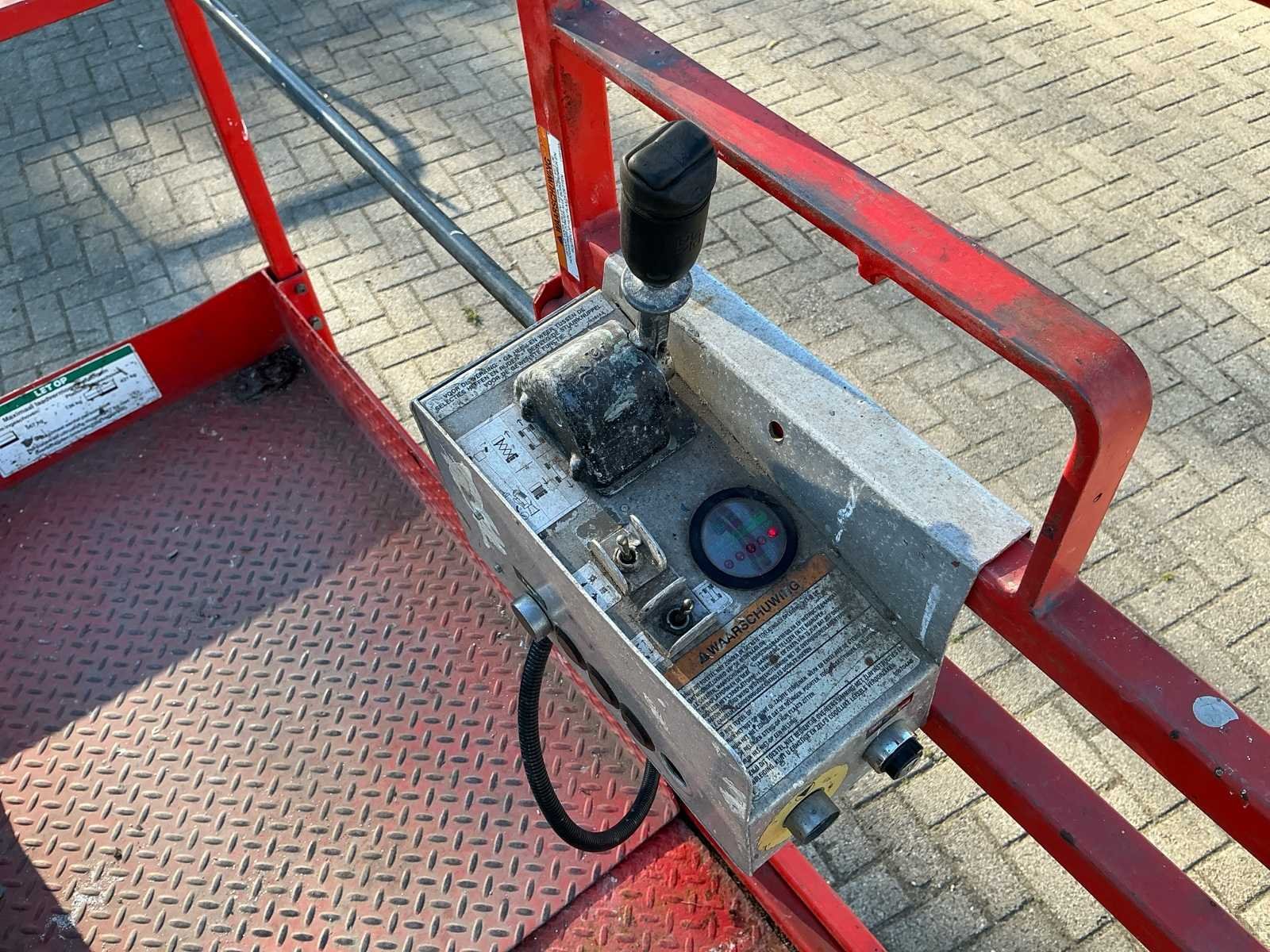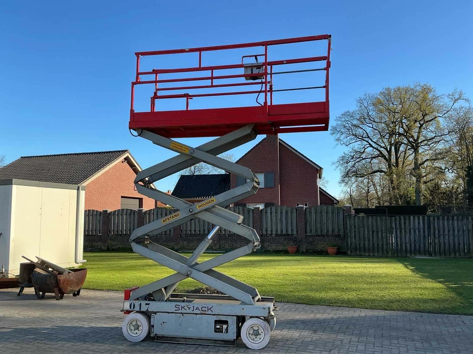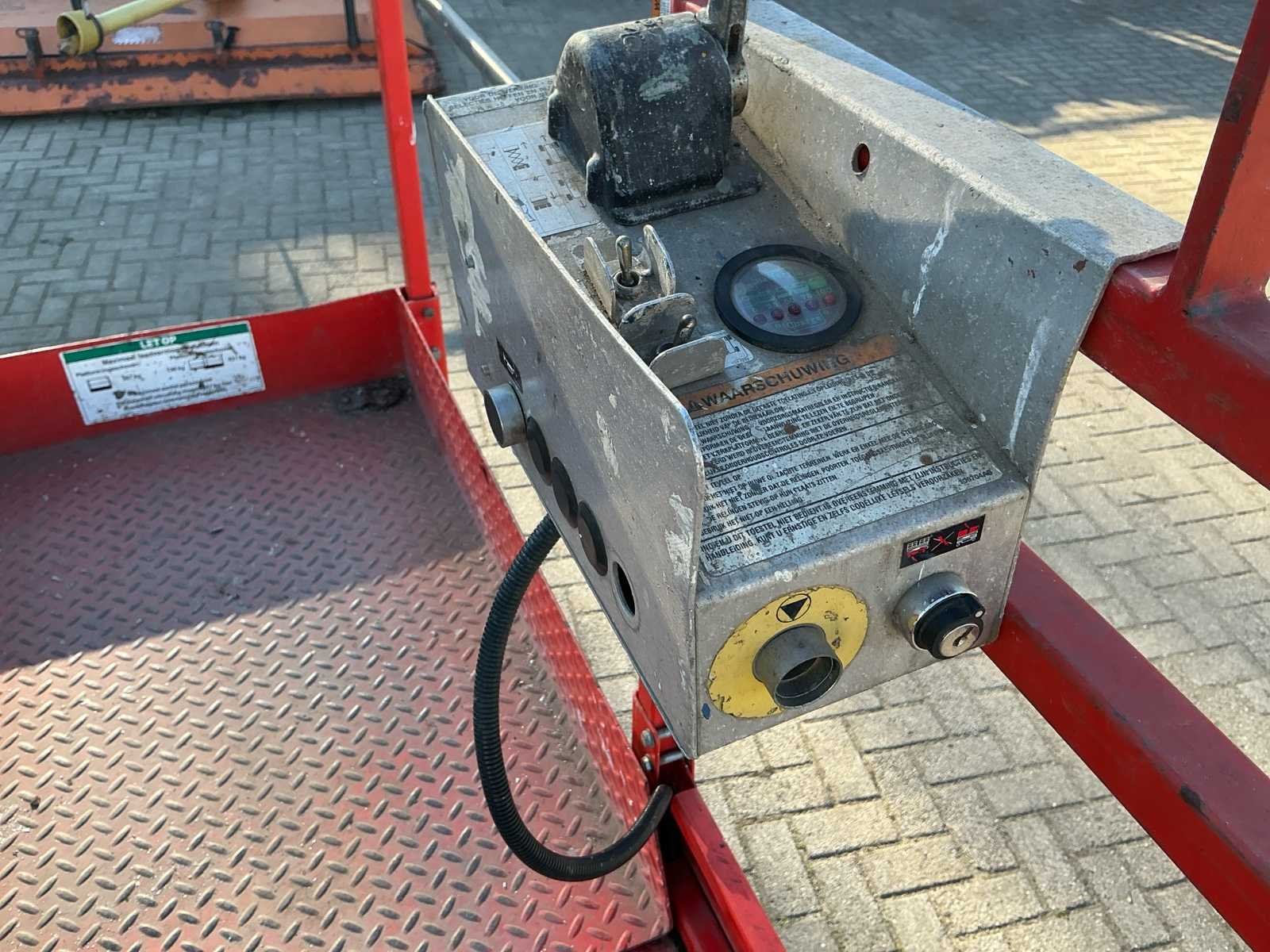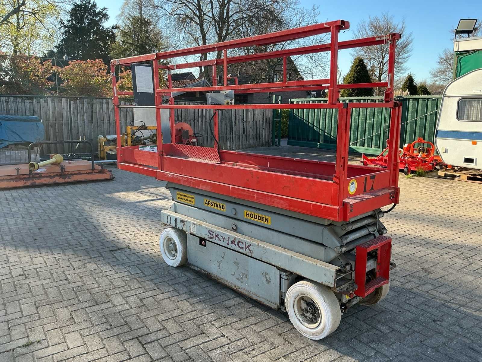 Voorzien van: DC-motorcontroller, rijdbaar op volledige hoogte, variabele snelheid, hydraulische aandrijving op twee achterwielen, proportionele bediening voor rij- en heffuncties, uitschuifbaar platform van 0,91 m, bescherming tegen lage accuspanning, massieve rubberen banden, Non-marking, bevestigingspunten voor veiligheidskoorden, heftruckopeningen en bevestigings-/hefogen, werkhoogte: 8,10 m, platformhoogte (max): 6,10 m, platformhoogte (ingeschoven): 0,97 m, totale breedte: 0,84 m, totale lengte: 2,32 m, hoogte (leuningen omhoog): 1,97 m, platformbreedte (binnen): 0,71 m, platformlengte (binnen): 2,13 m, uitschuifbaar platform (deck): 0,91 m Merk: Sky Jack Type: SJ 3 3220 Bouwjaar: 1999 Serienummer: 608004 Elektrisch: true Schaarhoogwerker: true Werkhoogte: 8100mm Plateau afm. l: 2130mm Plateau afm. b: 710mm Platform capaciteit: 363kg Accu lader: true Afgelezen urenstand: 535 Eigen gewicht: 1778kg Totale afmeting L: 2320mm Totale afmeting Breedte: 840mm Totale afmeting Hoogte: 1970mm
