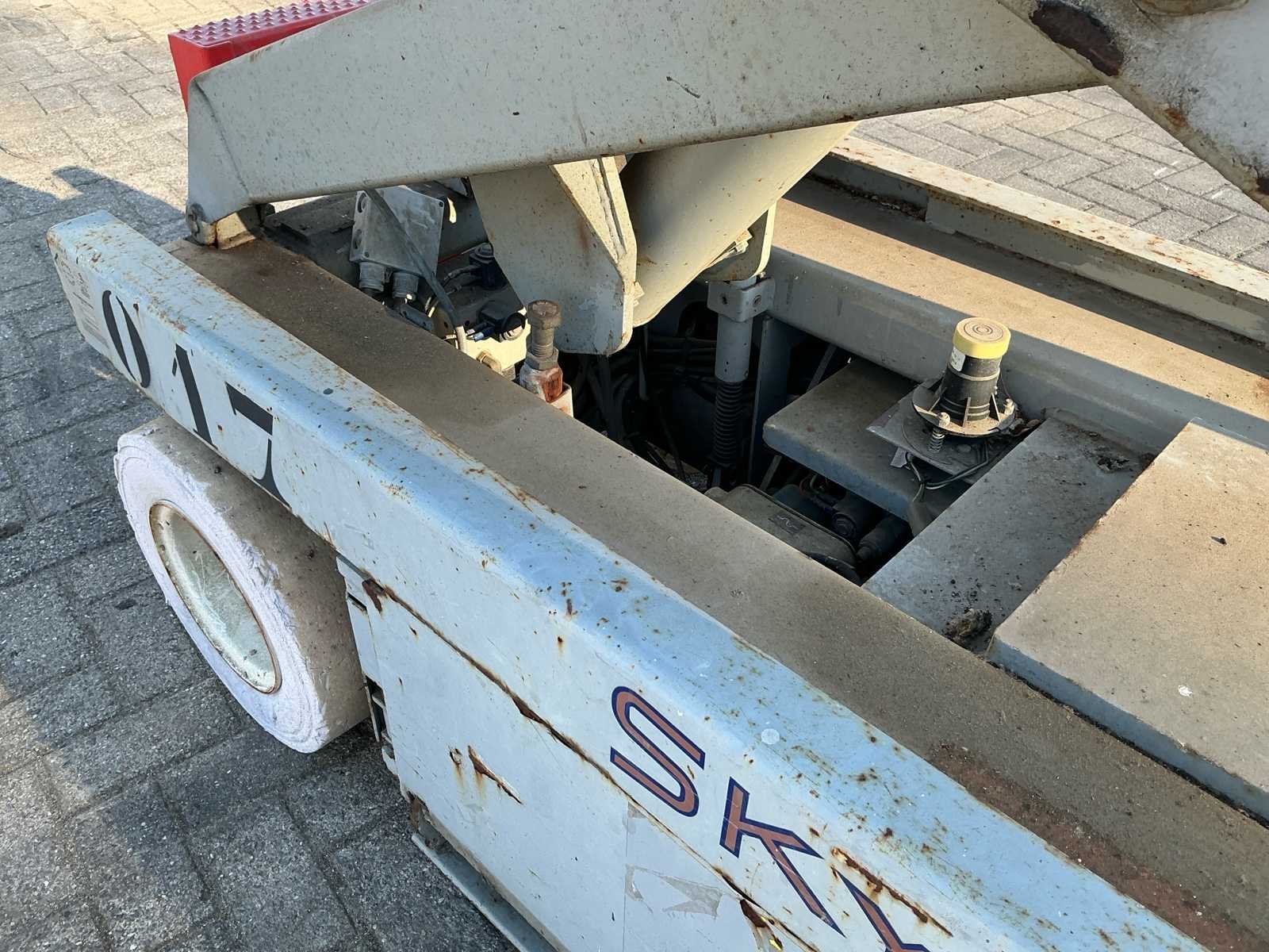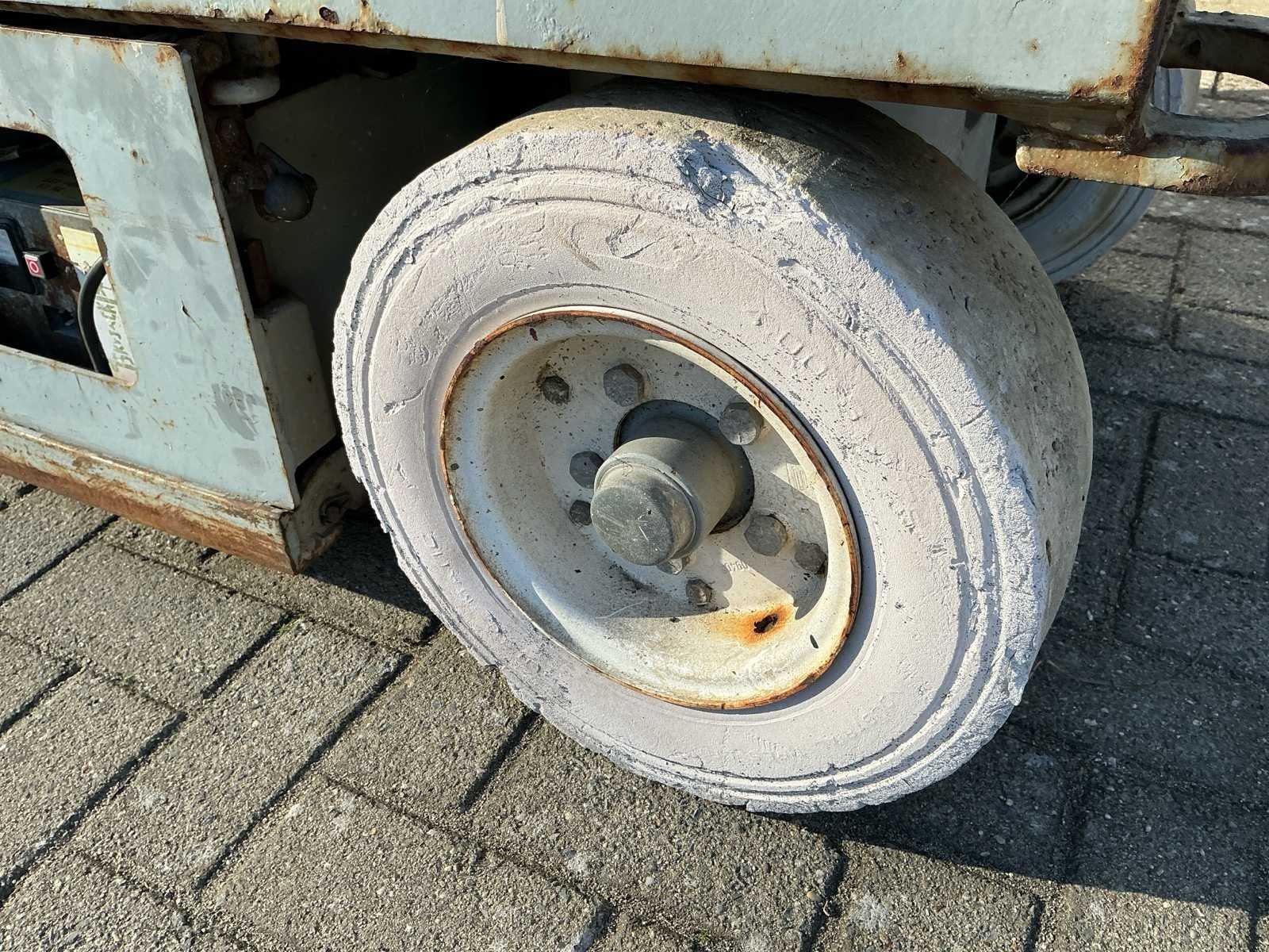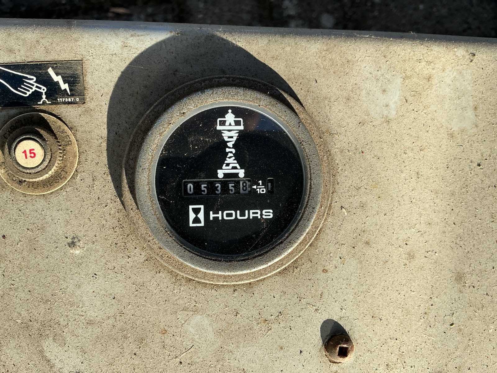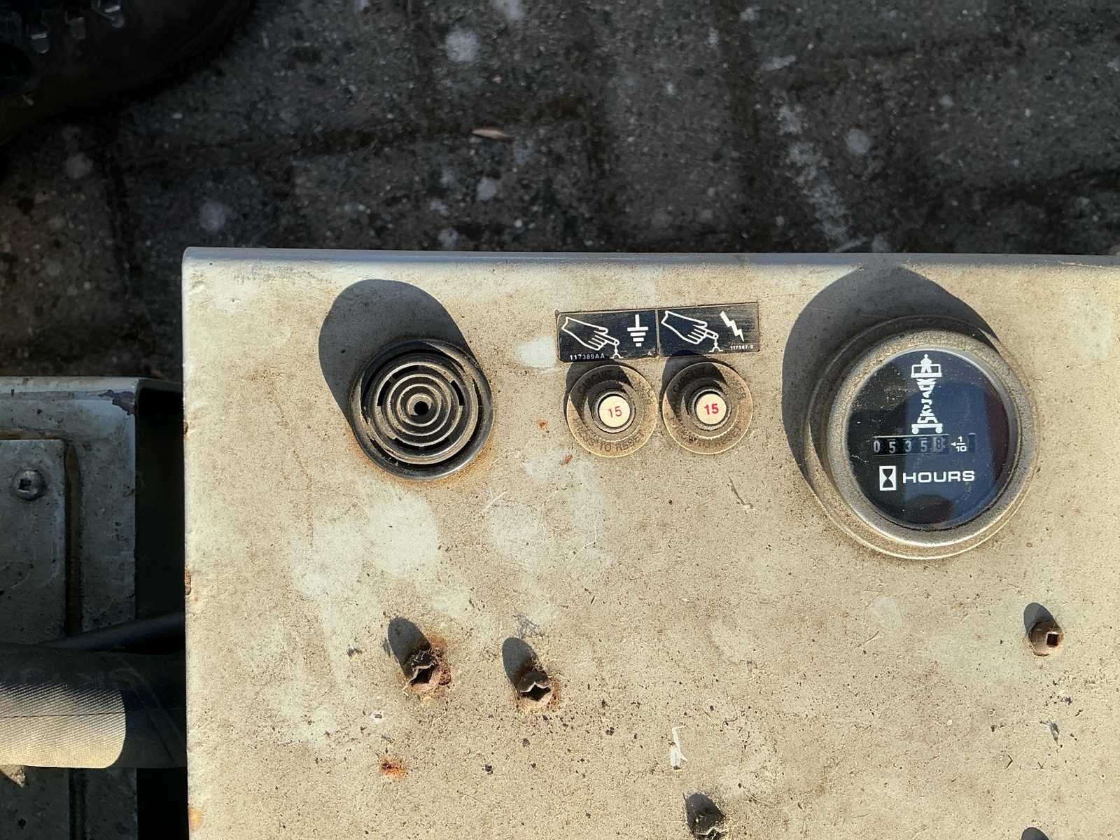 Voorzien van: DC-motorcontroller, rijdbaar op volledige hoogte, variabele snelheid, hydraulische aandrijving op twee achterwielen, proportionele bediening voor rij- en heffuncties, uitschuifbaar platform van 0,91 m, bescherming tegen lage accuspanning, massieve rubberen banden, Non-marking, bevestigingspunten voor veiligheidskoorden, heftruckopeningen en bevestigings-/hefogen, werkhoogte: 8,10 m, platformhoogte (max): 6,10 m, platformhoogte (ingeschoven): 0,97 m, totale breedte: 0,84 m, totale lengte: 2,32 m, hoogte (leuningen omhoog): 1,97 m, platformbreedte (binnen): 0,71 m, platformlengte (binnen): 2,13 m, uitschuifbaar platform (deck): 0,91 m Merk: Sky Jack Type: SJ 3 3220 Bouwjaar: 1999 Serienummer: 608004 Elektrisch: true Schaarhoogwerker: true Werkhoogte: 8100mm Plateau afm. l: 2130mm Plateau afm. b: 710mm Platform capaciteit: 363kg Accu lader: true Afgelezen urenstand: 535 Eigen gewicht: 1778kg Totale afmeting L: 2320mm Totale afmeting Breedte: 840mm Totale afmeting Hoogte: 1970mm