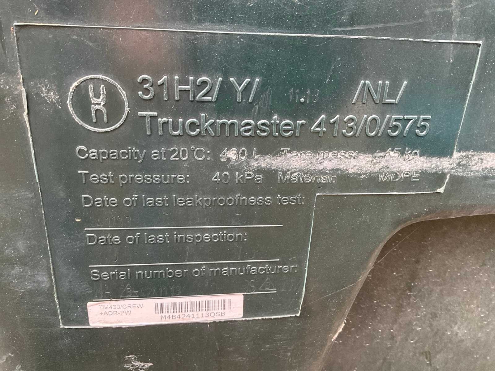 Voorzien van: pomp en vulpistool, voorzien van hijsogen en lepel sleuven Merk: Truckmaster Kunststof: true Capaciteit.: 430l Totale afmeting L: 1150mm Totale afmeting Breedte: 850mm Totale afmeting Hoogte: 900mm