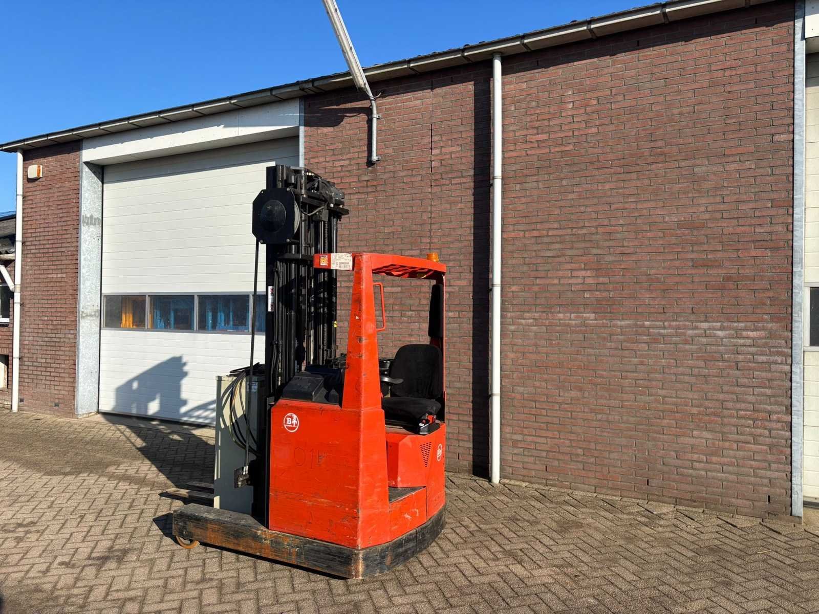 Bouwjaar accu november 2013 Merk: BT Type: RT 1350 Bouwjaar: 1998 Aantal wielen: 3 Afgelezen urenstand: 9800 Accu lader: true Free-lift: true Side-shift: true Hefvermogen: 1225kg Lepellengte: 1150mm Max. hefhoogte: 6300mm Minimale doorrijhoogte: 2700mm Totale afmeting L: 2470mm Totale afmeting Breedte: 1270mm Elektrisch: true Leveringsvoorwaarden: Gratis op vrachtwagen