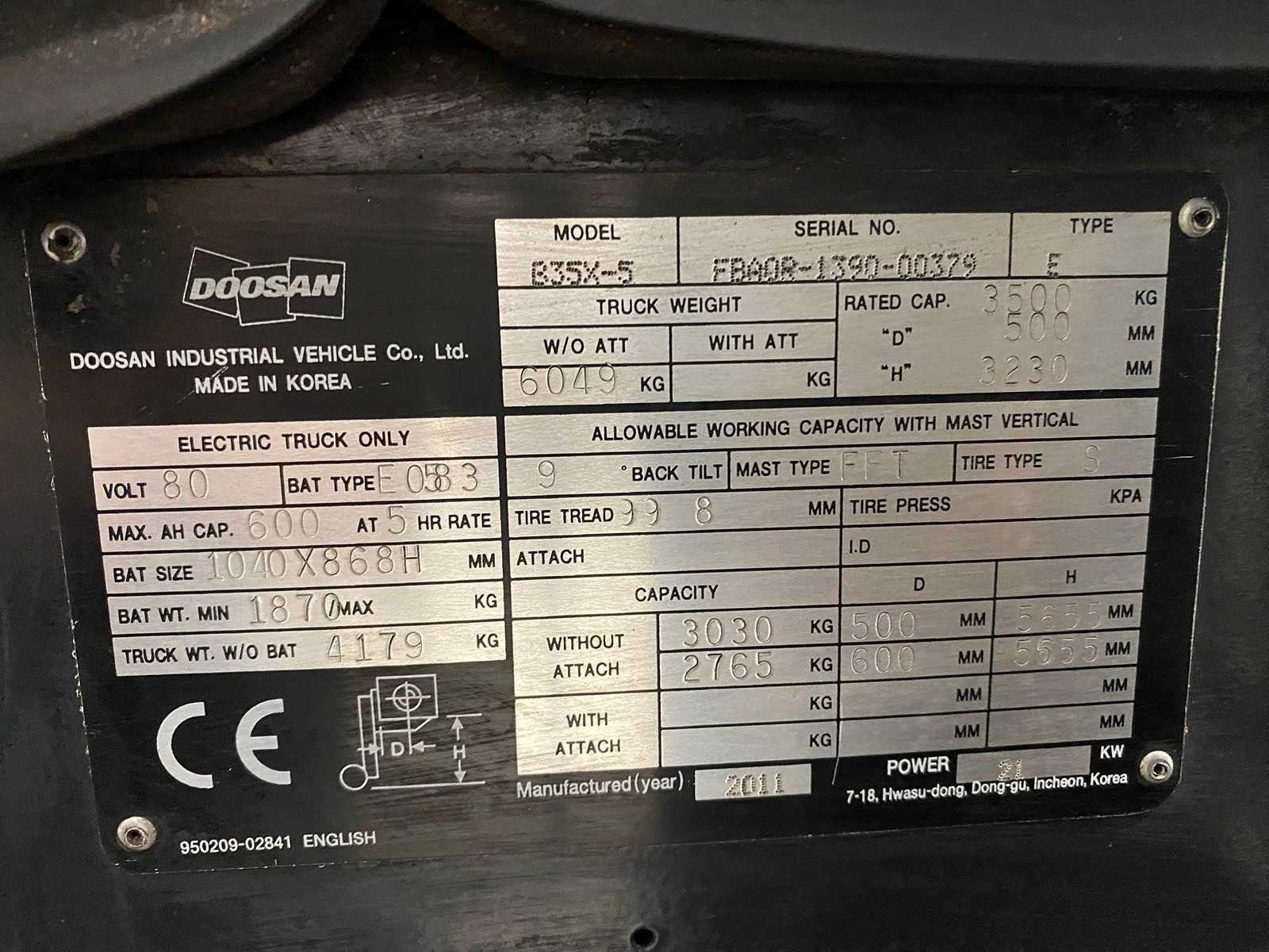 Doosan - b35x-5 - vorkheftruck - triplex - freelift - sideshift