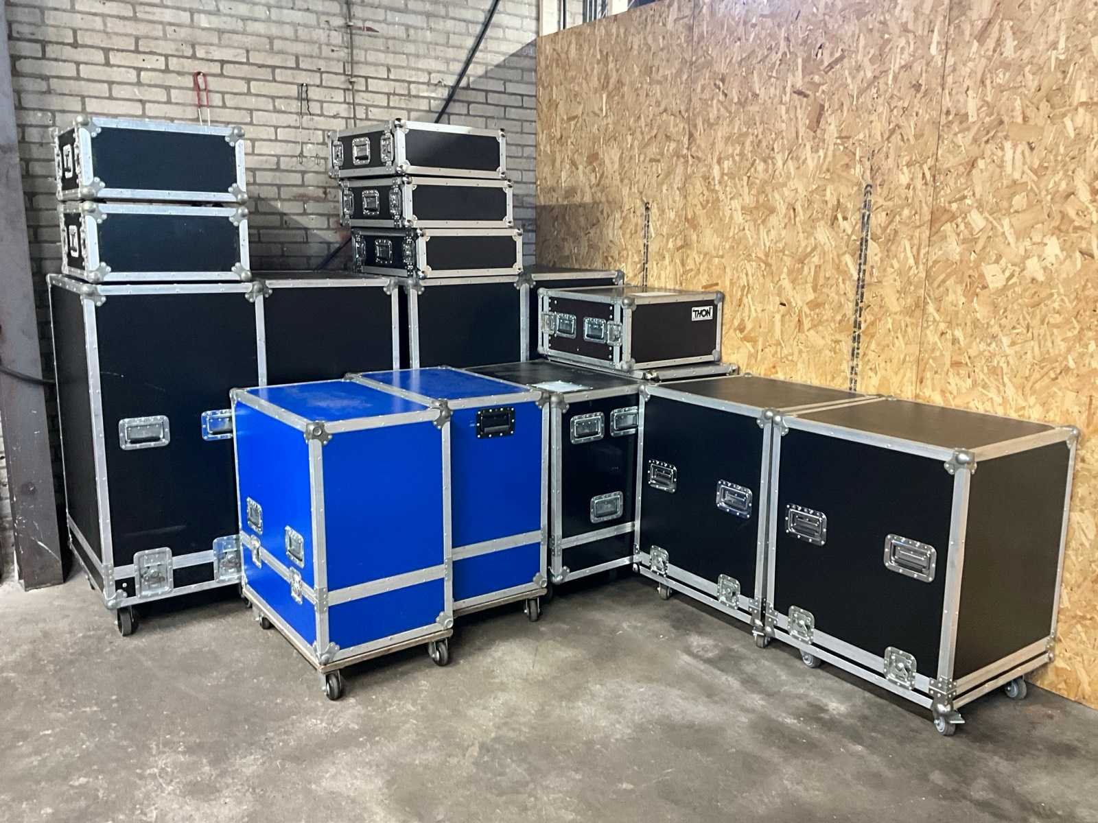 Betreft 16 flightcase 4x flightcase circa. 77x58x110cm (12 inch line array); 1x flightcase circa. 77x49x75cm (12 inch topkast); 1x flightcase circa. 77x49x72cm (12 inch topkast); 2x flightcase circa. 76x46x78cm (12 inch topkast); 3x flightcase (4HE) tunneldiepte: 47cm 2x flightcase (5HE) tunneldiepte: 45cm 1x flightcase (6HE) tunneldiepte: 50cm 2x flightcase circa. 65x60x75cm
