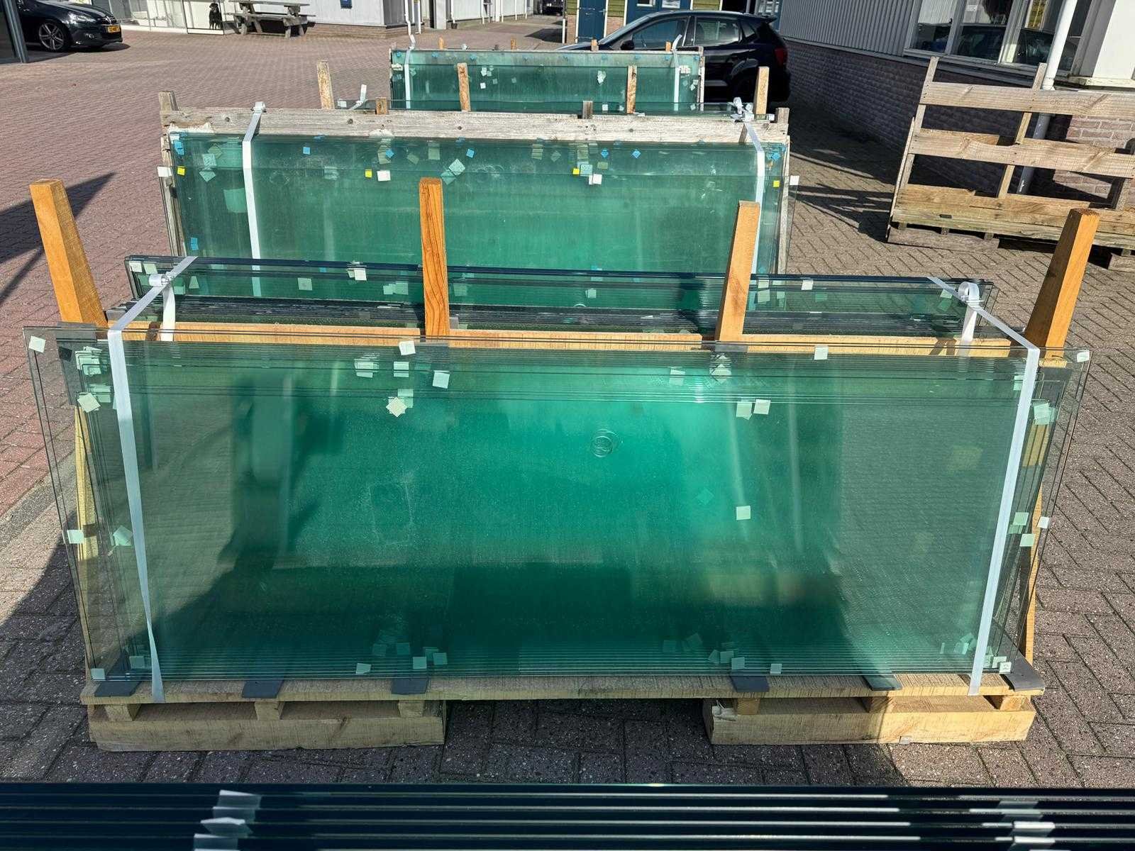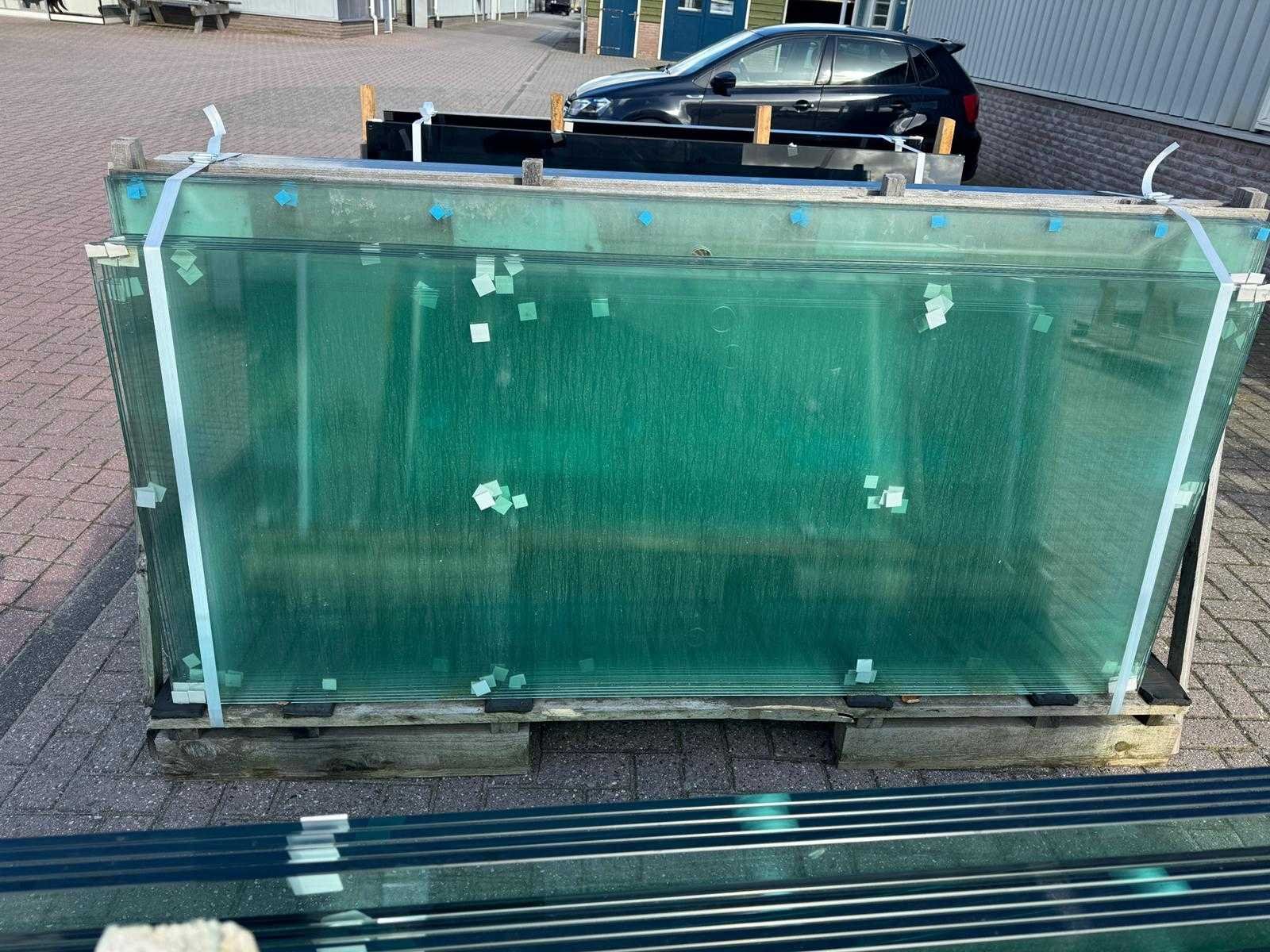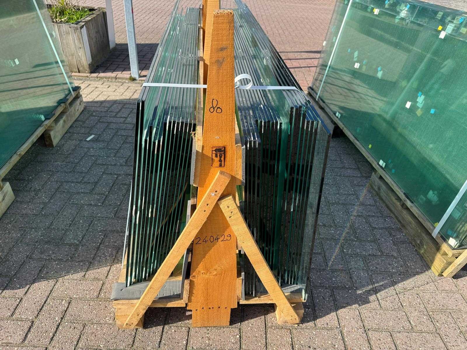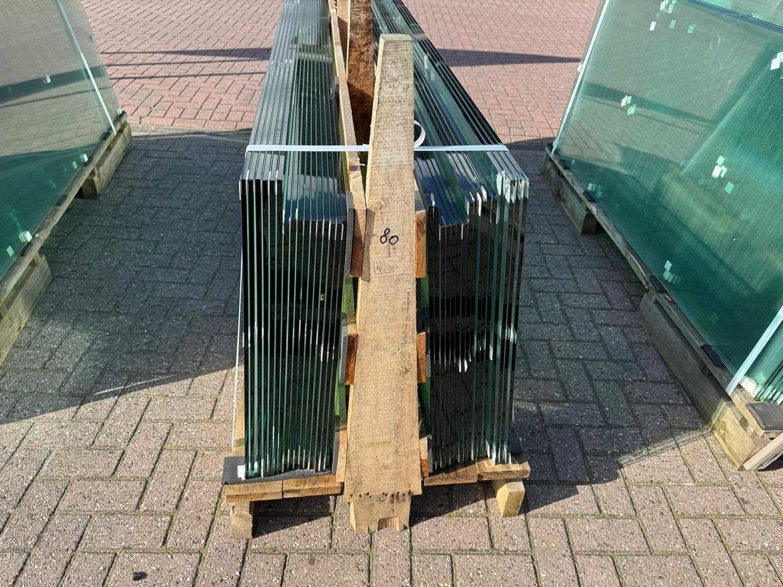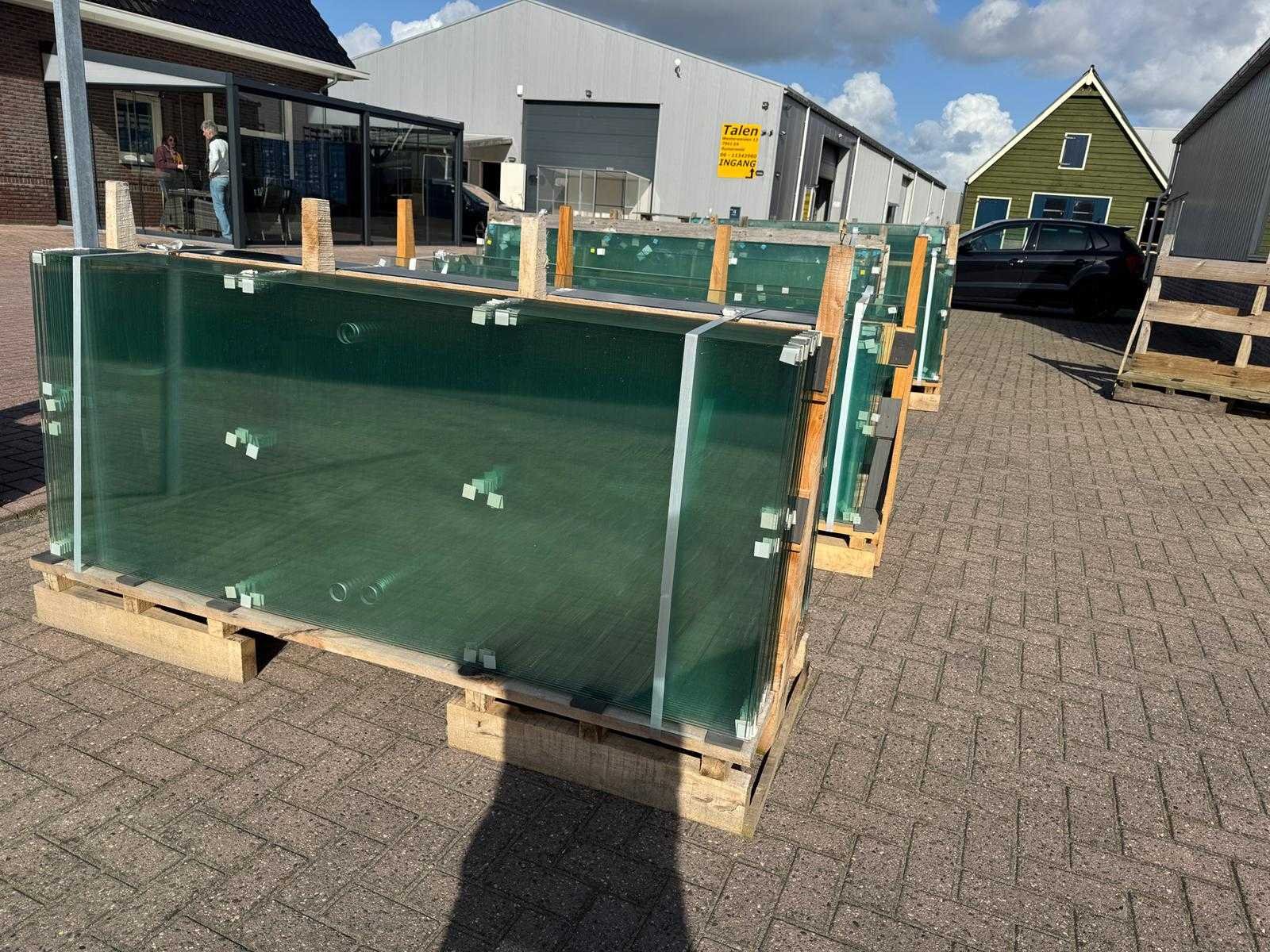 180 stuks ramen gehard veiligheidsglas 10mm dik • Diverse afmetingen • Totaal: 180 ramen • Conditie: partijhandel – kan lichte strepen, vlekjes of vegen bevatten • Verpakking: op pallet met glas • Opmerking: foto van overkapping is ter illustratie • Heftruck is aanwezig voor het afhalen