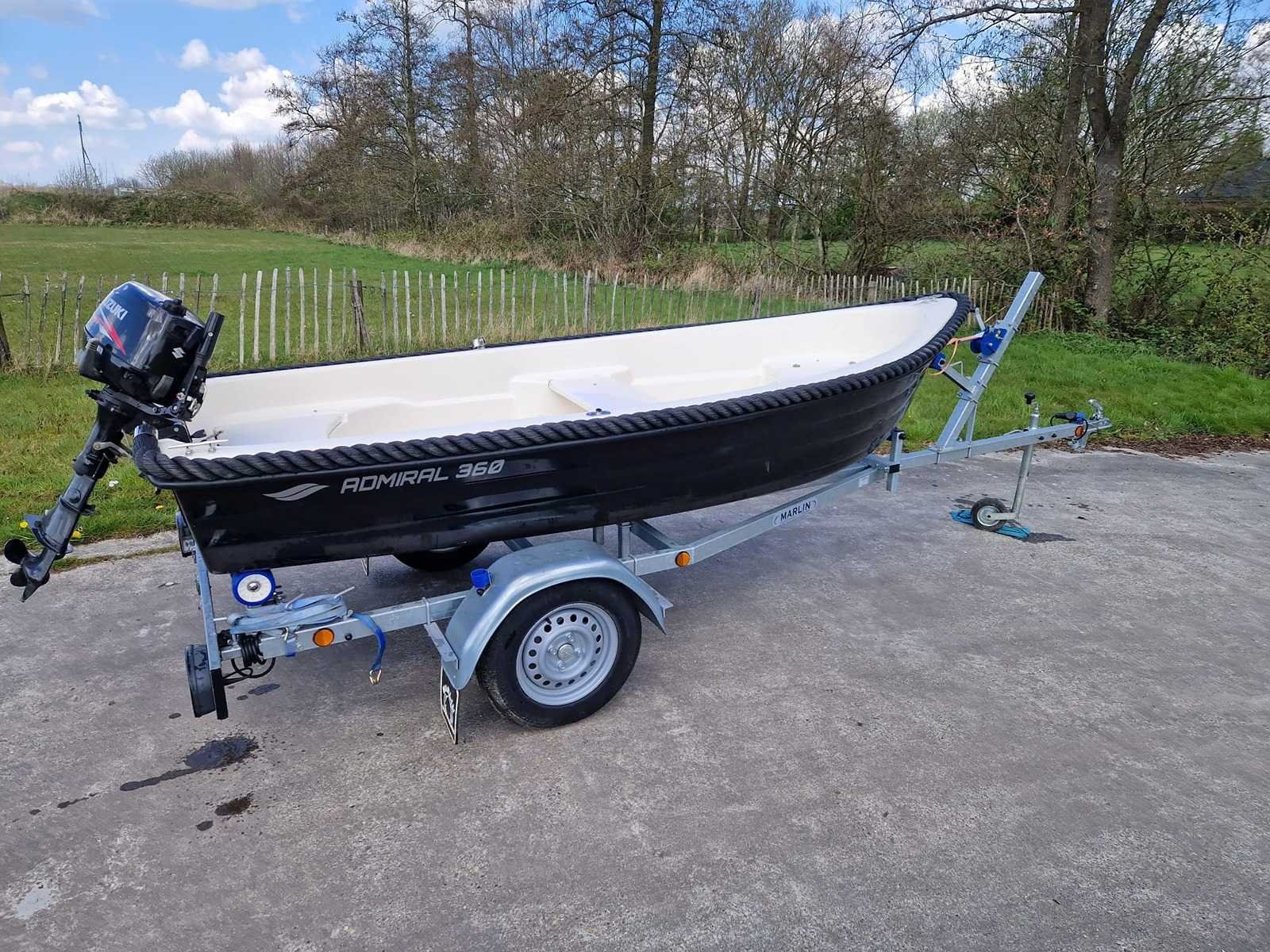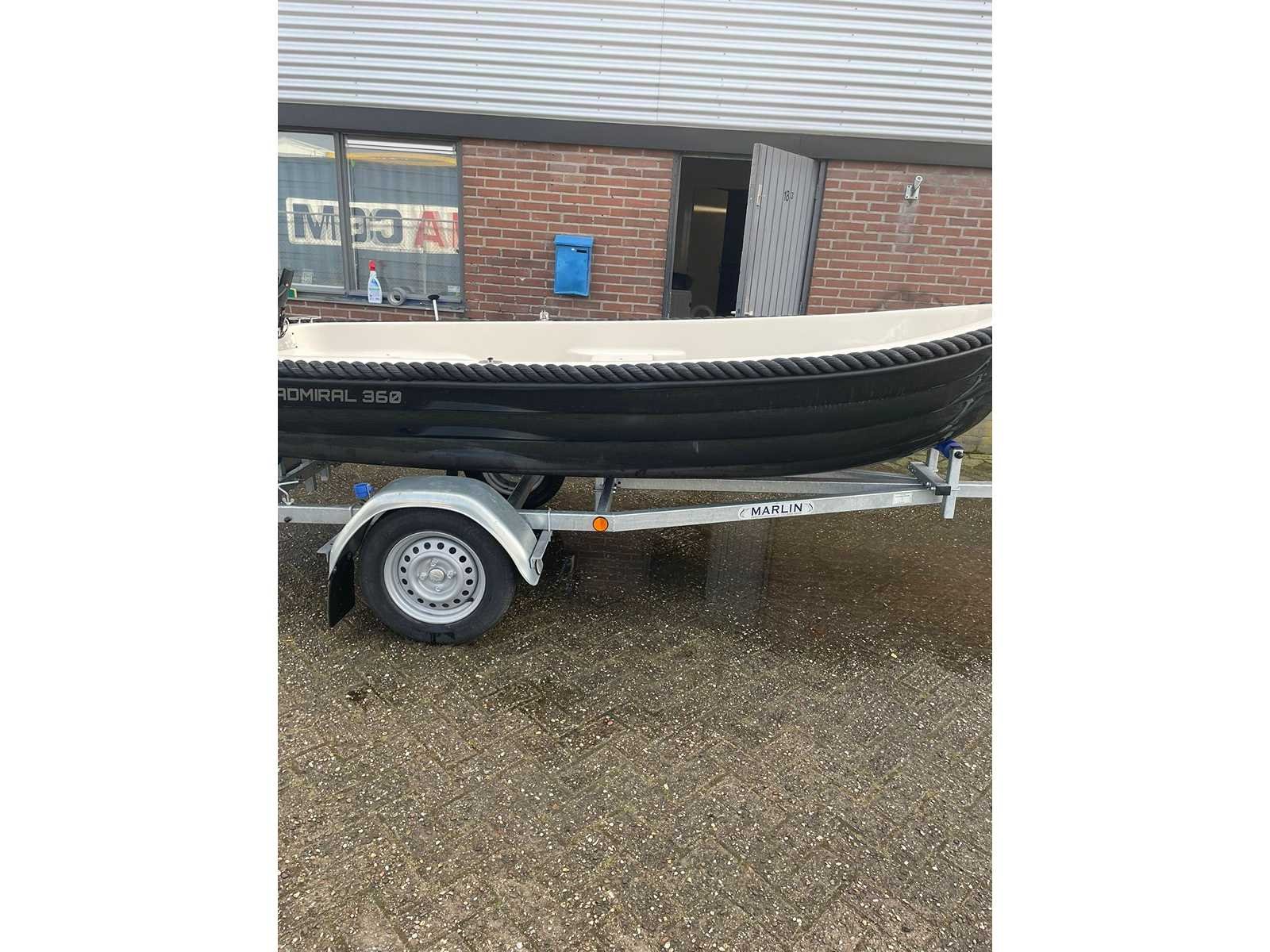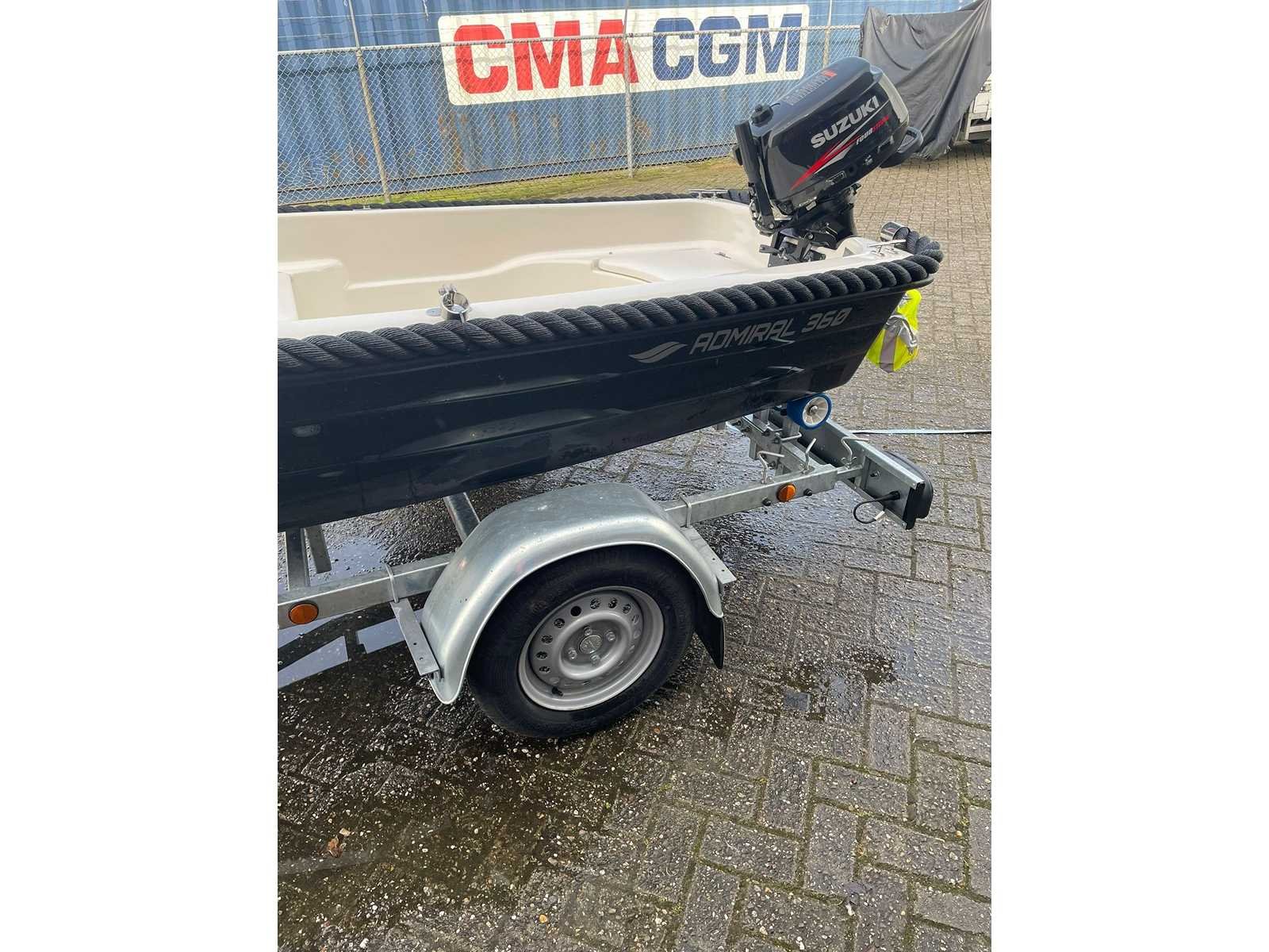 (Marge, geen BTW) Merk: Admiral Type: 360 Brandstof: Benzine Lengte over alles: 3.6m Breedte formaat: 1.36m Type motor: Suzuki 6pk Aantal cilinders: 1