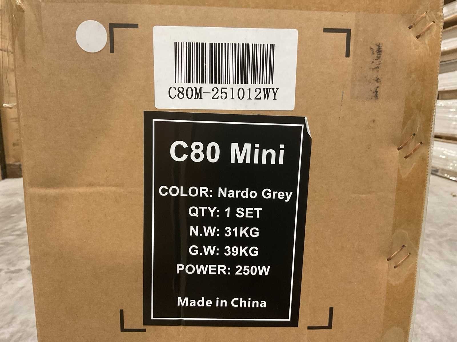 Voorzien van Aandrijving: Elektrisch met trapondersteuning; Motorvermogen: 250 W; Motortype: Borstelloze elektromotor; Max. ondersteunde snelheid: 25 km/u; Aandrijving: Achterwielmotor; Accu: 36V Lithium-ion; Accucapaciteit: 10.4 Ah; Laadspanning: 100–240 V / 2A; Wielmaat: 16 inch; Transport gewicht: 39kg; Ongebruikt in doos Merk: C80 Model: Mini Product type: Nardo Grey