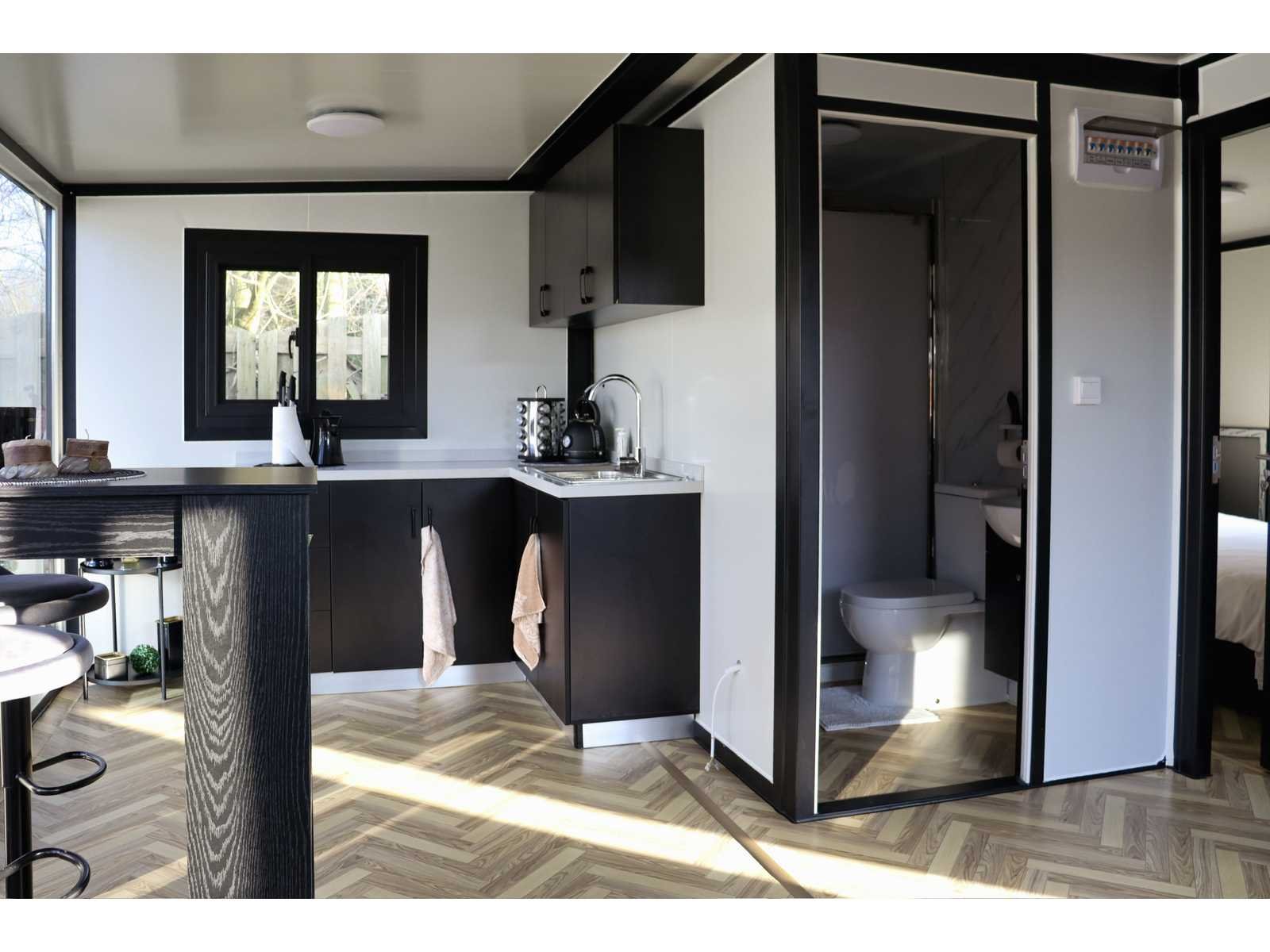 Voorzien van geïsoleerde wanden en dak; 2 slaapkamers; leefruimte met hoekkeuken; badkamer met douche, wc en wastafel; elke ruimte voorzien van verlichting en stopcontacten 230V; meterkast; PVC vloer; aluminium ramen en deuren; afsluitbaar; water, stroom en afvoer kan makkelijk aangesloten worden is voorbereid; ongebruikt en staat transport klaar (let op kleur is steen motief zoals op de eerste foto) (let op meubilair niet inbegrepen) (let op dit model heeft geen glazenwand op de linker zijwand foto’s zijn ter illustratie, van binnen is hij verder exact hetzelfde) (transport afmetingen 590x220x248 cm, gewicht 3500 kg) Merk: Rhino Houses Model: 36,5 m2 Product type: 2 slaapkamers, badkamer en keuken Gewicht: 3500 Lengte: 5900 Breedte: 6200 Hoogte: 2480