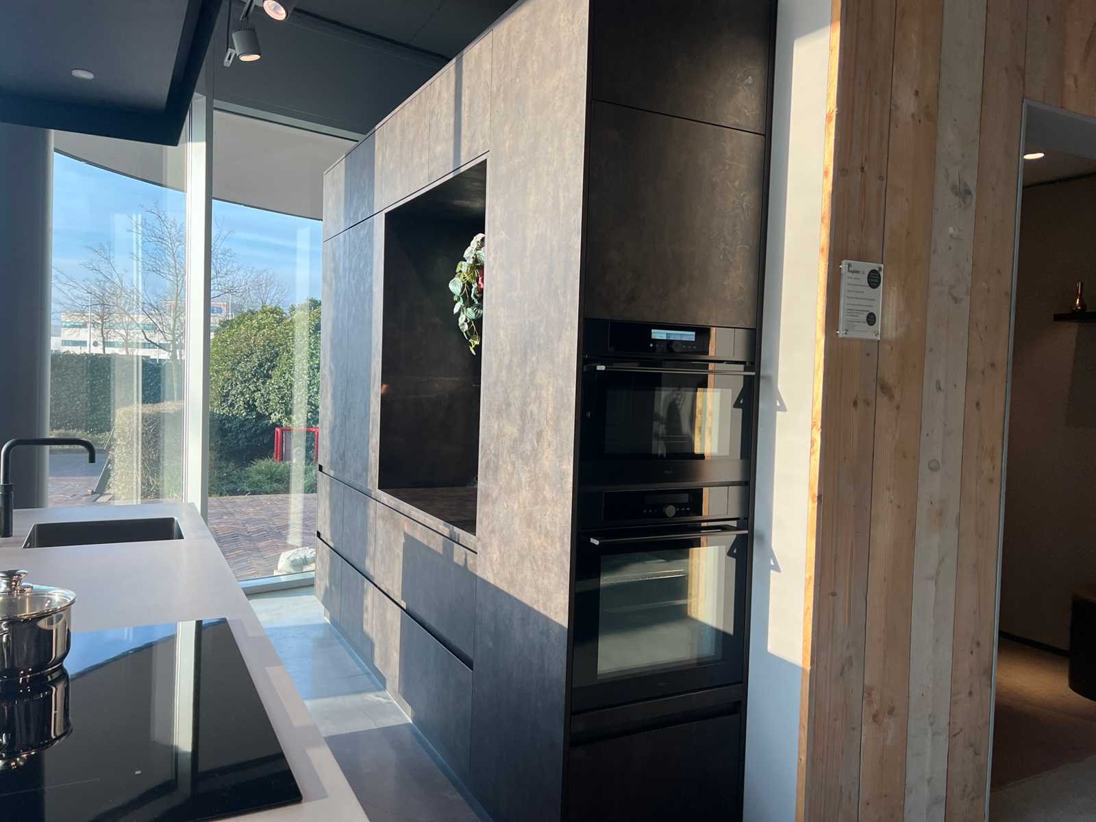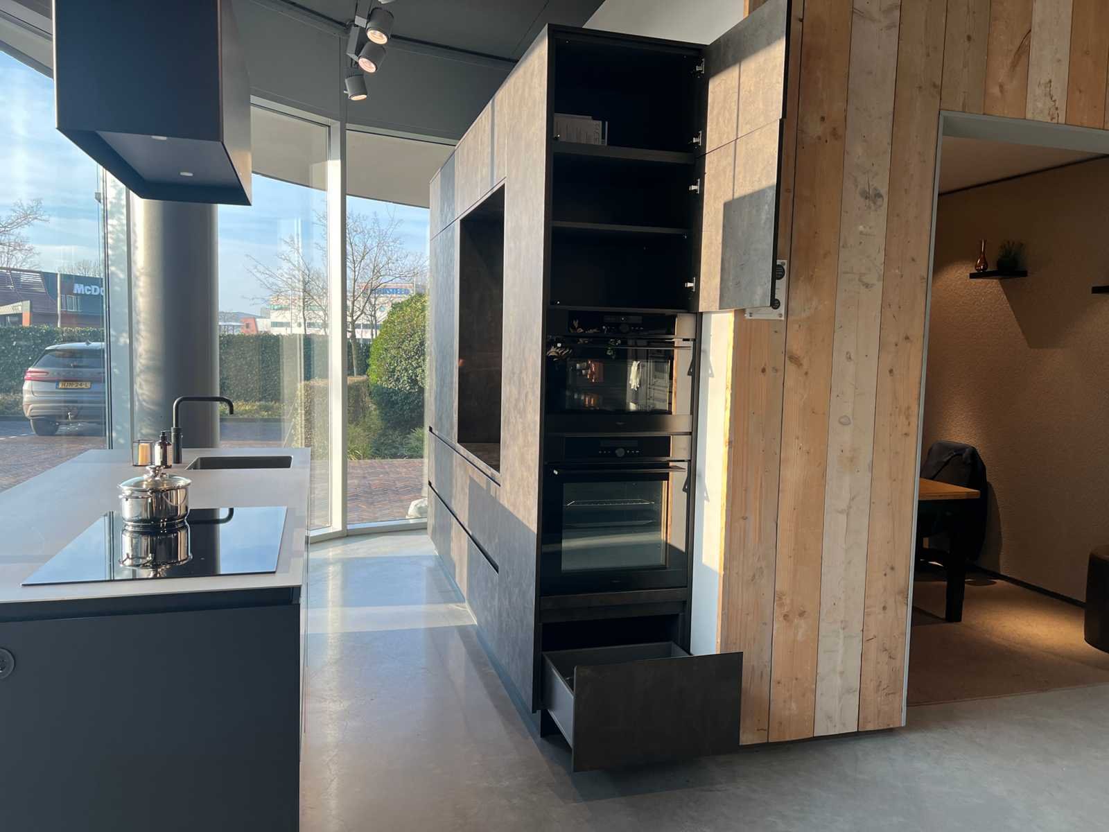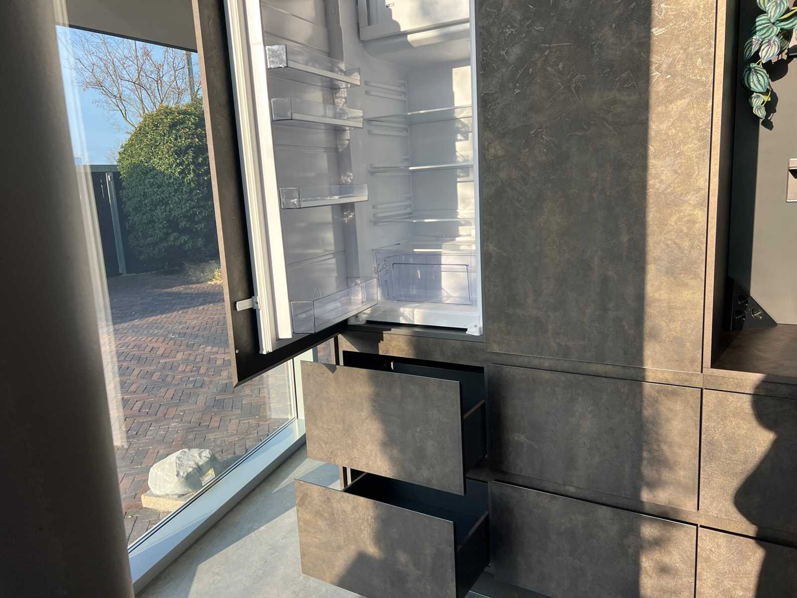 Reeds gedemonteerd en ingepakt op pallets. (afstapelen, omruilen of statiegeld per pallet); pallets zijn niet inbegrepen; statiegeld betalen bij afhalen, of pallets afstapelen; werkblad niet ingepakt op pallets (26-HKW-03393) Merk: Schröder Type keukenopstelling: Eiland Lengte: 304cm Breedte: 64cm Hoogte: 264cm Kraan: Quooker (zonder boiler) Gootsteen: Franke Aanrechtblad: RVS/Aluminium Magnetron: Pelgrim MAC834MAT Fornuis: Pelgrim Koelkast: Pelgrim PKVS2122 Softclose: true Oven: Pelgrim OVM836MAT Afzuigkap: Wave Vaatwasser: Pelgrim DW30.2 Lengte kookeiland: 251cm Breedte kookeiland: 100cm Hoogte kookeiland: 95cm Kleur: Fenix black + Cemento Amber