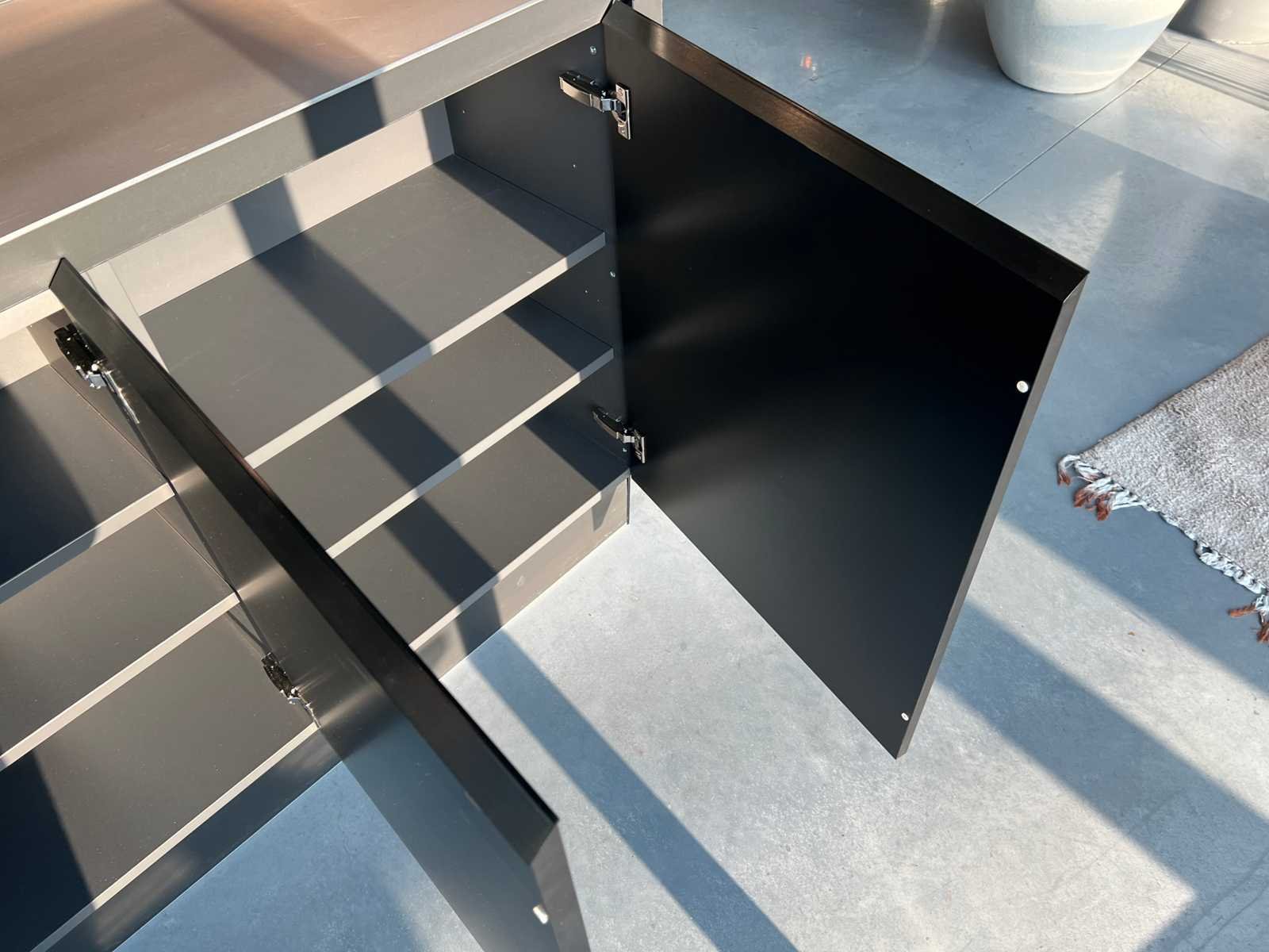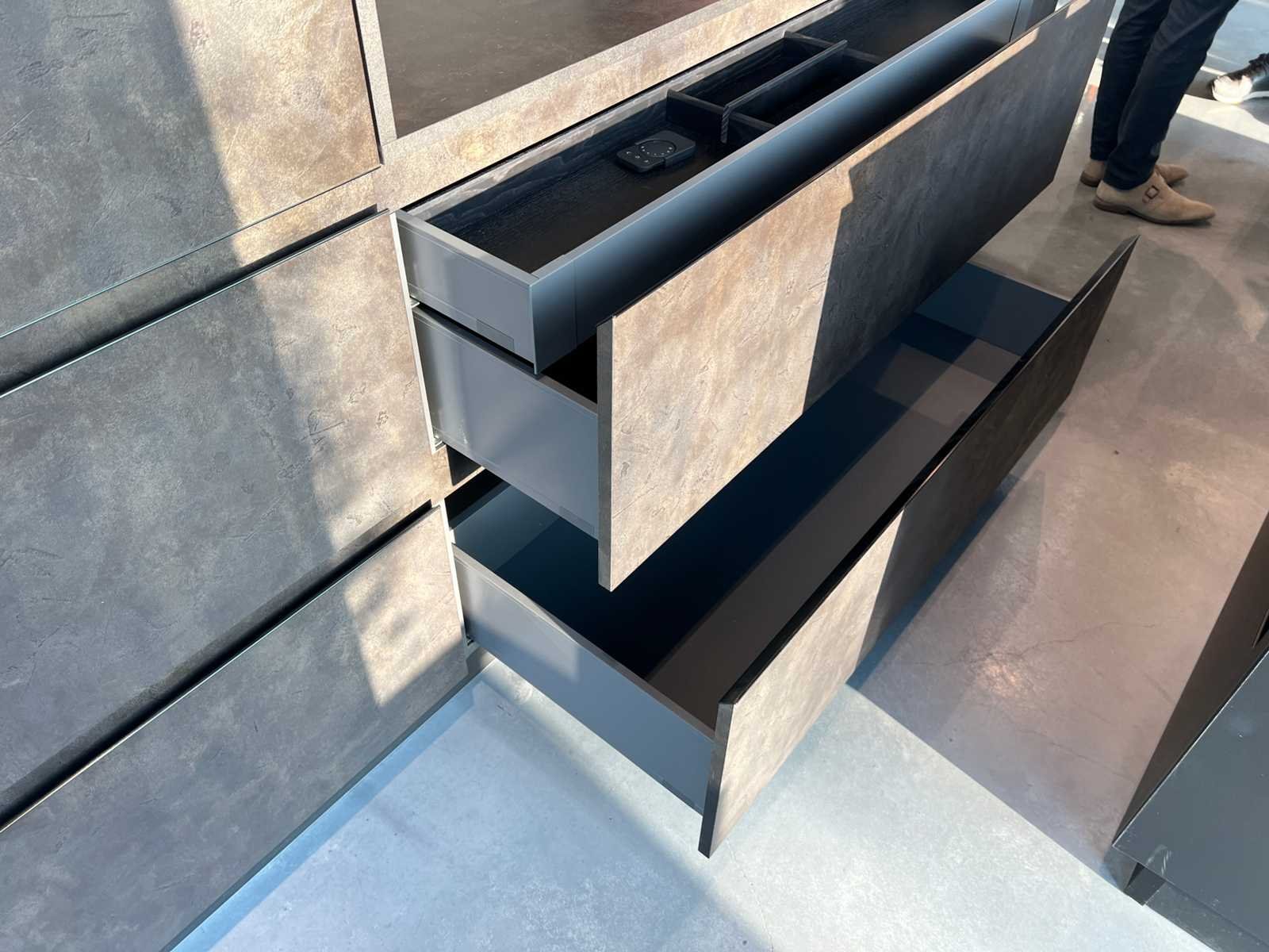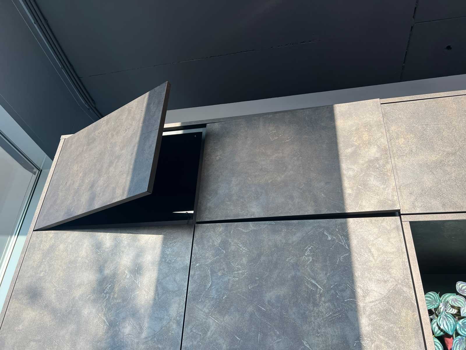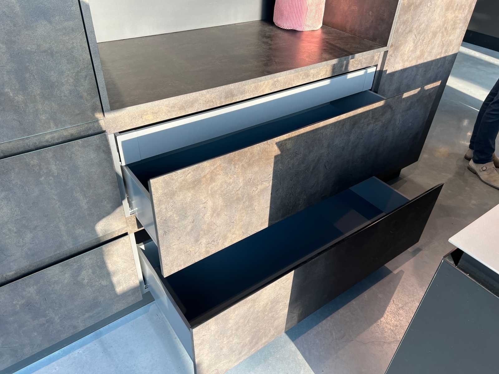 Reeds gedemonteerd en ingepakt op pallets. (afstapelen, omruilen of statiegeld per pallet); pallets zijn niet inbegrepen; statiegeld betalen bij afhalen, of pallets afstapelen; werkblad niet ingepakt op pallets (26-HKW-03393) Merk: Schröder Type keukenopstelling: Eiland Lengte: 304cm Breedte: 64cm Hoogte: 264cm Kraan: Quooker (zonder boiler) Gootsteen: Franke Aanrechtblad: RVS/Aluminium Magnetron: Pelgrim MAC834MAT Fornuis: Pelgrim Koelkast: Pelgrim PKVS2122 Softclose: true Oven: Pelgrim OVM836MAT Afzuigkap: Wave Vaatwasser: Pelgrim DW30.2 Lengte kookeiland: 251cm Breedte kookeiland: 100cm Hoogte kookeiland: 95cm Kleur: Fenix black + Cemento Amber