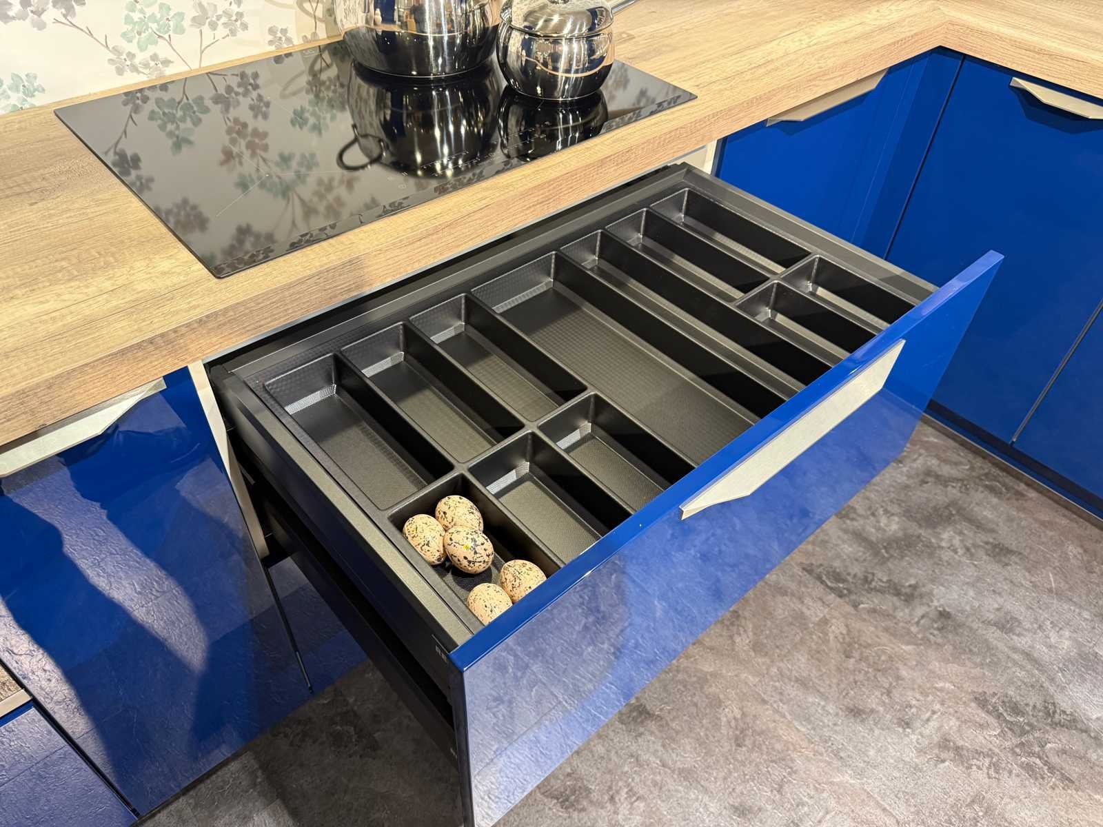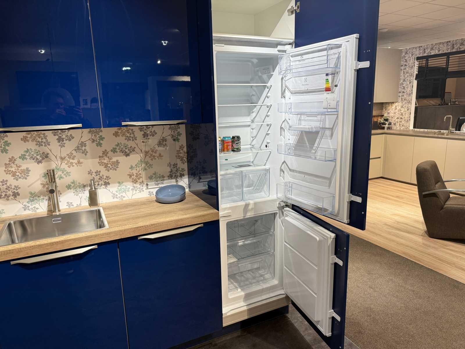 Afmetingen linkerdeel circa 305x65x160 cm; afmetingen rechterdeel circa 290x65x220 cm; reeds gedemonteerd en ingepakt op pallets. (afstapelen, omruilen of statiegeld per pallet); pallets zijn niet inbegrepen; statiegeld betalen bij afhalen, of pallets afstapelen; werkblad niet ingepakt op pallets (25-RKF-02558) Merk: Brigitte Type keukenopstelling: Hoek Aanrechtblad: Kunststof Magnetron: Electrolux KVLFE46X Fornuis: Electrolux EIT814 Koelkast: Electrolux ENT6NE18S Softclose: true Oven: Electrolux KOFFP46BX Afzuigkap: Electrolux LFT769X Vaatwasser: Electrolux KEM8320L Kleur: Nachtblauw