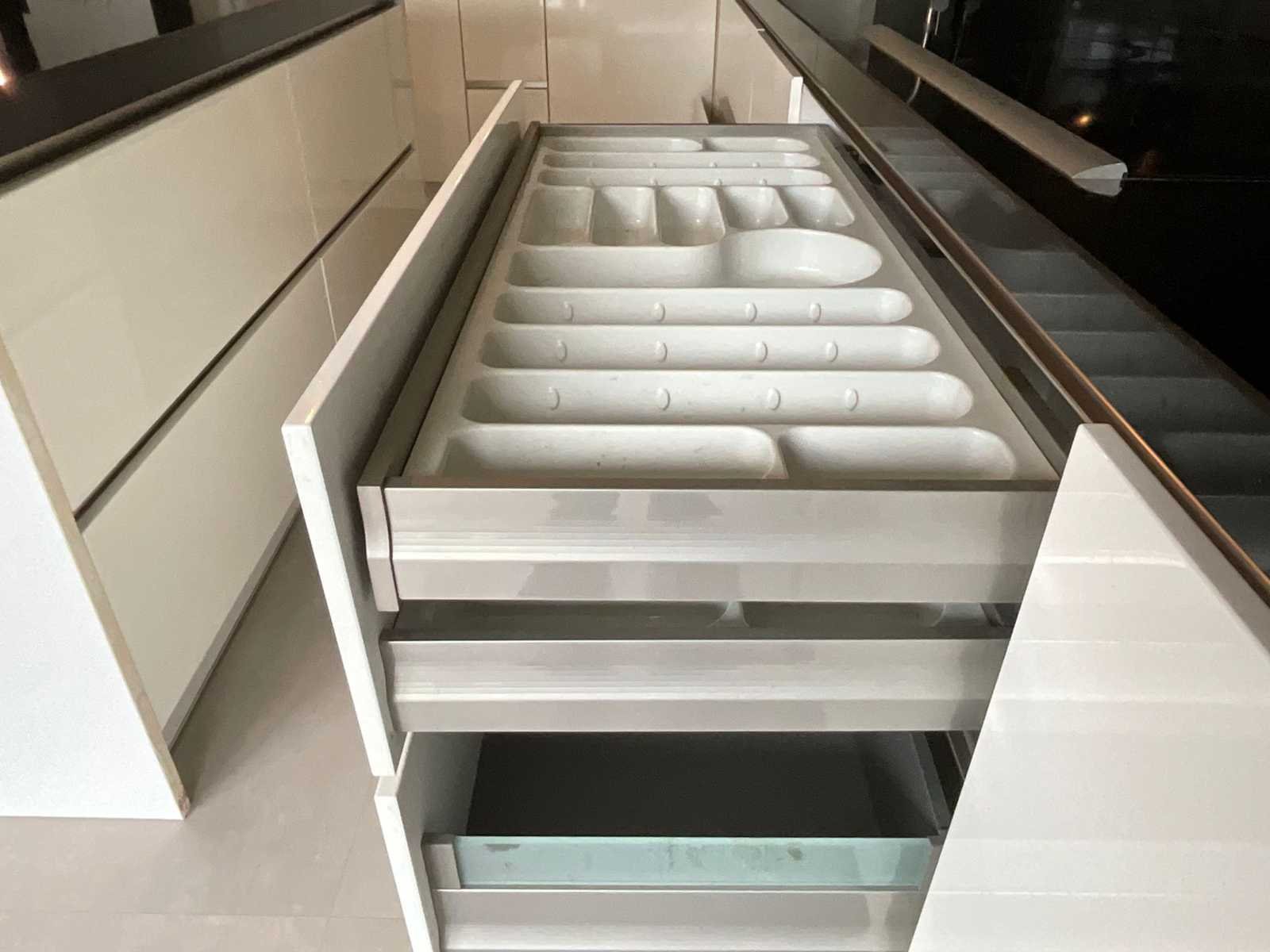 Conditie: gebruikt; afmetingen kastenwand circa 215x61x215 cm; reeds gedemonteerd en ingepakt op pallets. (afstapelen, omruilen of statiegeld per pallet); pallets zijn niet inbegrepen; statiegeld betalen bij afhalen, of pallets afstapelen; werkblad niet ingepakt op pallets (26-2DE-03989) Merk: Häcker Systemat Type keukenopstelling: Eiland Lengte: 421cm Breedte: 63,5cm Hoogte: 93cm Kraan: Quooker zonder boiler Gootsteen: Ja Aanrechtblad: Composiet Fornuis: Siemens Koelkast: Siemens Vriezer: Siemens Softclose: true Oven: Samsung Afzuigkap: Siemens Vaatwasser: Siemens Lengte kookeiland: 185,5cm Breedte kookeiland: 65,5cm Kleur: Hoogglans wit