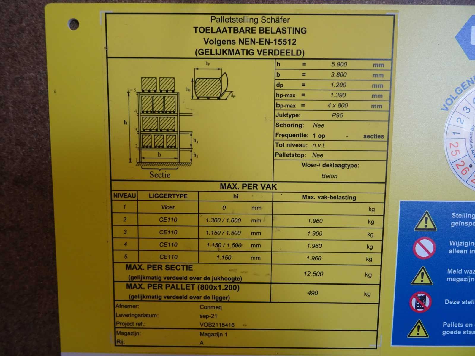 Bestaande uit 7 staanders 590x105cm (hxb) en 42 liggers à 380cm, met stootijzers, gebout aan vloer, bouten dienen te worden afgeslepen Merk: Schäfer