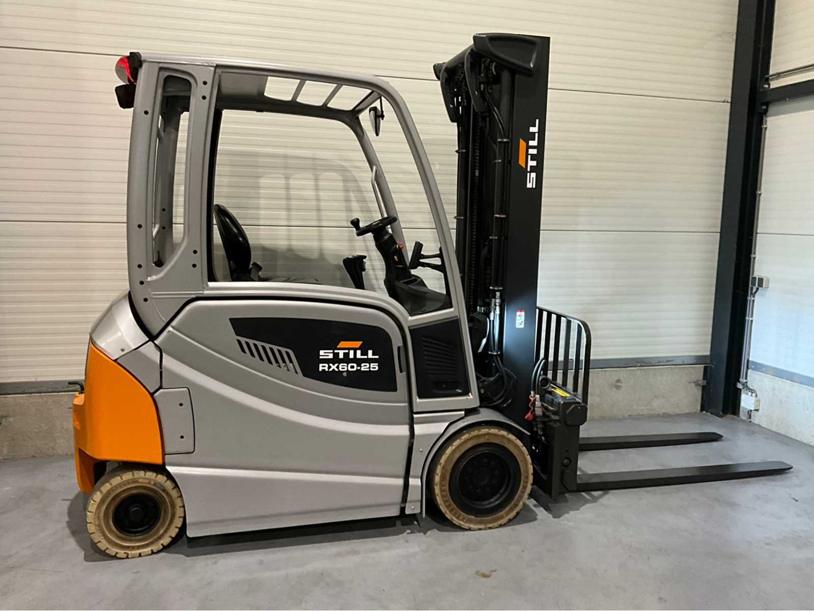 Extra opties : Led verlichting voor en achter , Blue spot , Lepelversteller , elektrische handrem , Merk: Still Type: RX60-25 Bouwjaar: 2020 Serienummer: 516301X00002 Brandstof: Elektrisch Mast: Triple Soort band: Volrubber banden Aantal wielen: 4 Afgelezen urenstand: 6333 Free-lift: true Hydraulisch verstelbare lepels: true Triple mast: true Eigen gewicht: 4911kg Hefvermogen: 2500kg Lepellengte: 1600mm Hefhoogte: 5390mm Vol rubber banden: true Totale afmeting L: 4060mm Totale afmeting Breedte: 1200mm Totale afmeting Hoogte: 2460mm
