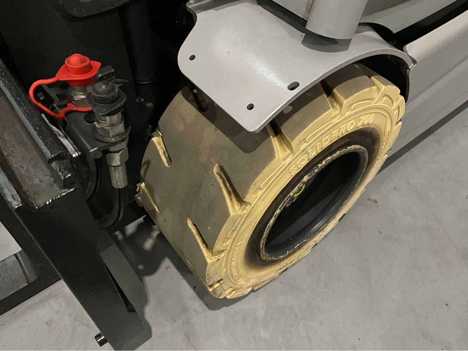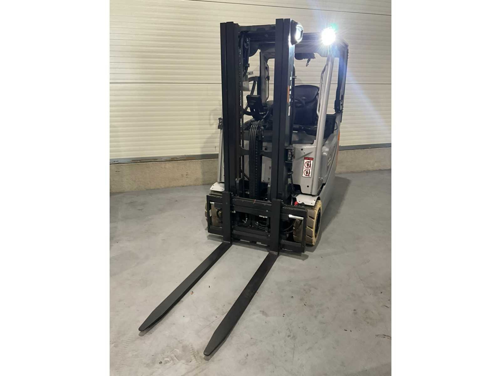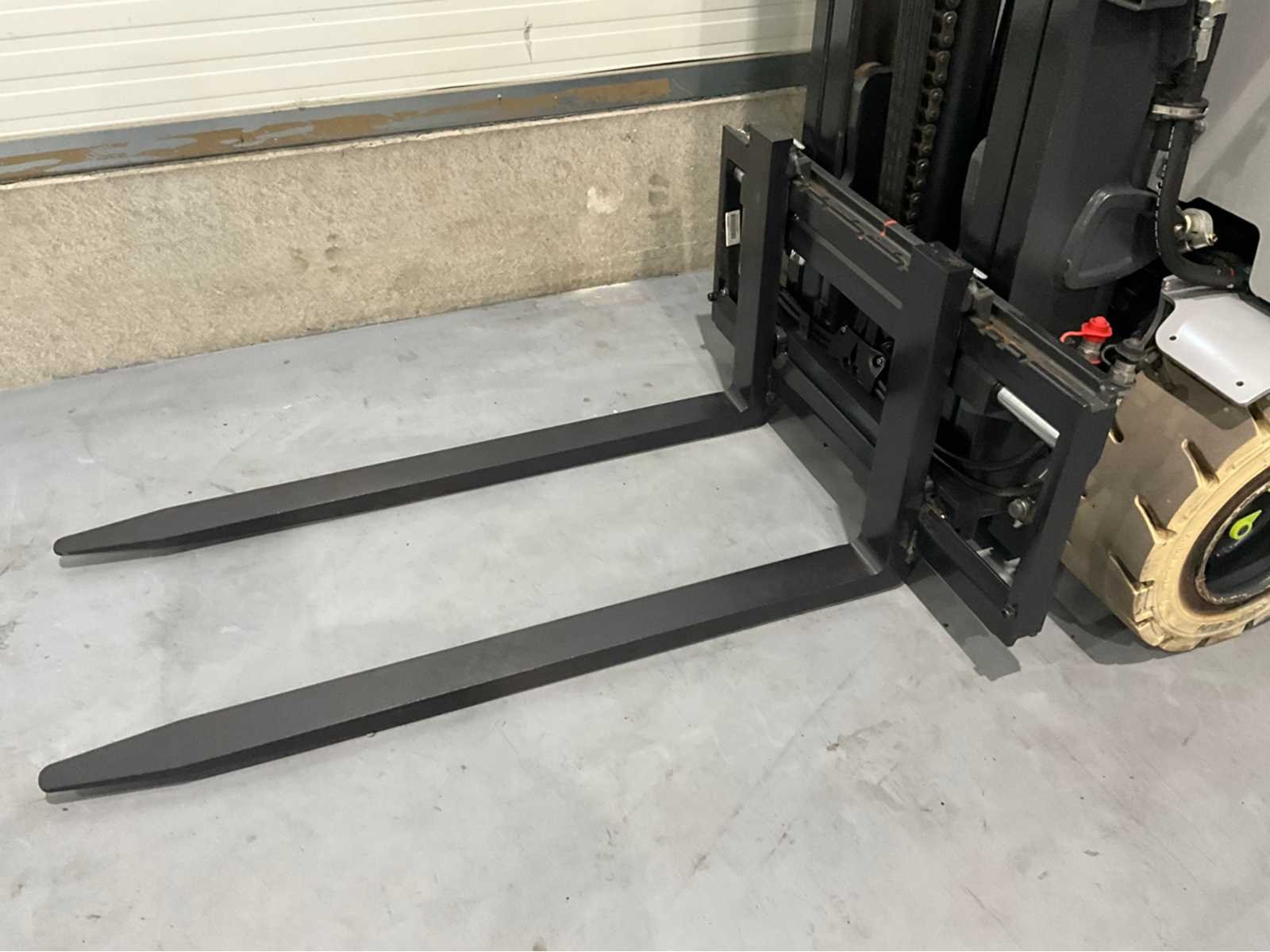 Extra opties : Led verlichting voor en achter , blue spot , Non-marking banden , zwaailamp , valbescherming Merk: Still Type: RX20-18P Bouwjaar: 2019 Serienummer: 516228V00214 Mast: Triple Soort band: Volrubber banden Aantal wielen: 4 Free-lift: true Side-shift: true Triple mast: true Eigen gewicht: 3475kg Hefvermogen: 1800kg Hefhoogte: 4220mm Vol rubber banden: true Totale afmeting L: 3170mm Totale afmeting Breedte: 1090mm Totale afmeting Hoogte: 1980mm