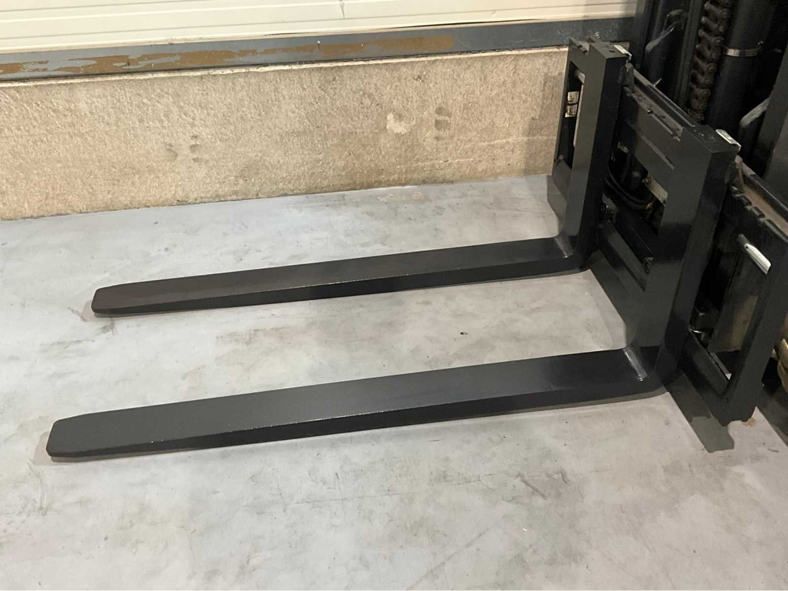 Extra opties : Rondom Led verlichting , Blue spot , Joystick , Elektrische handrem , Non-marking banden Merk: Linde Type: E18PH-02 Bouwjaar: 2019 Serienummer: H2X386V06179 Aantal wielen: 4 Free-lift: true Side-shift: true Hydraulisch verstelbare lepels: true Hefvermogen: 1800kg Hefhoogte: 3140mm Vol rubber banden: true Totale afmeting L: 3340mm Totale afmeting Breedte: 1010mm Totale afmeting Hoogte: 2130mm