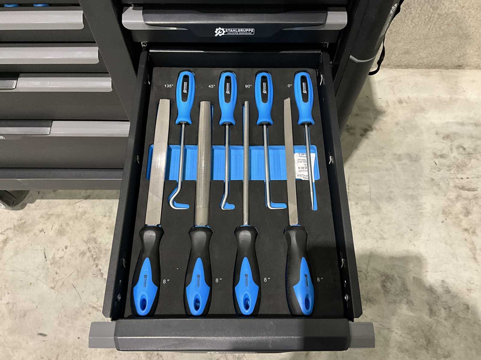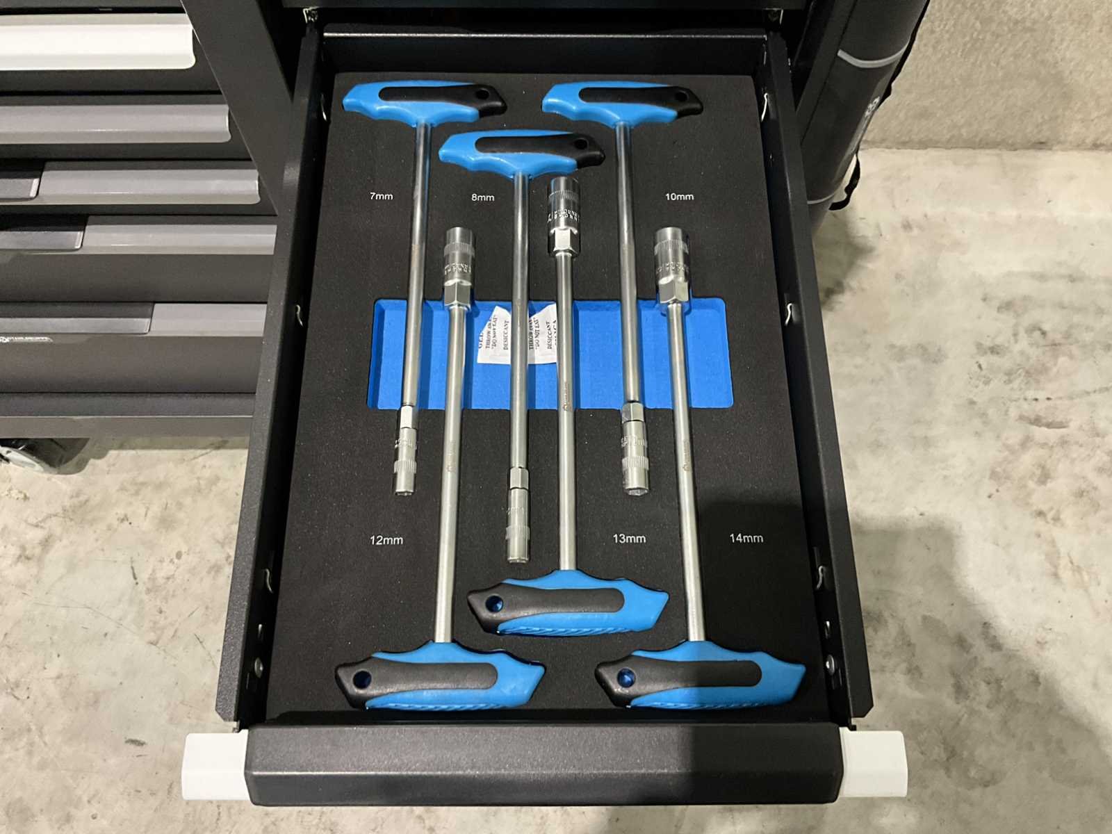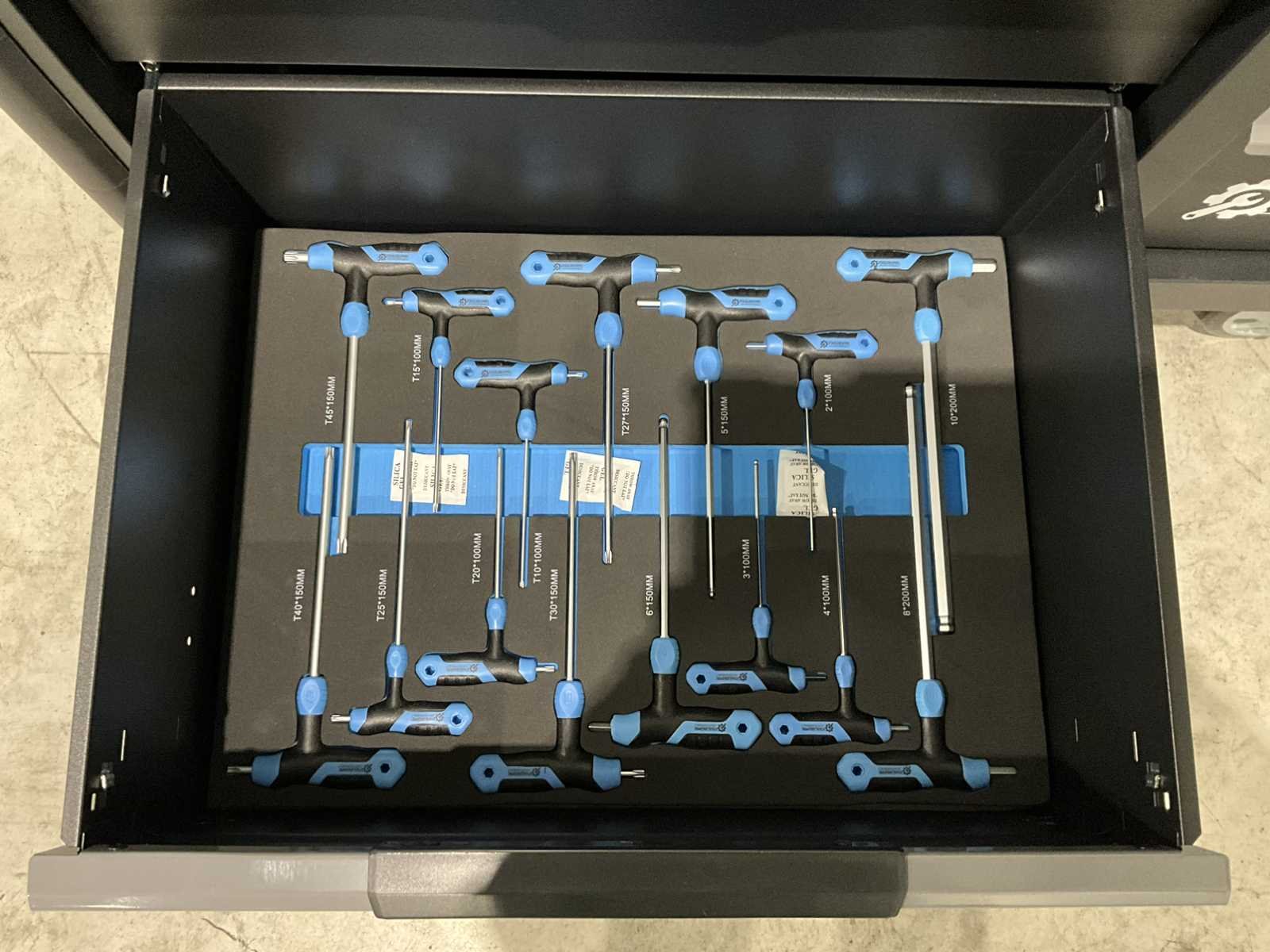 Staat: Ongebruikt, in de originele verpakking Aantal laden: 13 laden Aantal gevulde laden: 10 gevulde laden Gereedschap: Chrome Vanadium gereedschap Inhoud: 2 dopsleutel sets (1/2” & 1/4”) Momentsleutel (40-220 Nm) Impact-doppen (10-22 mm) Ringsteeksleutel set (6-32 mm) Ringratelsleutel set (8-19 mm) Inbussleutel set (1,5-10 mm) Ringsleutel set (6-32 mm) Torx sleutel set (T8-T70) Schroevendraaier set (21 stuks) Tangen set (9 stuks) Beitel en doorslagen set (18 stuks) Vijlen set (5 stuks) T-greep dopsleutel set (7-14 mm) T-greep torx sleutel set (T15-T45) Hamers (3 stuks) VDE gereedschap (3 tangen en 7 schroevendraaiers) Enzovoort... Merk: Stahlgruppe Type: Jumbo Bouwjaar: 2026 Aantal laden: 13 Met inhoud: true Eigen gewicht: 153kg Totale afmeting L: 1150mm Totale afmeting Breedte: 550mm Totale afmeting Hoogte: 1100mm