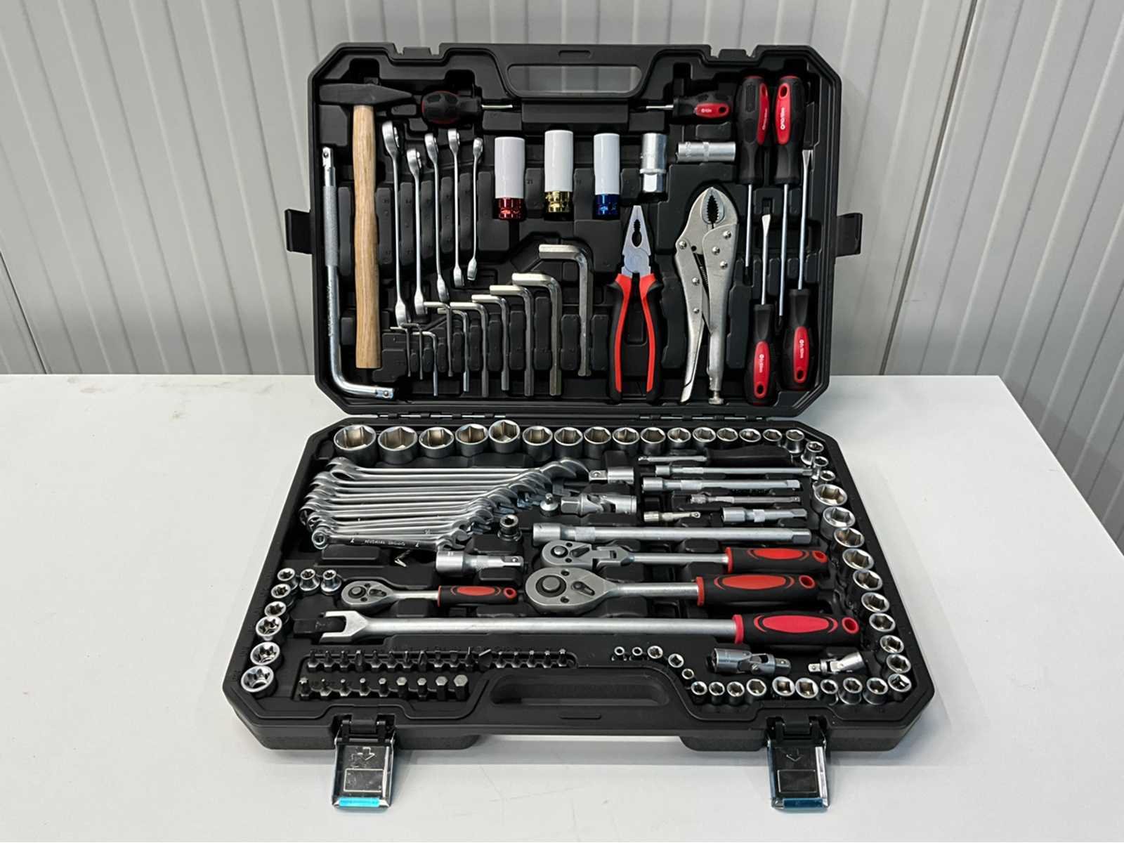 Lasapparaat |EN een gereedschapskoffer Rated Input Voltage 220 Frequency Hz: 50/60 Rated Input Capacity Kw: 7.5 Rated Input current A: 42 Duty cycle 40C 10 min EN gereedschapskoffer incl 144 pcs gereedschap Merk: Ultra Force Equipment Type: MMA-200S Bouwjaar: 2026 Max. lasvermogen: 200A Aansluiting: 230V Machinegewicht: 6kg Afmeting l: 370mm Afmeting b: 220mm Afmeting h: 300mm