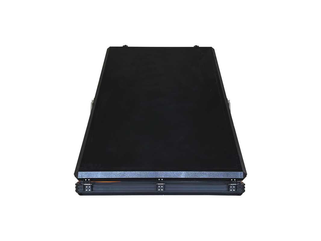 Frame: aluminium Top board: 15 mm aluminium honingraat plank + composiet katoen Bodem board: 20 mm aluminium honingraat plank + sponsmat Doek: 280 g/m2 oxford canvas, UV-beschermd, 3000 mm PU-waterdicht Verlichting: LED Open formaat: 2,63x1,49x1,58 meter Dicht formaat: 2,12x1,42x0,175 meter Verpakkingsformaat: 2,23x1,53x0,24 meter Merk: Field Camp Model: Premium 2 Gewicht: 100kg