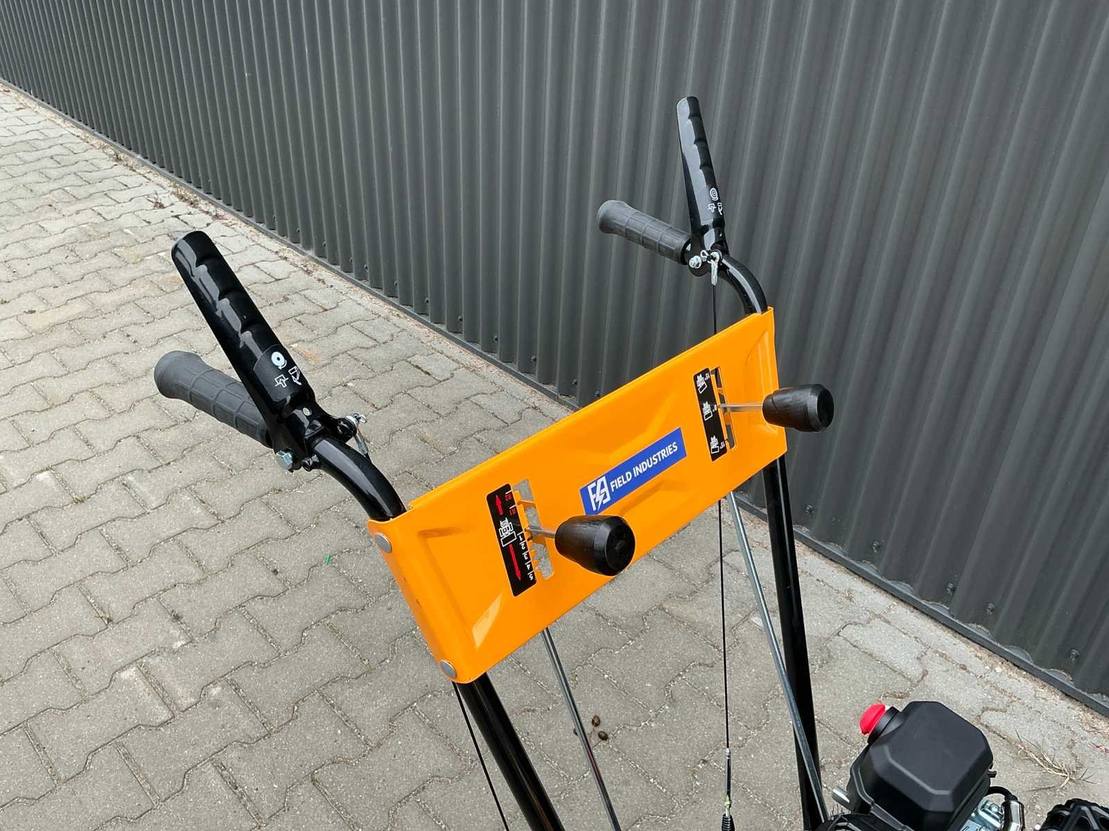 Zelfaangedreven veegmachine, voorzien van 196 cc Loncin 4-takt benzinemotor, elektrisch gestart. Rolborstel verstelbaar in drie verschillende standen (15° naar links, 0° en 15° naar rechts), 5 versnellingen vooruit en 2 achteruit Merk: Field Industries Type: FS-600 e-start Bouwjaar: 2025 Werkbreedte: 600mm