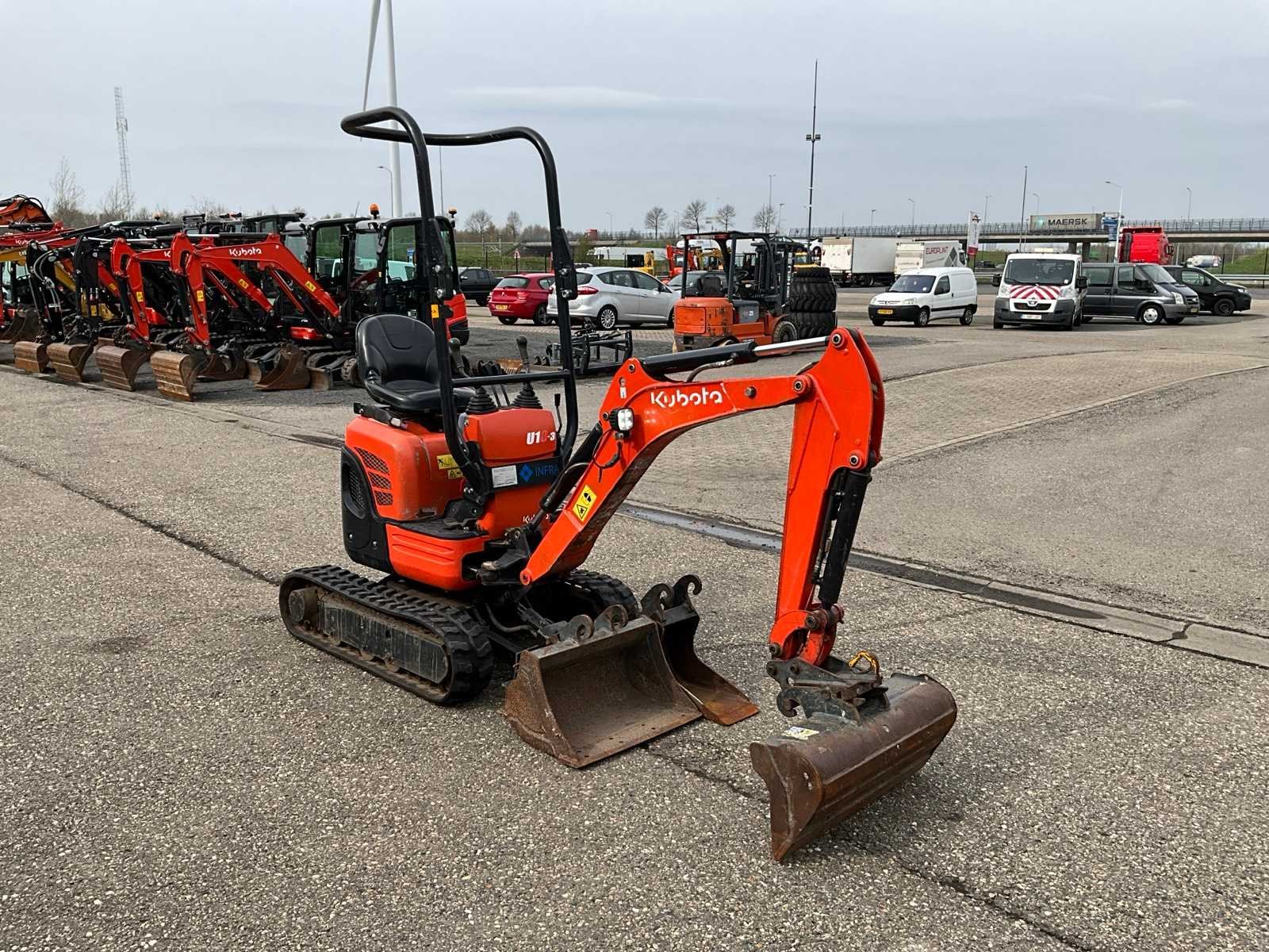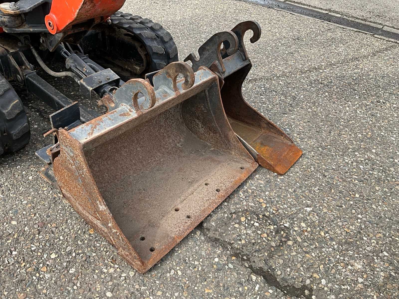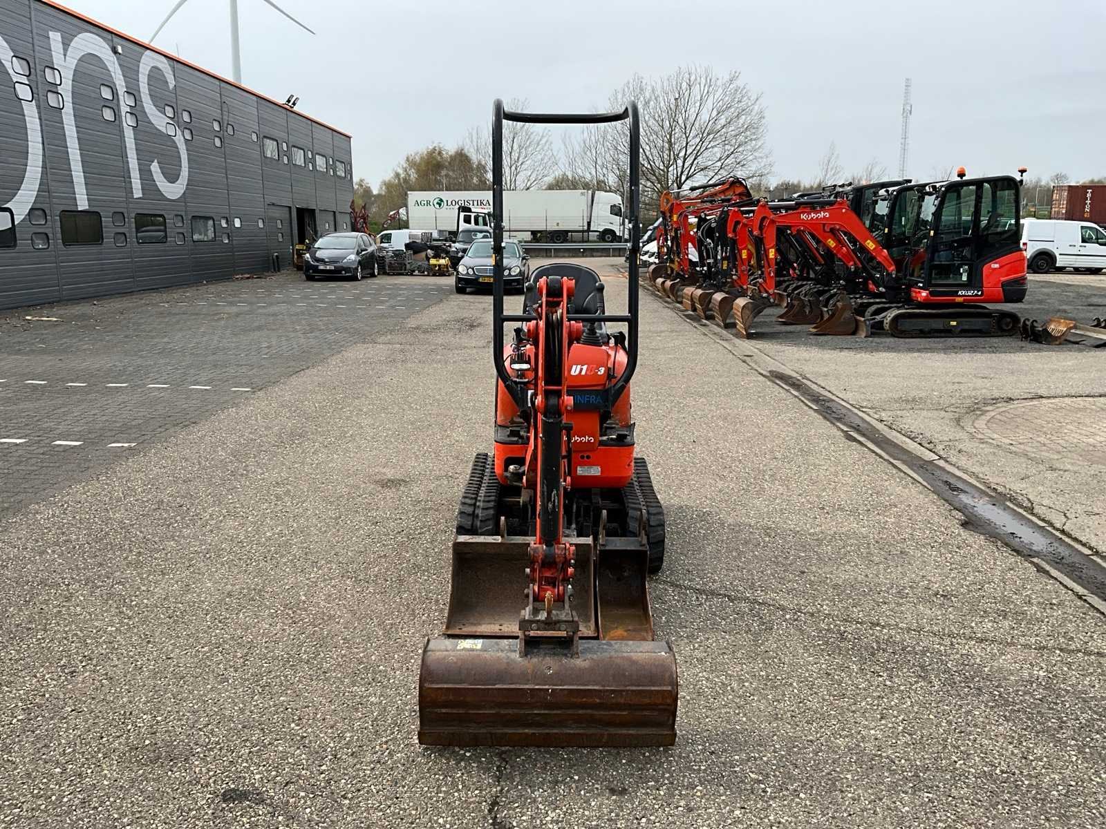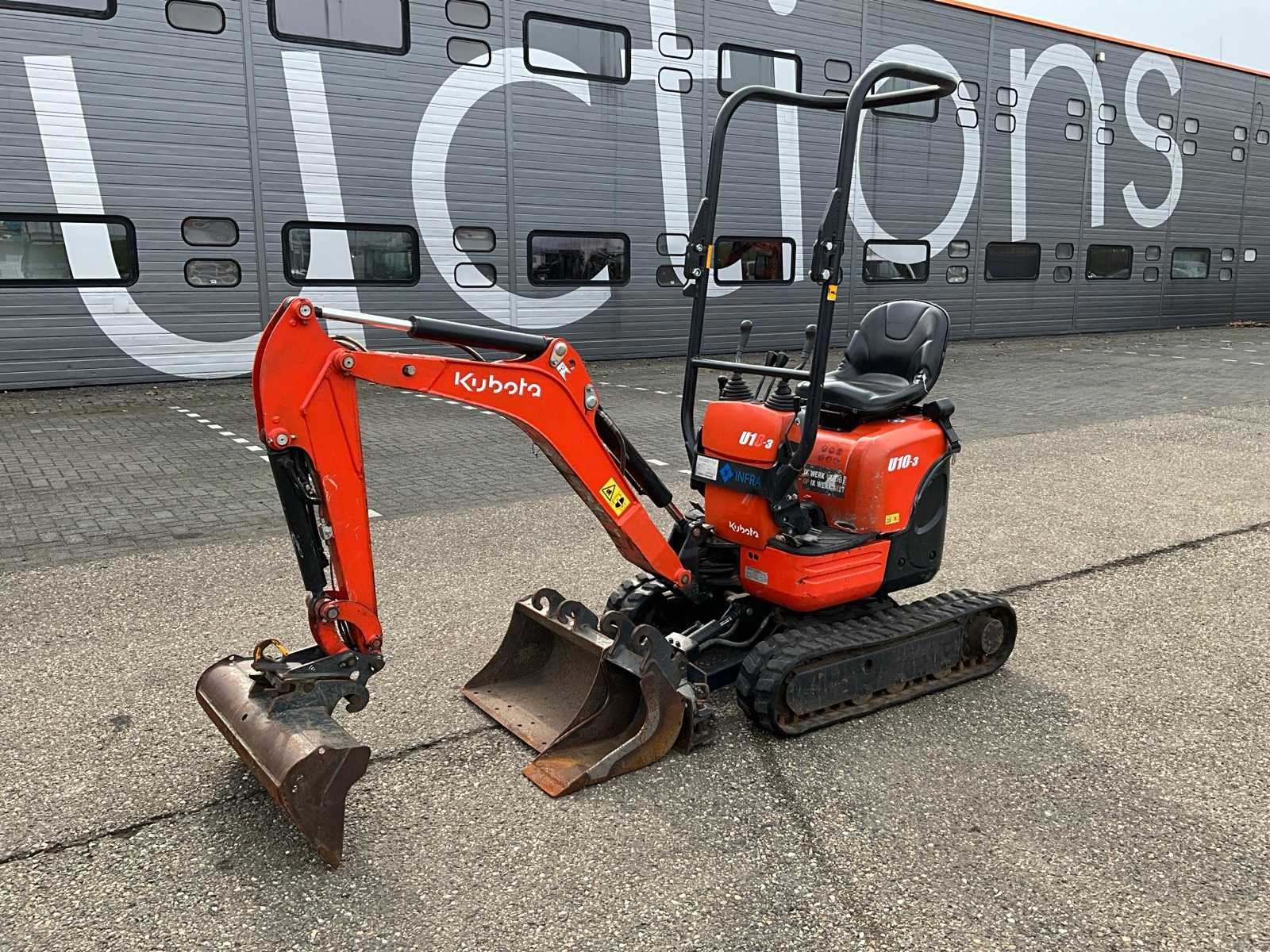 CW00 hydraulische snelwissel, CW00 slotenbak 80cm, CW00 dieplepel 60cm, CW00 banaanbak 21cm, 3e functie, 2e rijsnelheid, verstelbaar rijwerk 75cm t/m 99cm Merk: Kubota Type: U10-3 Bouwjaar: 2018 Serienummer: JK000103T01H29895 Merk motor: Kubota Motorvermogen (kW): 7.4kW Aantal cilinders: 3 Brandstof: Diesel Bedrijfsgewicht: 1120kg Rups breedte: 180mm Totale afmeting L: 3000mm Totale afmeting Breedte: 1000mm Totale afmeting Hoogte: 2200mm