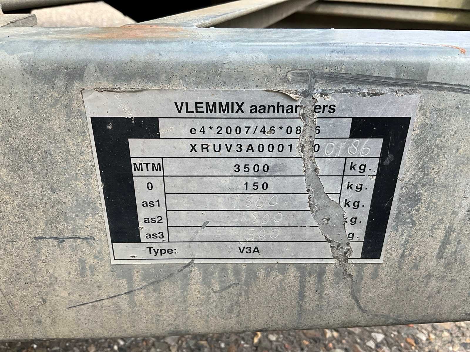 Merk: Vlemmix Type: V3A Bouwjaar: 2019 Chassisnummer: XRUV3A00019000186 Aantal assen: 3 Laadbak afmeting l: 401cm Laadbak afmeting b: 180cm Ledig gewicht: 880kg Laadvermogen: 2620kg Datum eerste toelating: 2019-09-11 Datum eerste toelating (NL): 2019-09-11 Kenteken: 46-WV-JH Hoogte: 168cm Lengte: 600cm Breedte: 240cm Nationaliteit documenten: Nederland Zelf rijdend exporteren: Mogelijk