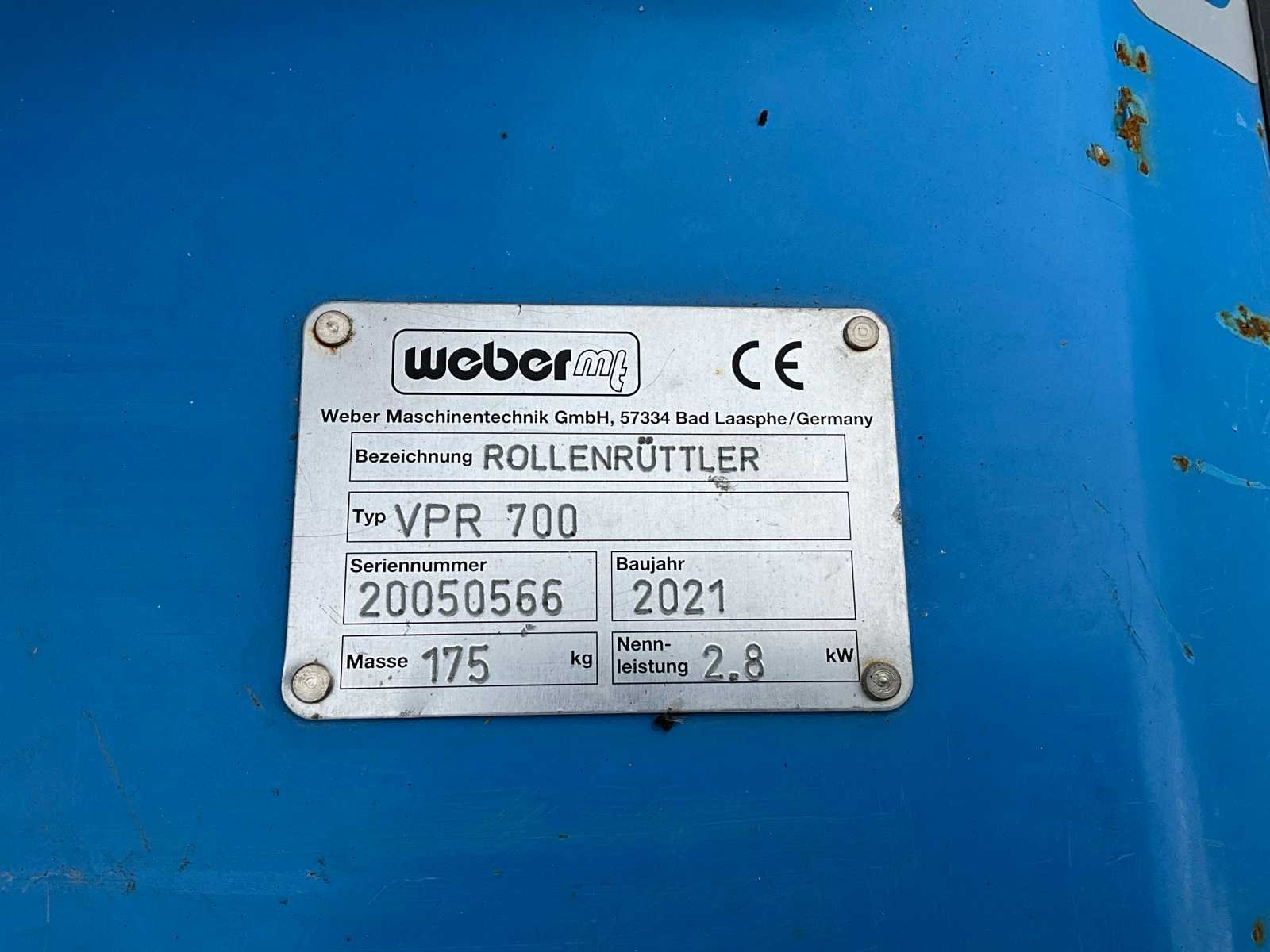 Merk: Weber Type: VPR700 Rollentrilplaat Bouwjaar: 2021 Serienummer: 20050566 Bedrijfsgewicht: 175kg Grondplaat afm. b: 670mm Motorvermogen (kW): 2.8kW Brandstof: Benzine