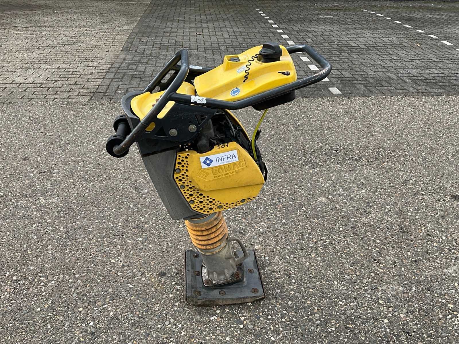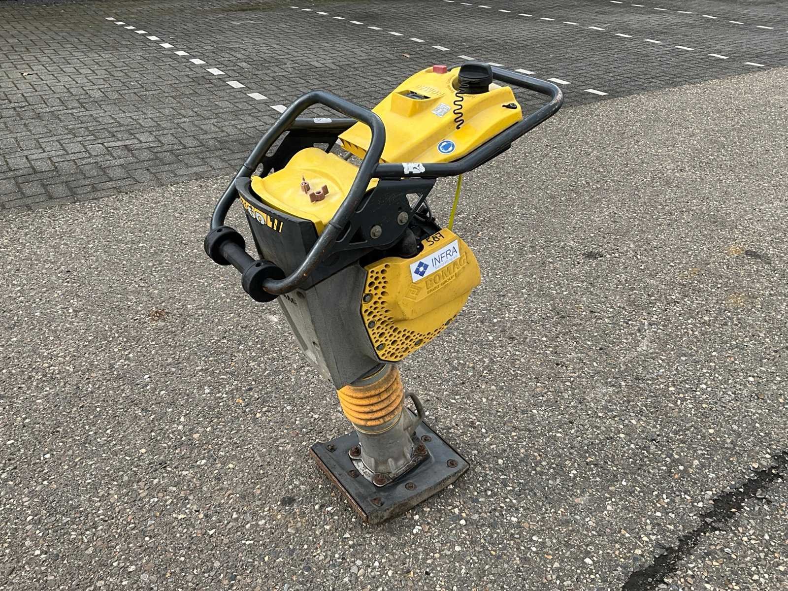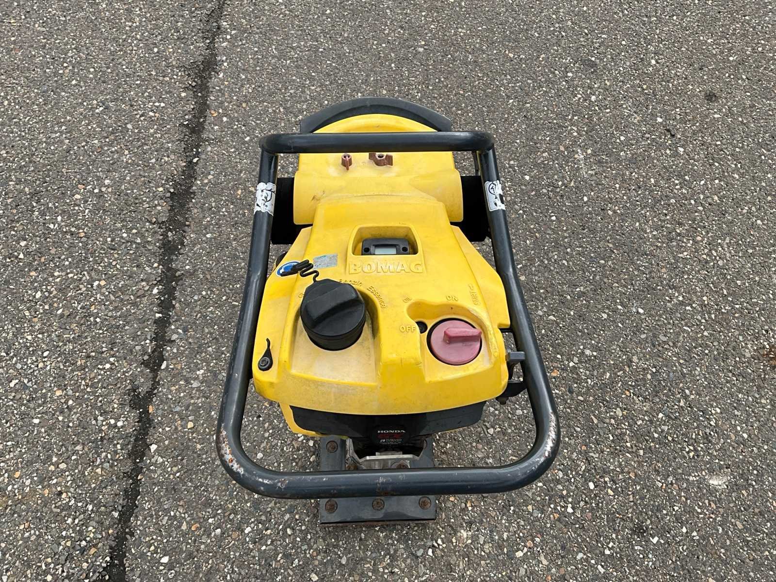 Merk: Bomag Type: BT60 Bouwjaar: 2016 Serienummer: 101541123374 Bedrijfsgewicht: 58kg Afmeting voet l: 330mm Afmeting voet b: 270mm Merk motor: Honda GX R120 Motorvermogen (kW): 2kW Brandstof: Benzine