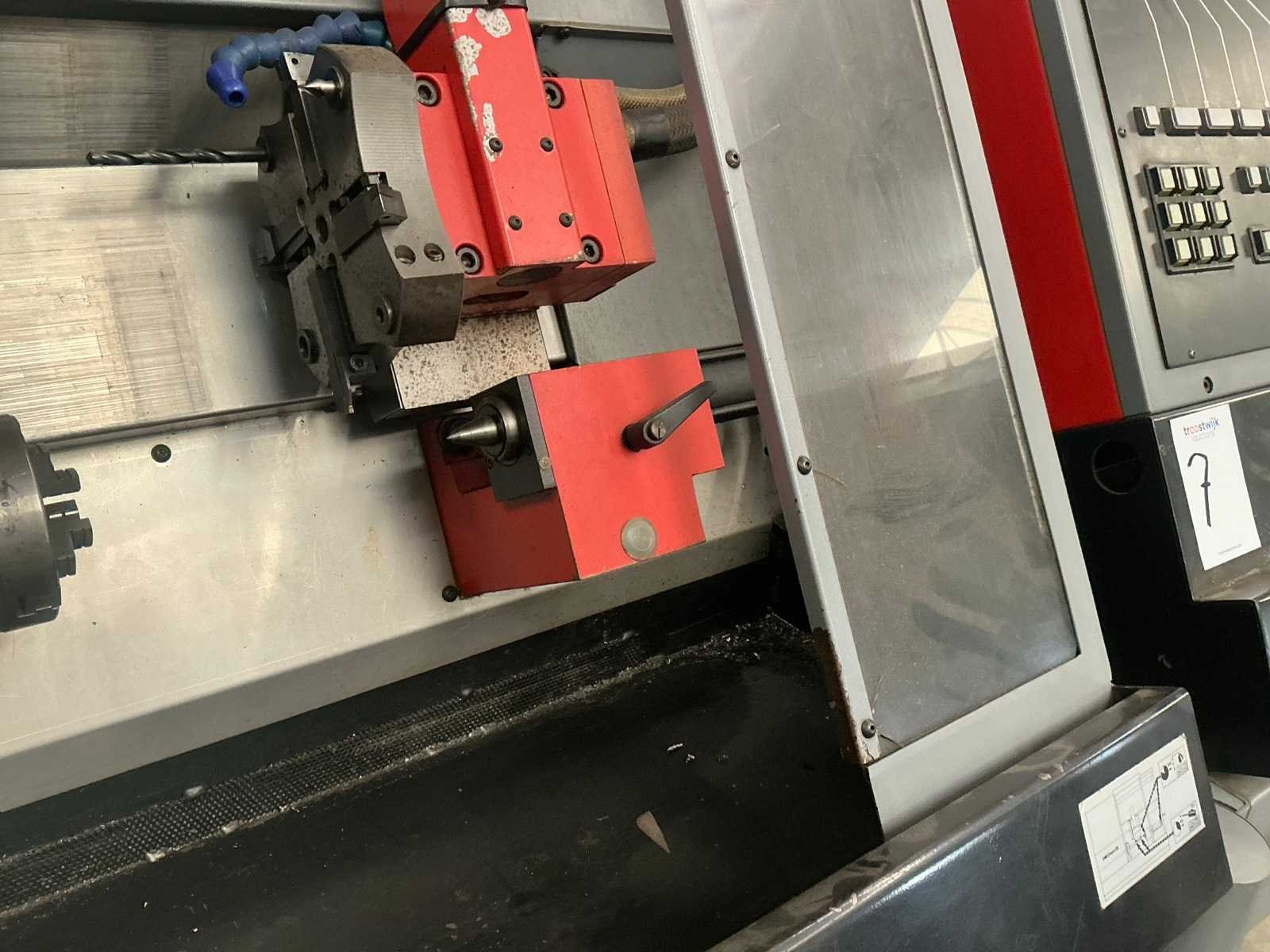 Merk: EMCO Type: EmcoTurn 120 Serienummer: A7B A8 A9 027 Draailengte: 120mm Draai: 120mm Aantal gereedschapwisselstations: 8 Besturing, merk, type: EMCOtronic TM02 Aansluiting: 400V Afmeting l: 2050mm Afmeting b: 900mm Afmeting h: 1600mm