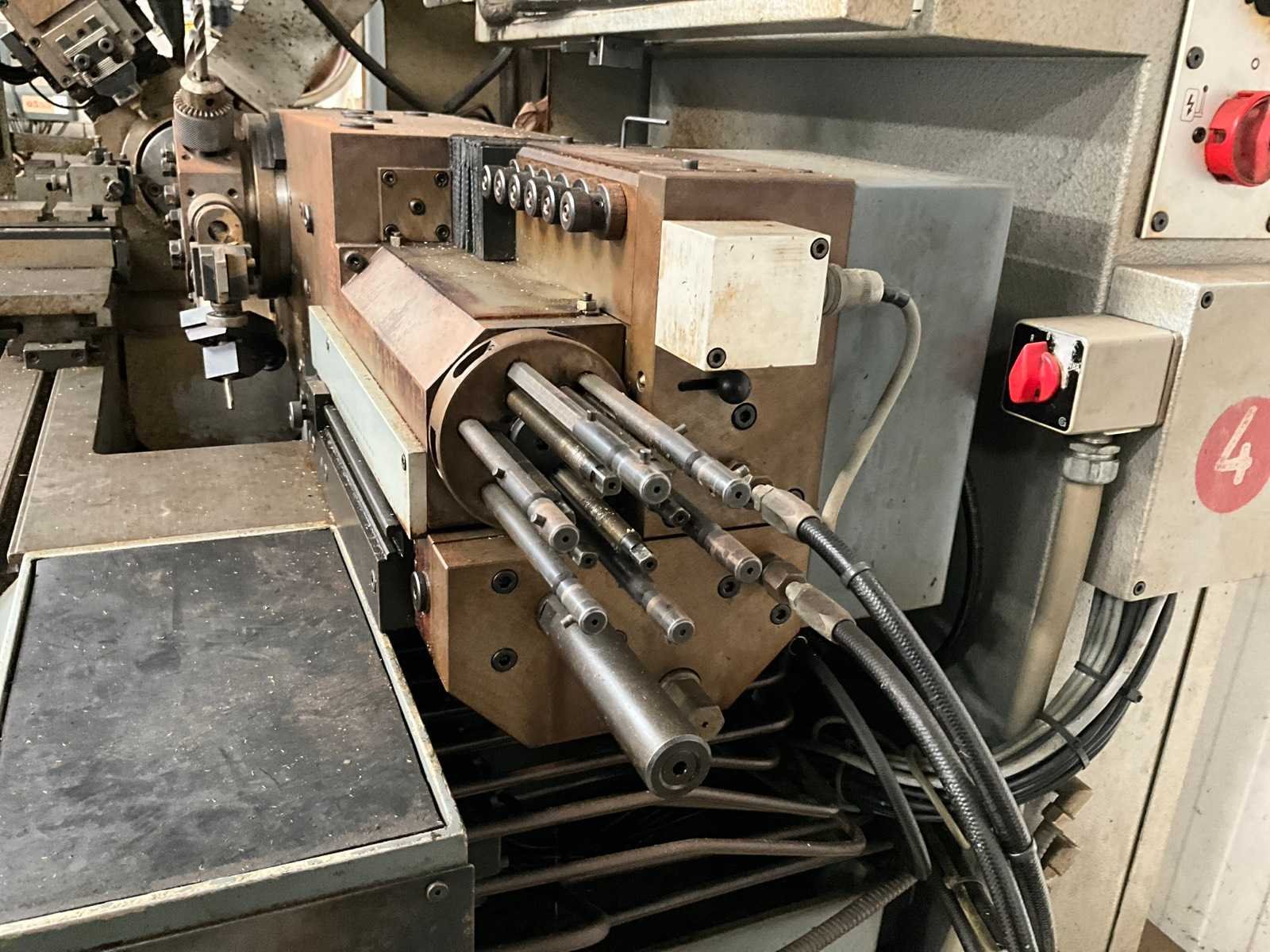 Stafaanvoer van 4400 mm lengte Er zijn geen toereikende hijsmiddelen beschikbaar om dit kavel te laden. Merk: Schaublin Type: 123 Serienummer: 280609 Draailengte: 150mm Draai: 210mm Aantal snelheden: 4 Snelheid van n =: 200rpm Snelheid tot n =: 4500rpm Aantal gereedschapwisselstations: 6 Koelmiddelpomp: true Aansluiting: 380V Afmeting l: 1200mm Afmeting b: 1700mm Afmeting h: 1900mm