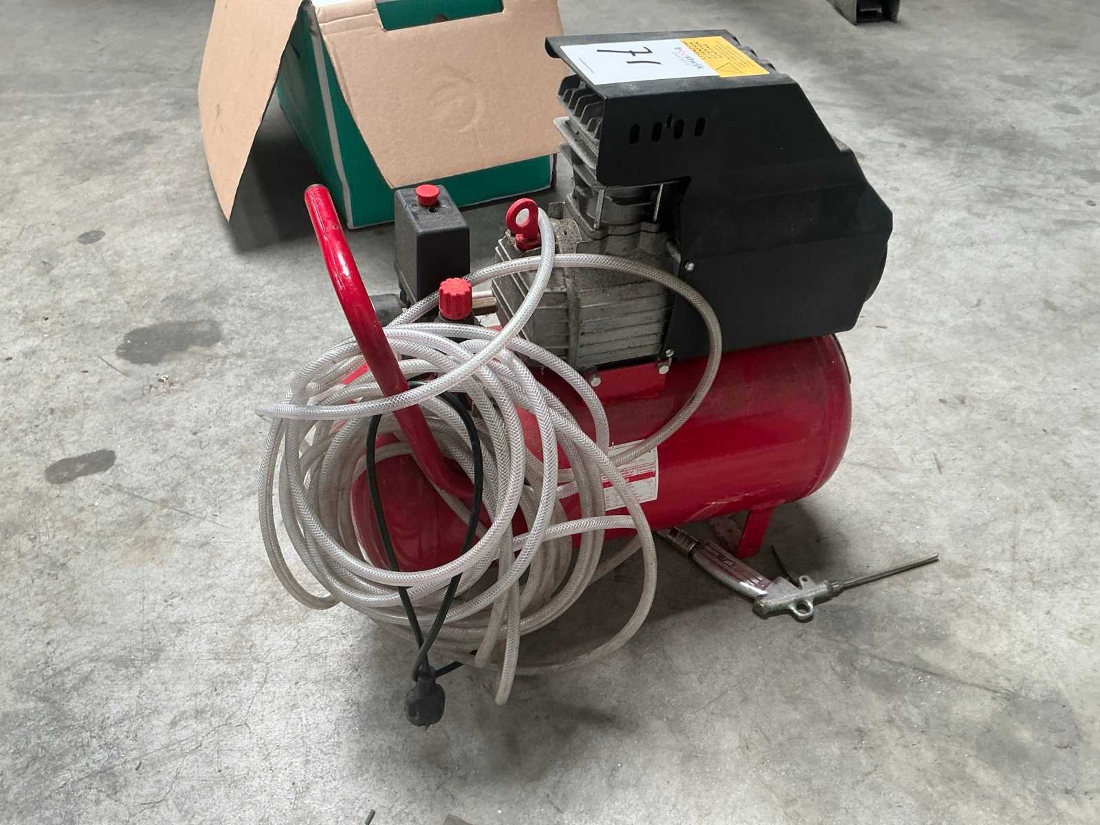 Direct drive motor, inclusief slang en luchtpistool Merk: Fremark Capaciteit.: 8bar Buffertank inhoud: 25l Aansluiting: 230V Totale afmeting L: 600mm Totale afmeting Breedte: 250mm Totale afmeting Hoogte: 590mm