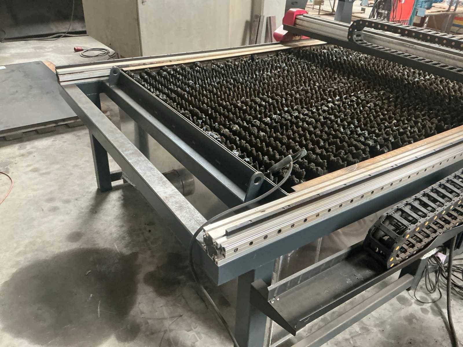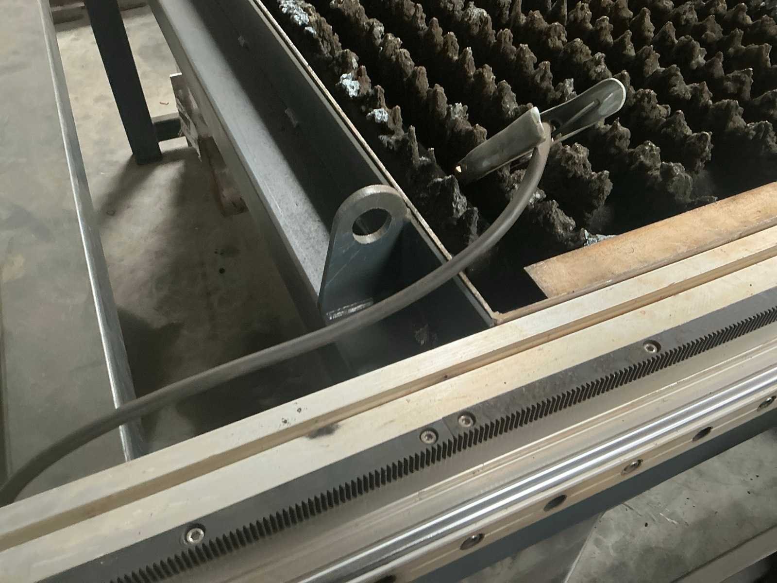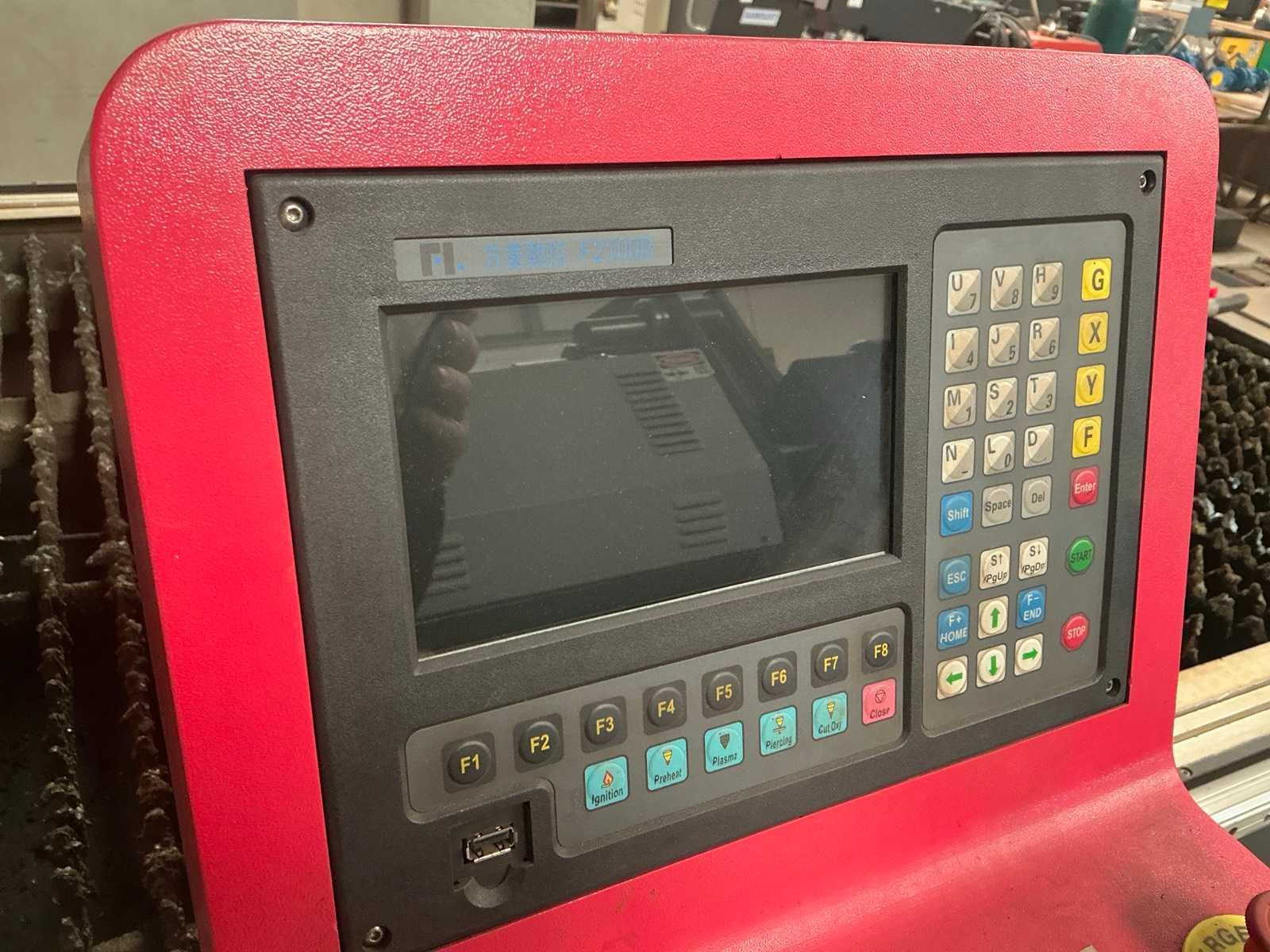 Voorzien van F2100B besturing en Conti-Weld Cinti-Pac 105NH stroombron, bruikbaar tafelmaat circa 2700x1450mm, afmeting totaal circa 3500x2250x1500mm. Type: ZLT-1530 Aansluiting: 400V