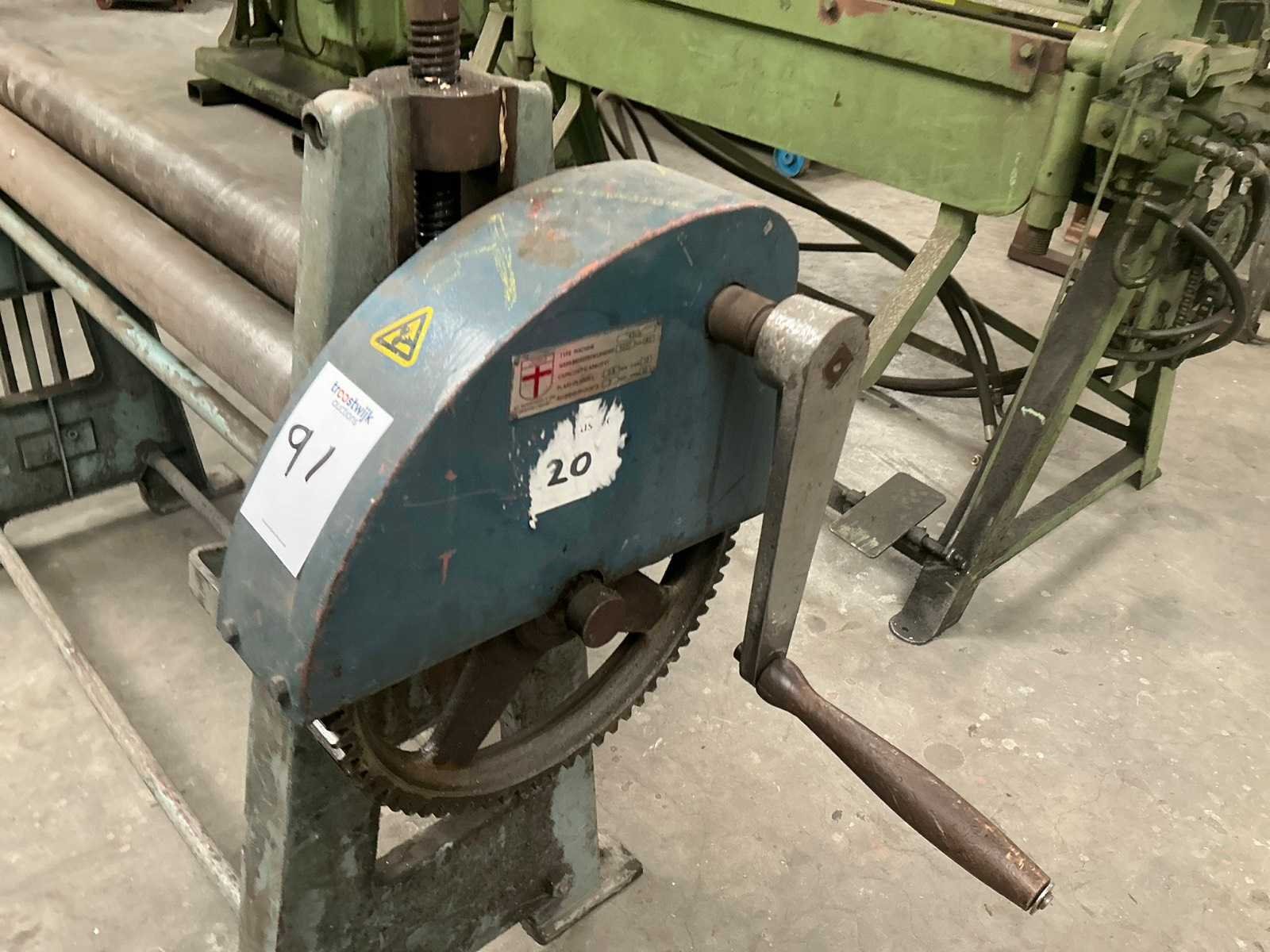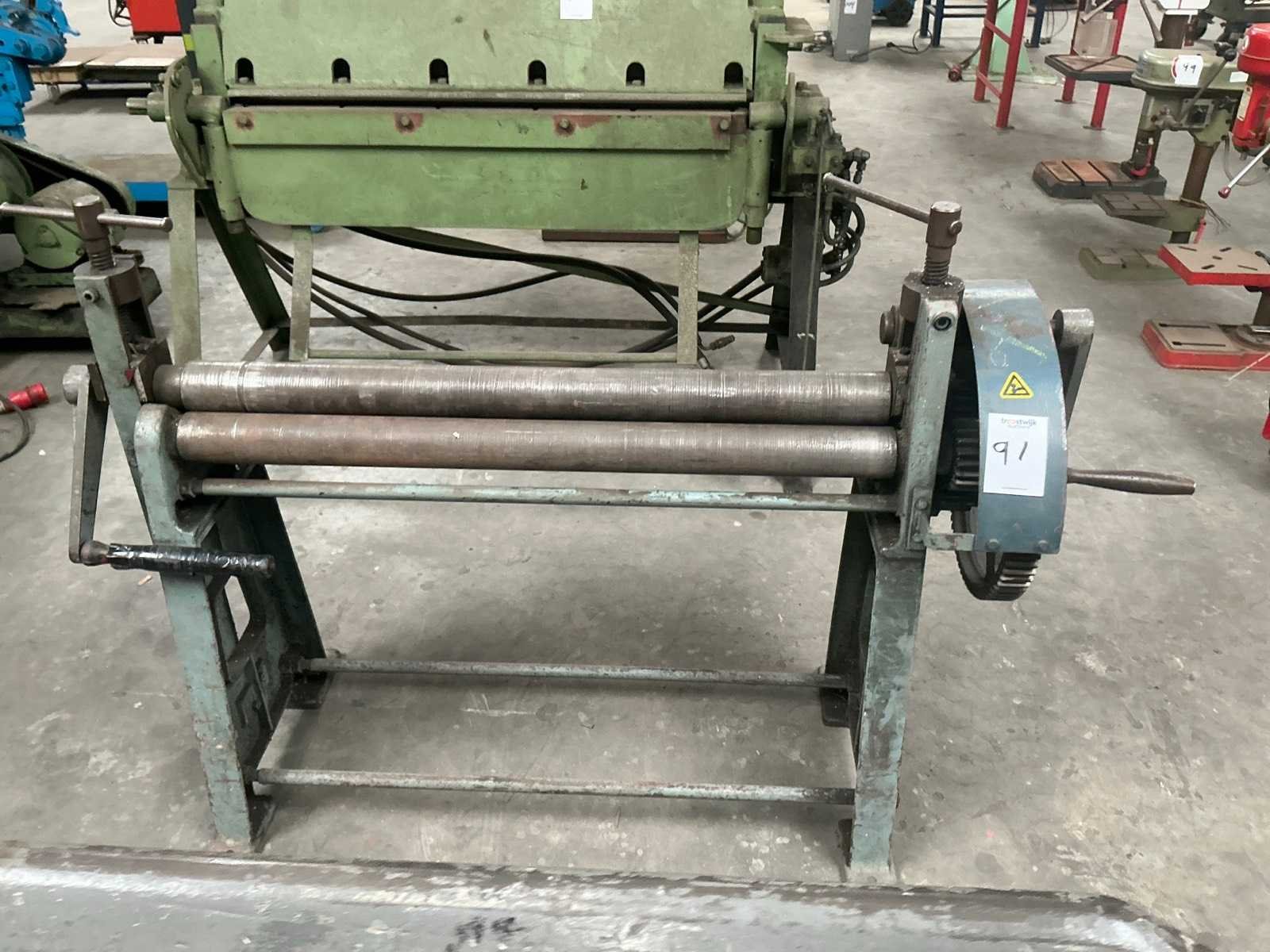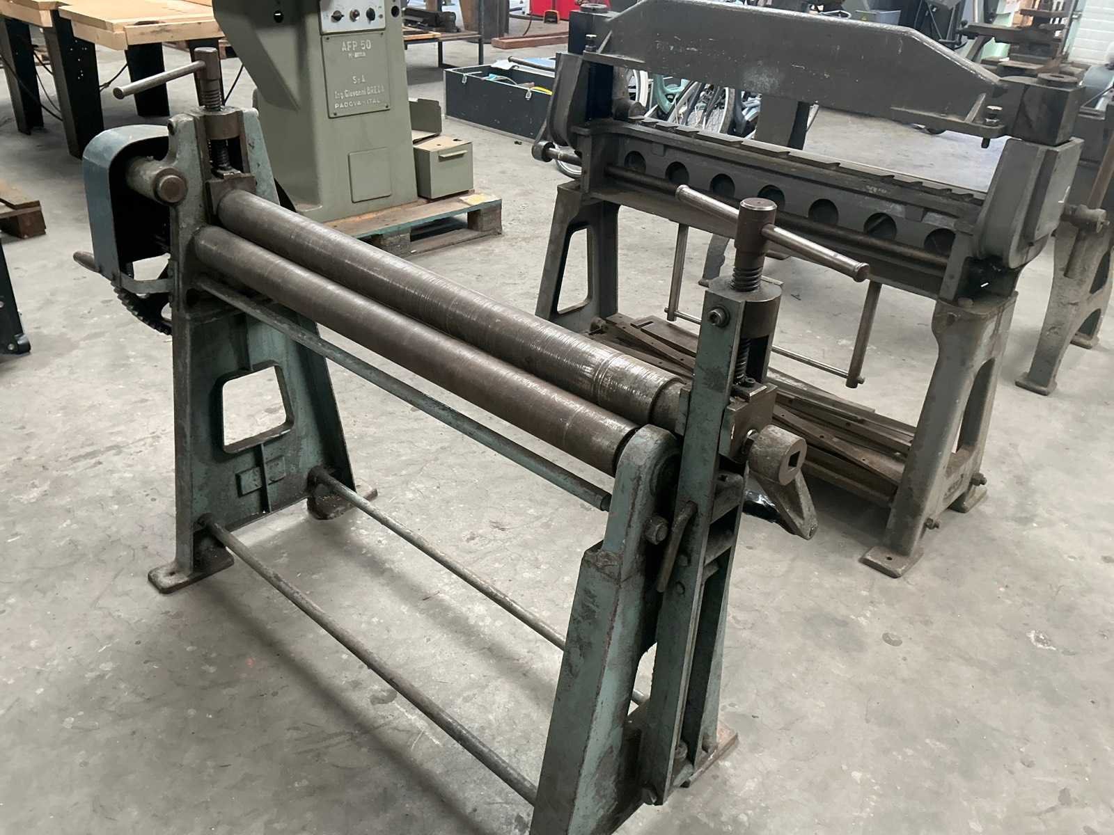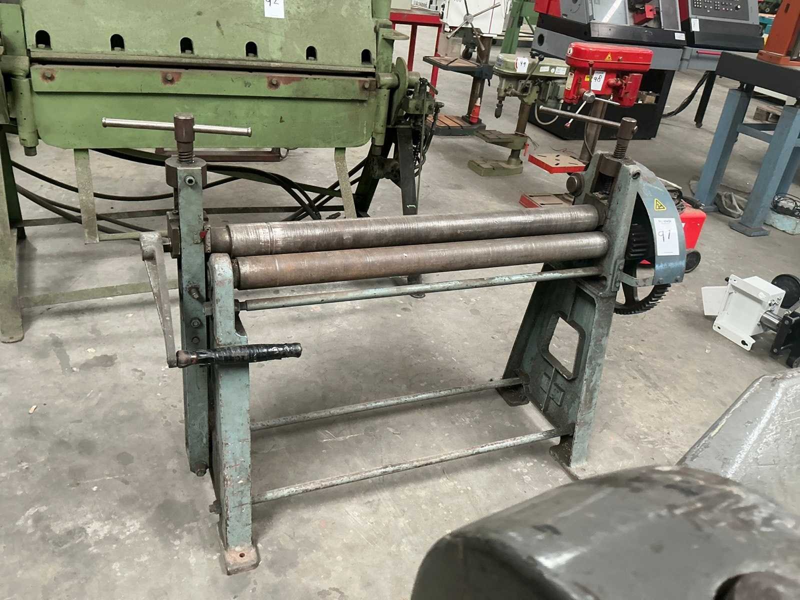 2 rollen aangedreven Merk: Jorg Type: 4503 Capaciteit lengte: 1020mm Aantal rollen: 3 Bovenrol Ø ca.: 80mm Afmeting l: 1700mm Afmeting b: 500mm Afmeting h: 1150mm