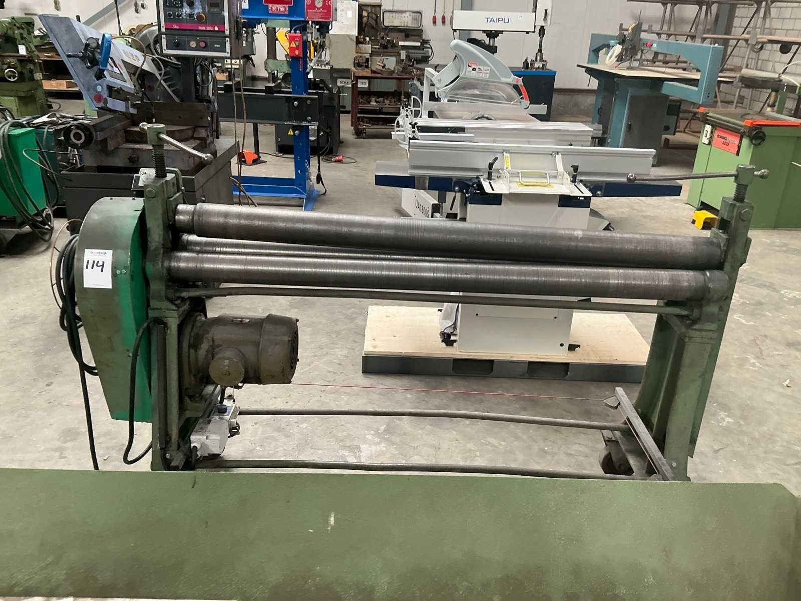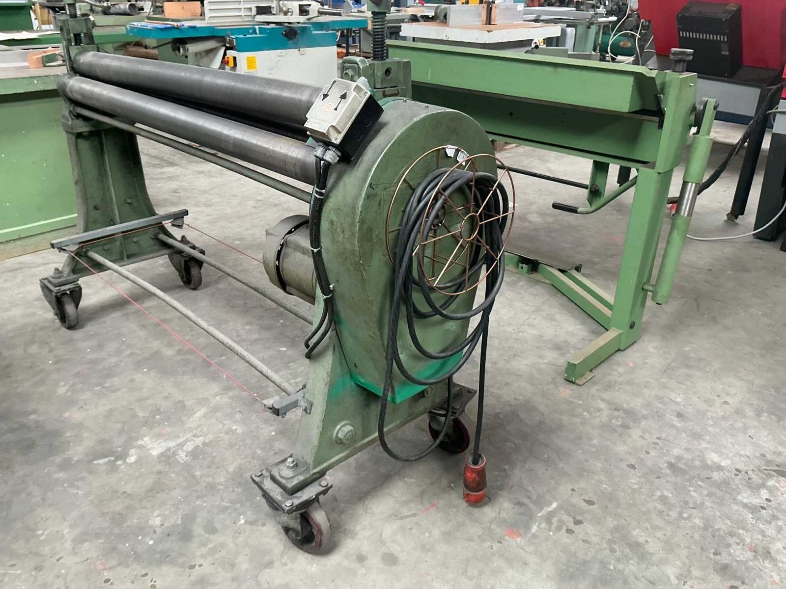 Mobiel onderstel Capaciteit lengte: 1550mm Aantal rollen: 3 Bovenrol Ø ca.: 100mm Motorvermogen (kW): 3kW Aansluiting: 400V Afmeting l: 2000mm Afmeting b: 750mm Afmeting h: 1400mm