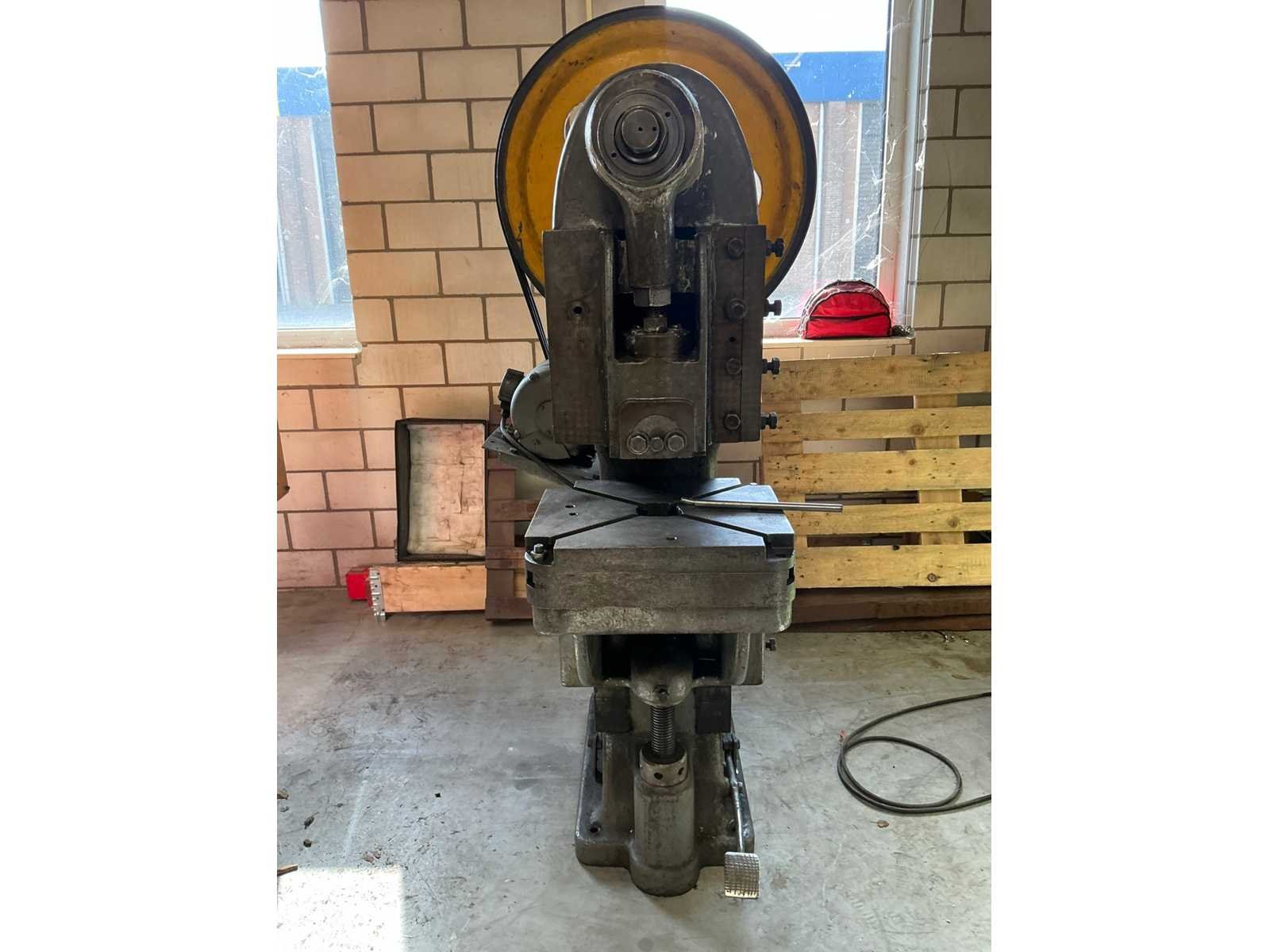 Merk: Povl Møller Type: EP30 Serienummer: 442 Capaciteit.: 30t Tafel afmeting l: 450mm Tafel afmeting b: 400mm Aansluiting: 400V Afmeting l: 1200mm Afmeting b: 930mm Afmeting h: 1900mm