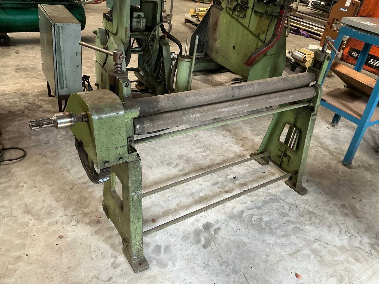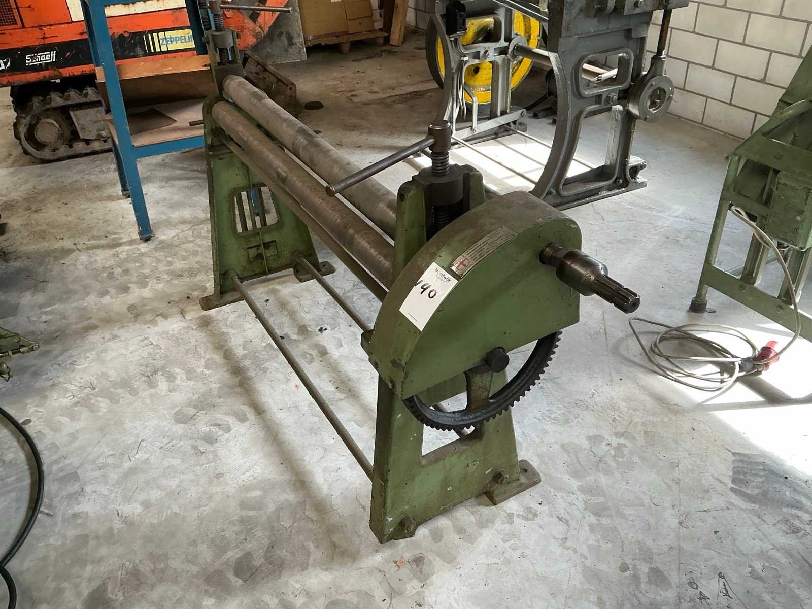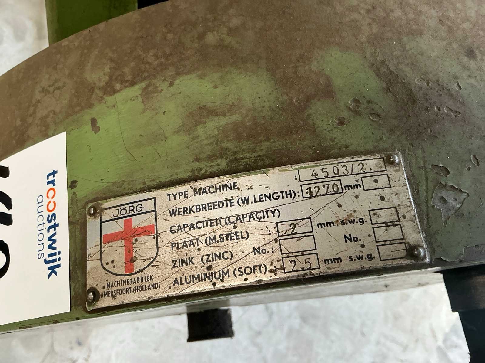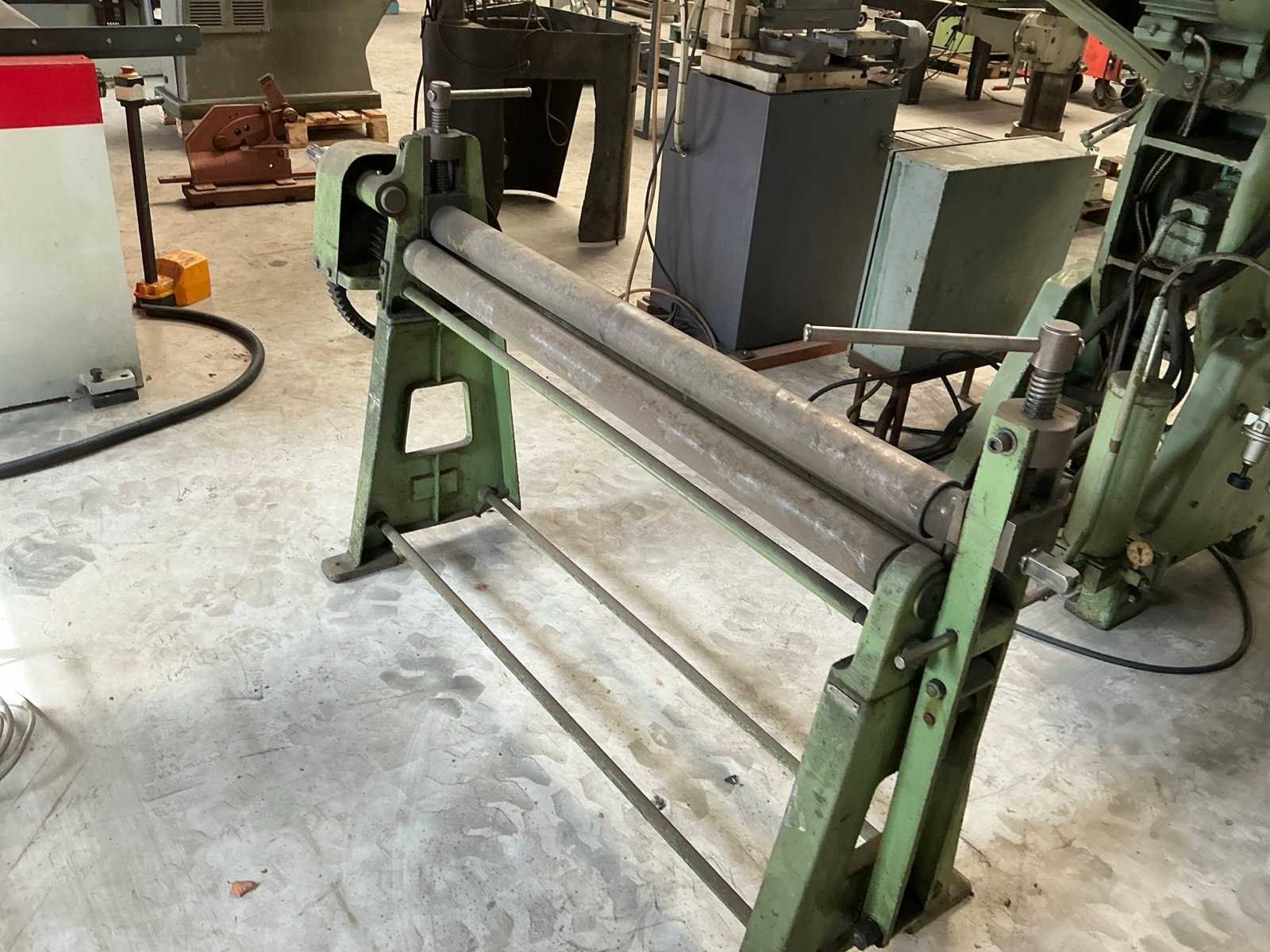 2 rollen aangedreven Merk: Jorg Type: 4503/2 Capaciteit lengte: 1270mm Max. plaatdikte: 2mm Aantal rollen: 3 Bovenrol Ø ca.: 80mm Afmeting l: 1800mm Afmeting b: 500mm Afmeting h: 1100mm