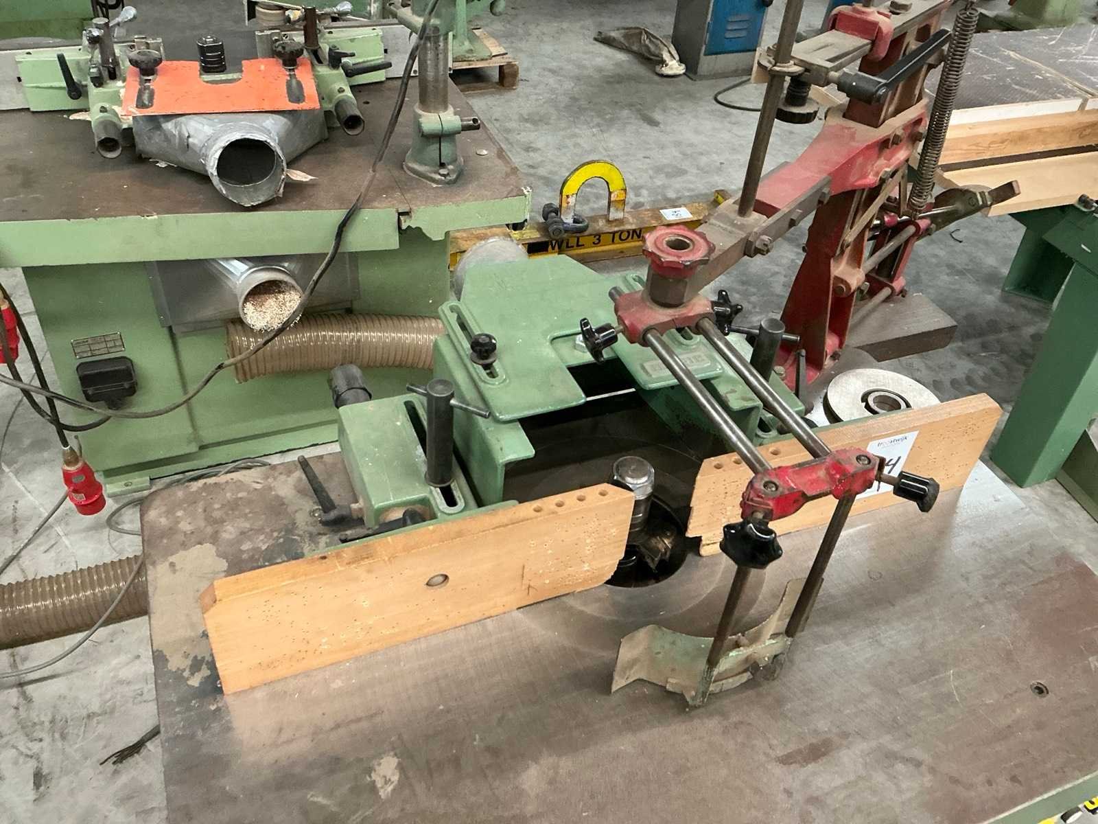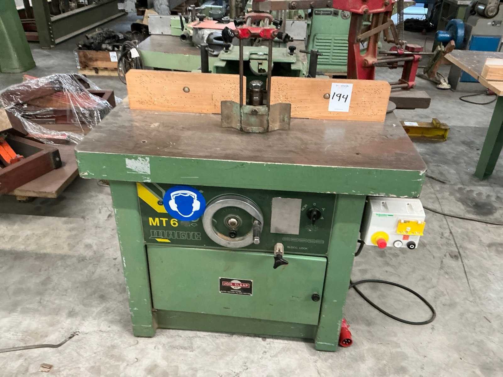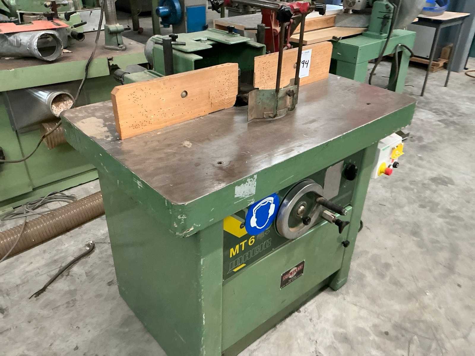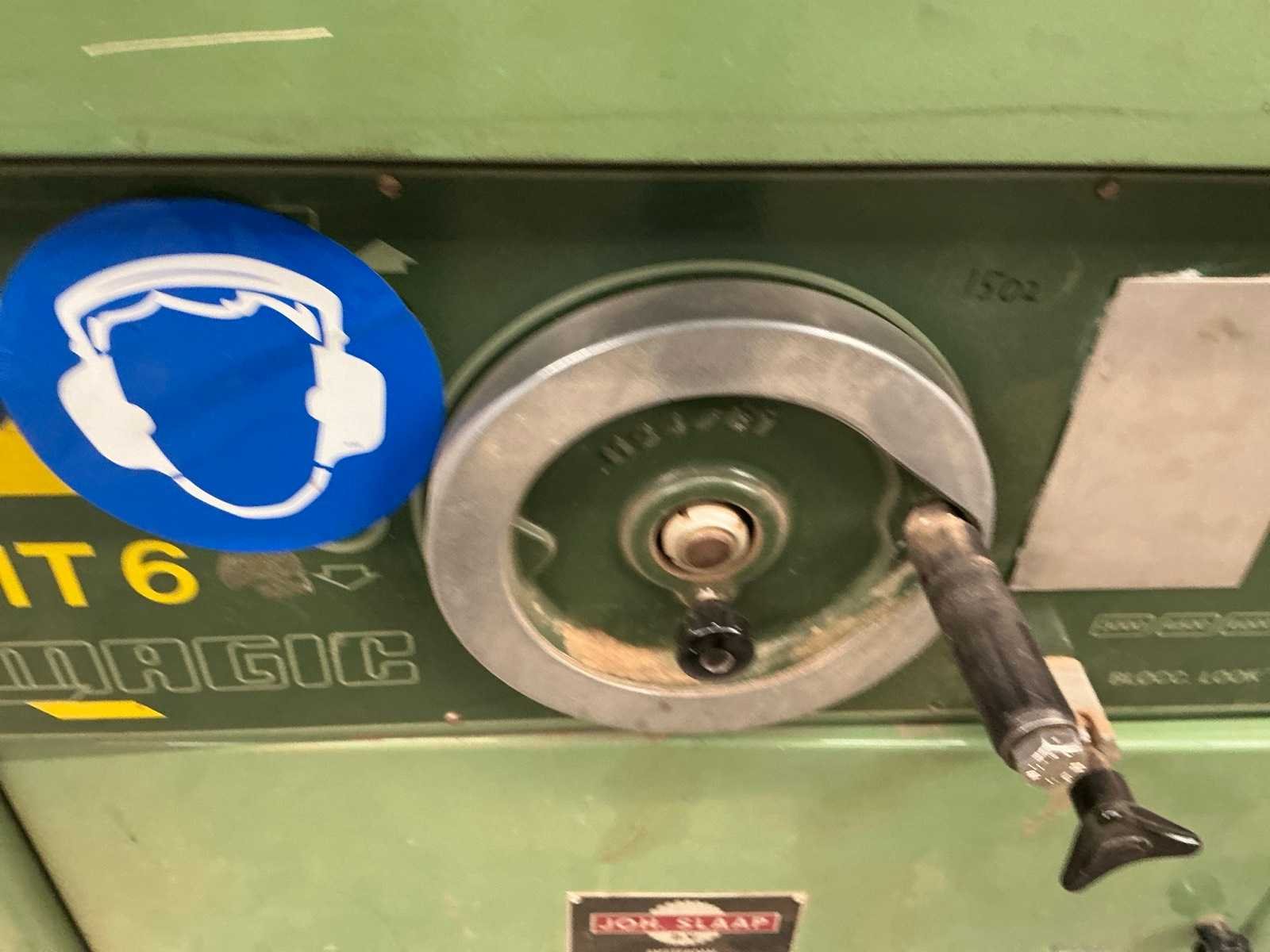 Merk: Magic Type: MT6 Tafel afmeting l: 1100mm Tafel afmeting b: 700mm Spil Ø: 40mm Snelheid van n =: 3000rpm Snelheid tot n =: 7500rpm Aansluiting: 400V Afmeting l: 1300mm Afmeting b: 1100mm Afmeting h: 1700mm