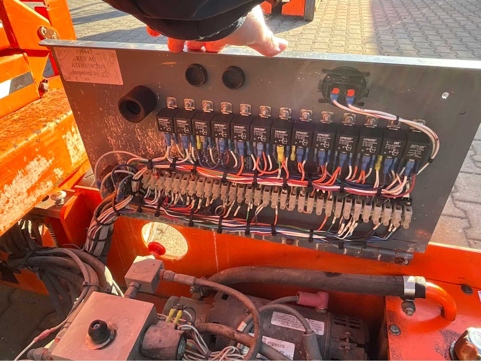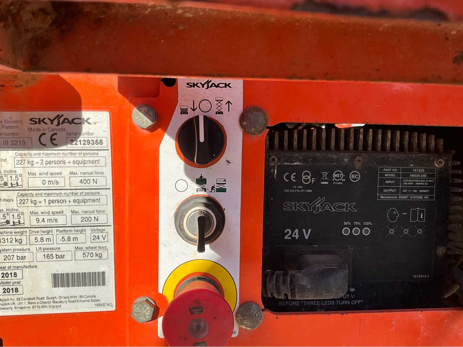 Gebruik: binnen; platform vloerhoogte 5800 mm; uitschuifbaar platform afmeting circa 2500x650 mm; interne acculader 230 Volt; kooibediening; 230 Volt stroom aansluiting platform; transporthoogte circa 1750 mm; working condition Merk: SkyJack Type: SJ III 3219 Bouwjaar: 2018 Serienummer: 22129358 Elektrisch: true Schaarhoogwerker: true Werkhoogte: 7800mm Plateau afm. l: 1600mm Plateau afm. b: 650mm Platform capaciteit: 227kg Accu lader: true Afgelezen urenstand: 244 Eigen gewicht: 1350kg Totale afmeting L: 1810mm Totale afmeting Breedte: 800mm Totale afmeting Hoogte: 2110mm