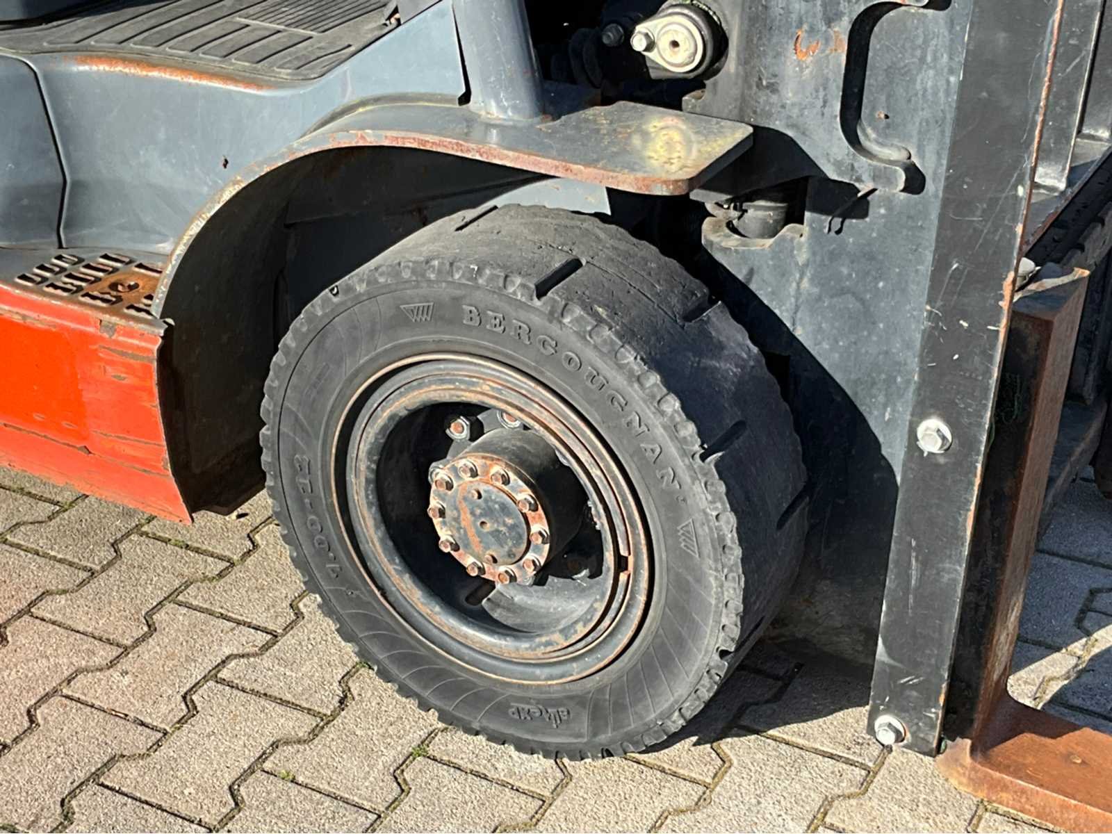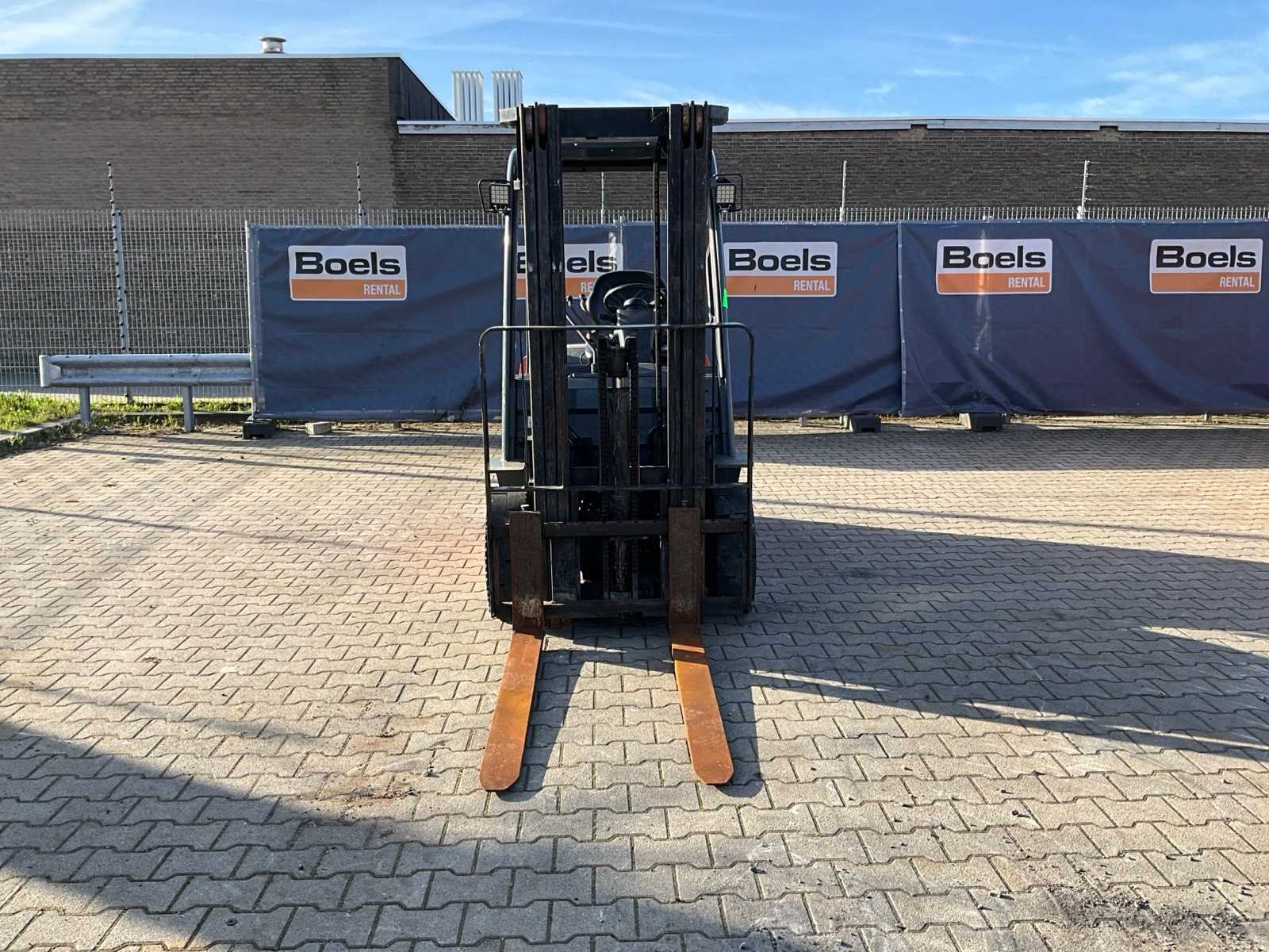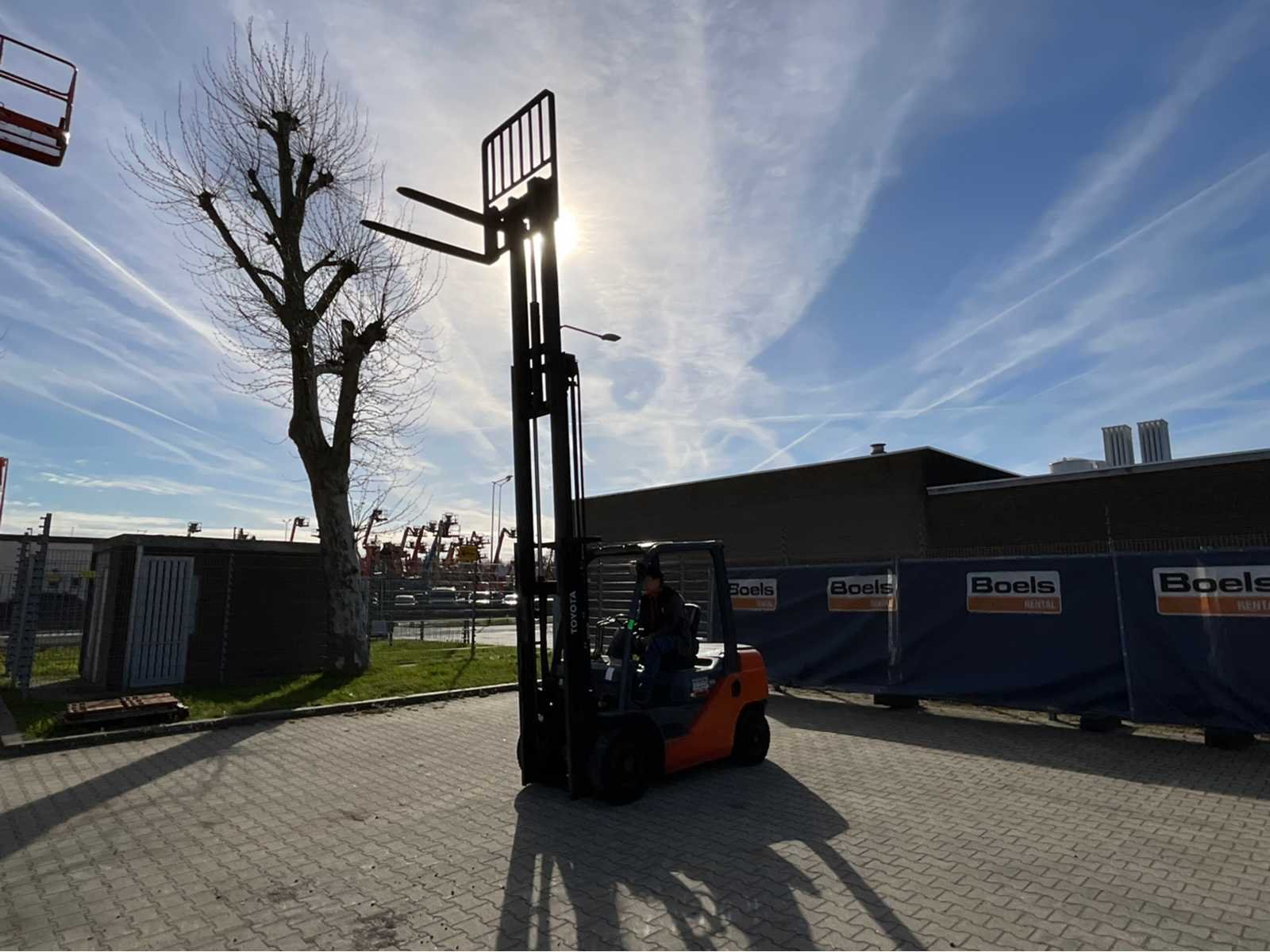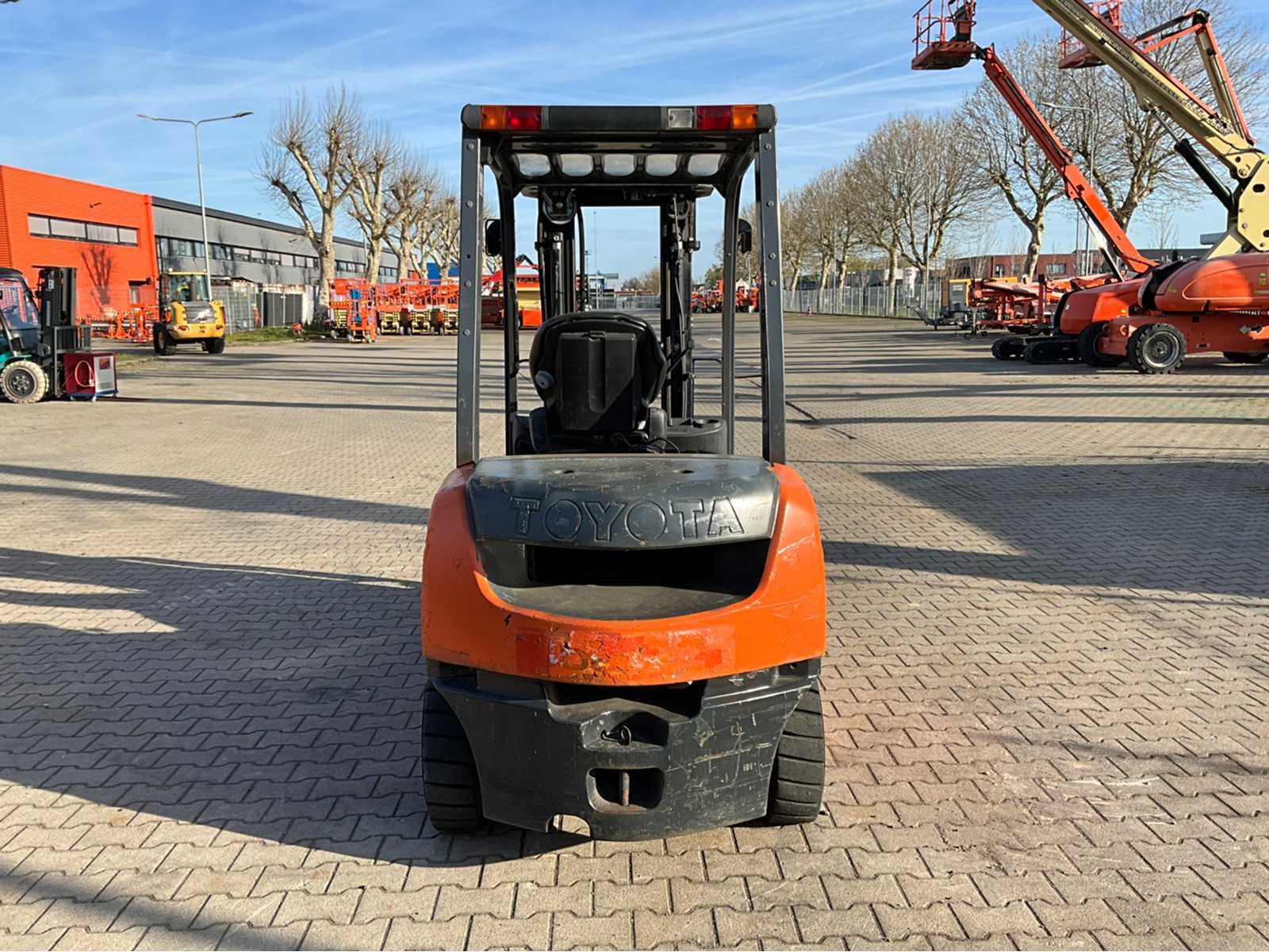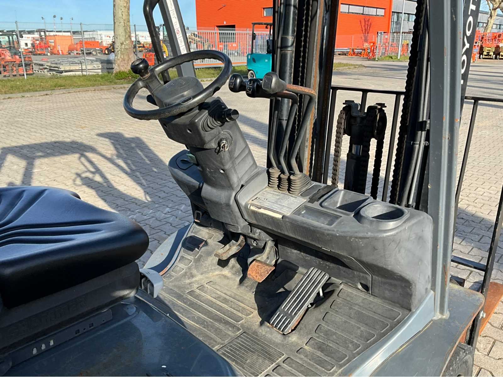 Open cabine; werkverlichting; vorkbreedte 120 mm; working condition; Merk: Toyota Type: 02-8FDF25 Bouwjaar: 2012 Serienummer: 8FDF2530805 Brandstof: Diesel Mast: Triple Soort band: Volrubber banden Aantal wielen: 4 Afgelezen urenstand: 3328 Free-lift: true Triple mast: true Eigen gewicht: 4000kg Hefvermogen: 2500kg Lepellengte: 1200mm Max. hefhoogte: 4700mm Vol rubber banden: true Minimale doorrijhoogte: 2150mm Totale afmeting L: 3950mm Totale afmeting Breedte: 1200mm Totale afmeting Hoogte: 2150mm Diesel: true