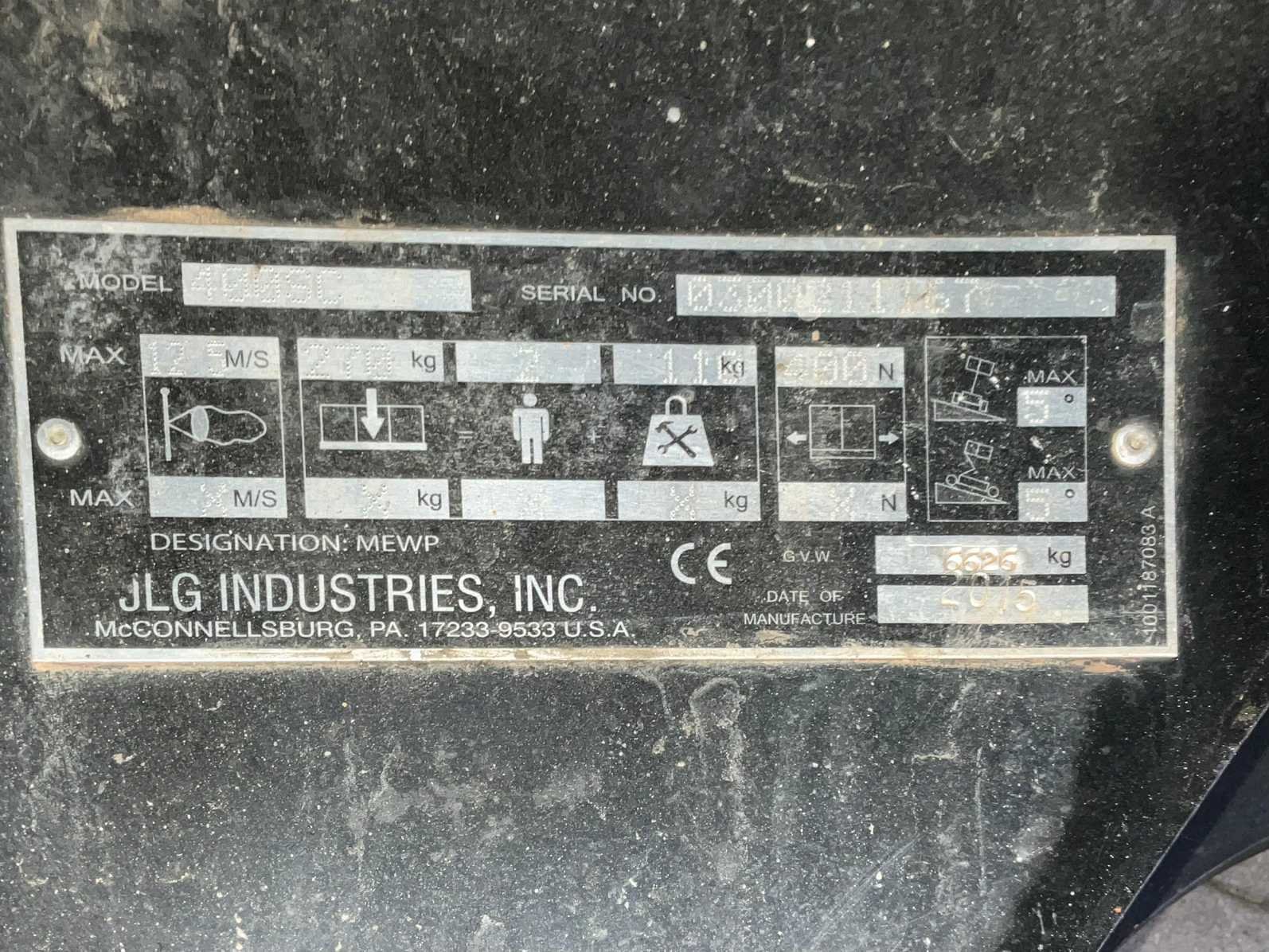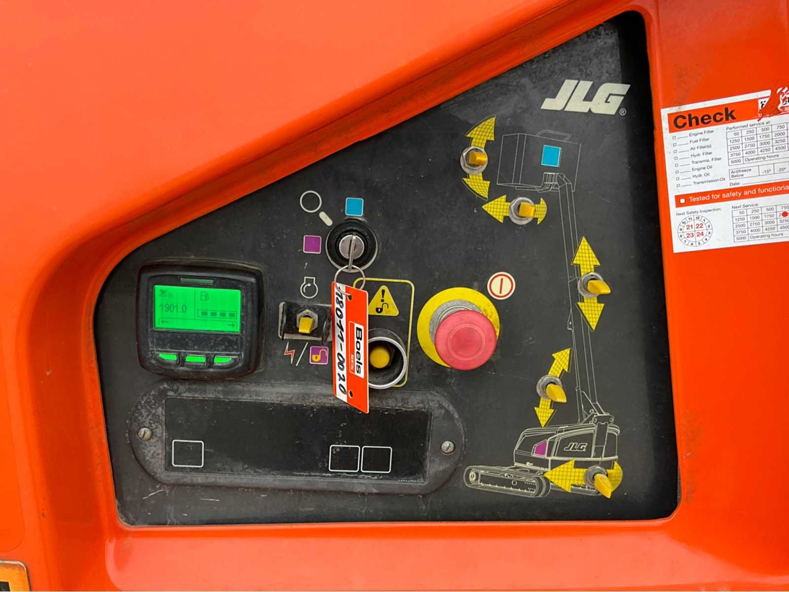 Gebruik: buiten; Ruwterrein; platform vloerhoogte 12050 mm; rupsbreedte 400 mm; Deutz dieselmotor; kooibediening; 230 Volt stroom aansluiting kooi; inclusief stroom generator; working condition; Merk: JLG Type: 400SC Bouwjaar: 2015 Serienummer: 0300211167 Diesel: true Telescoop hoogwerker: true Werkhoogte: 14050mm Horizontale rijkwijdte: 10100mm Plateau afm. l: 1800mm Plateau afm. b: 900mm Platform capaciteit: 450kg Afgelezen urenstand: 1902 Eigen gewicht: 6750kg Totale afmeting L: 7700mm Totale afmeting Breedte: 2250mm Totale afmeting Hoogte: 2250mm