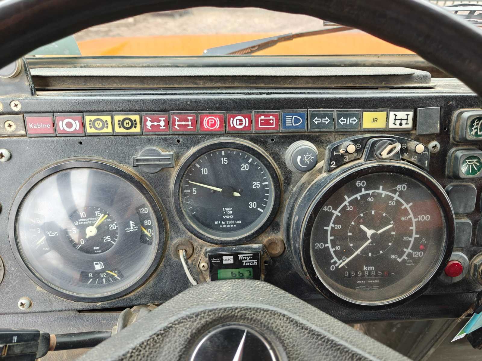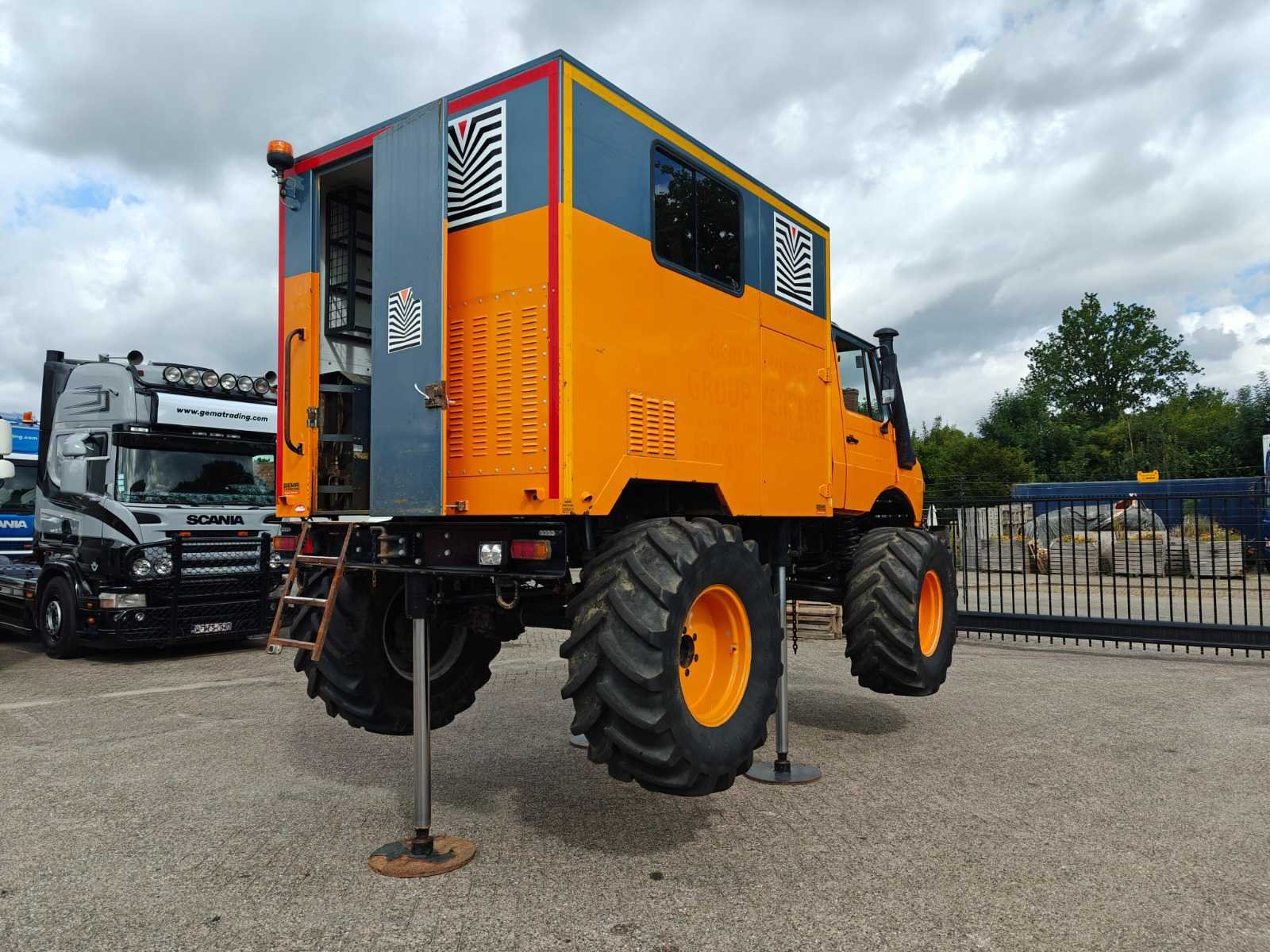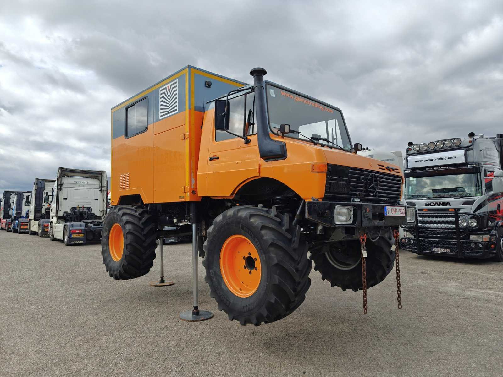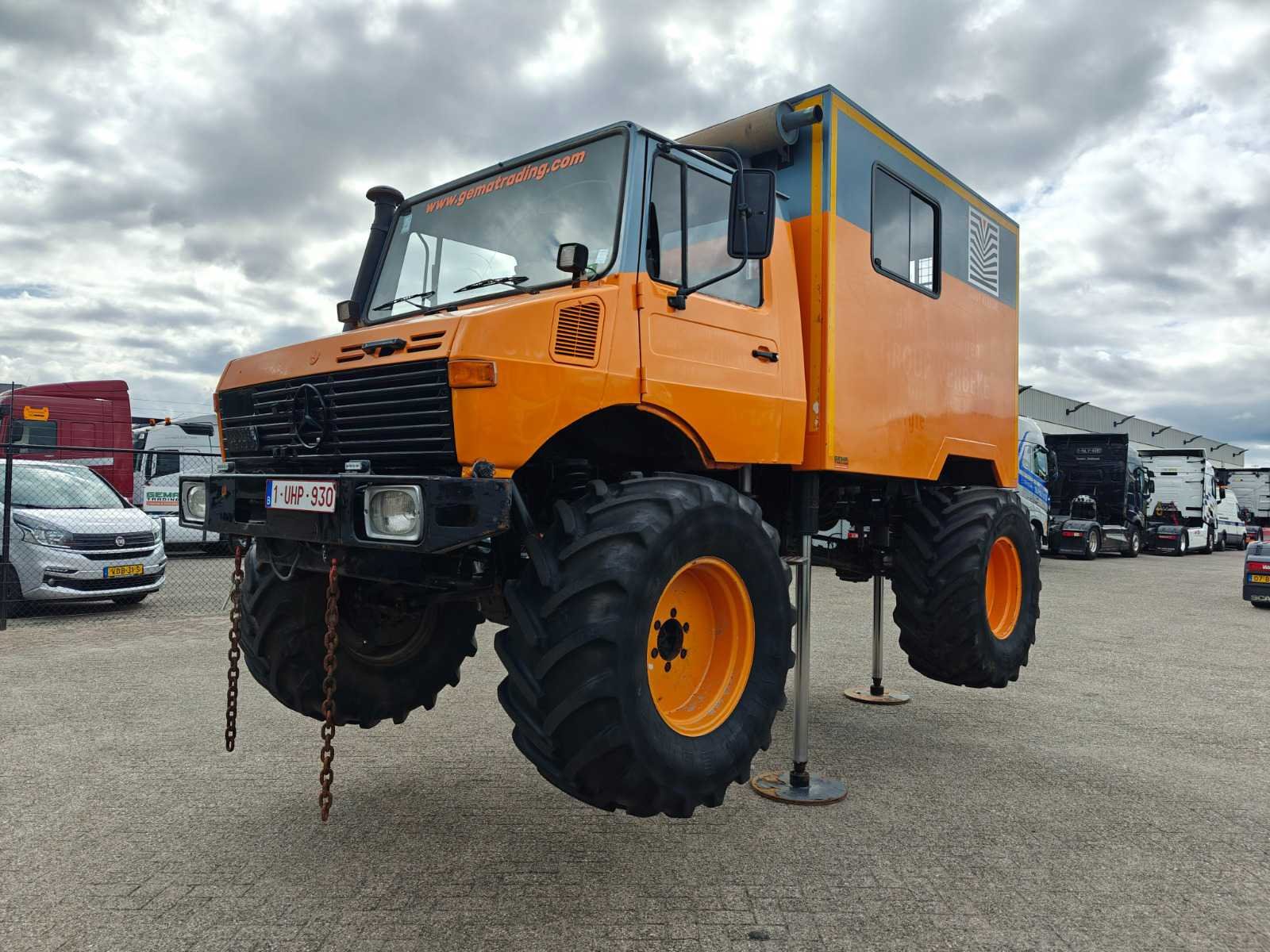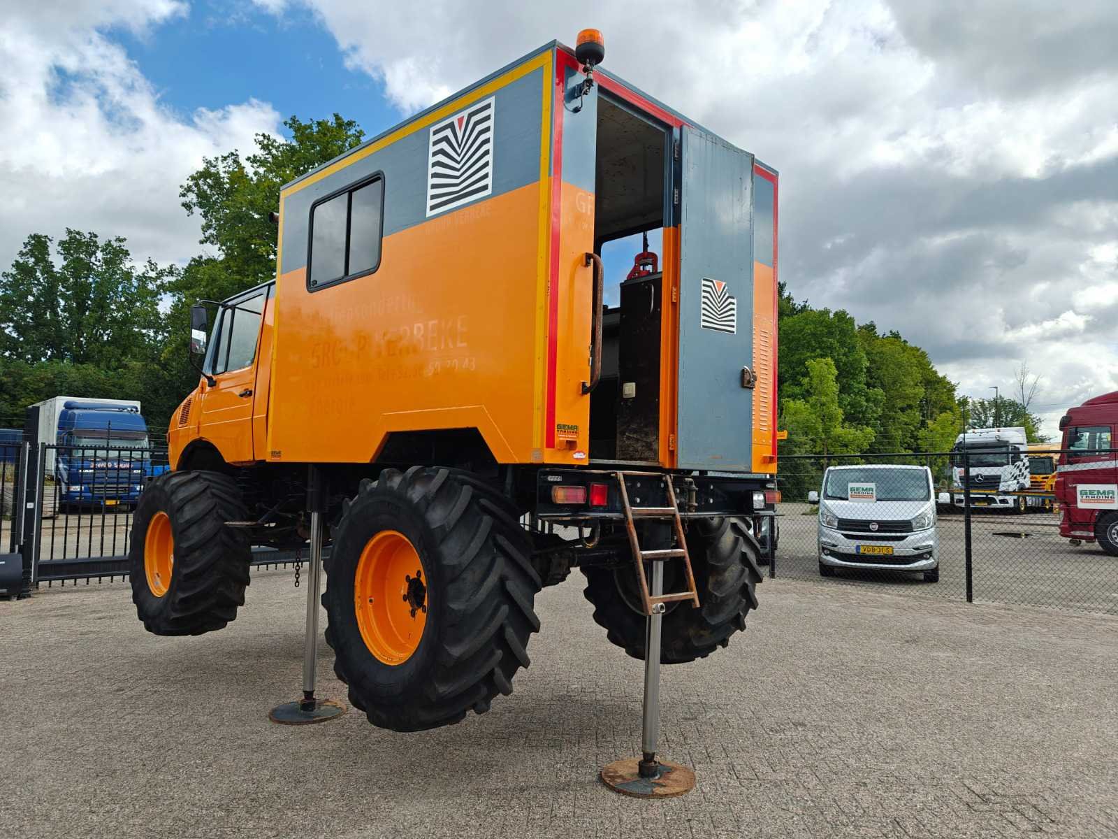 Voorzien van gesloten bak met sondeer systeem, “Webasto”, 3 hydraulische steunpoten, trommelremmen, roetfilter, zwaailamp(en), sper, standkachel, hydrauliek, vierwielaandrijving, snelheidsbegrenzer, sperdifferentieel en aftakas (PTO) Kenteken: 1-UHP-930 Merk: Mercedes-Benz Type: Unimog 1300L Bouwjaar: 1985 Chassisnummer VIN: 43511510119561 Cilinderinhoud: 5638cc Kilometerstand bij opname: 59885km Type transmissie: Handmatig Aantal assen: 2 Asconfiguratie: 4x4 Laadvermogen: 2950kg Aantal sleutels: 1 Emissieklasse: Euro 0 Totale afmeting L: 2690mm Totale afmeting Breedte: 1960mm Totale afmeting Hoogte: 1880mm Nationaliteit documenten: België Kentekenpapieren compleet?: true Aantal zitplaatsen: 1 Handgeschakelde versnellingsbak: true Diesel: true