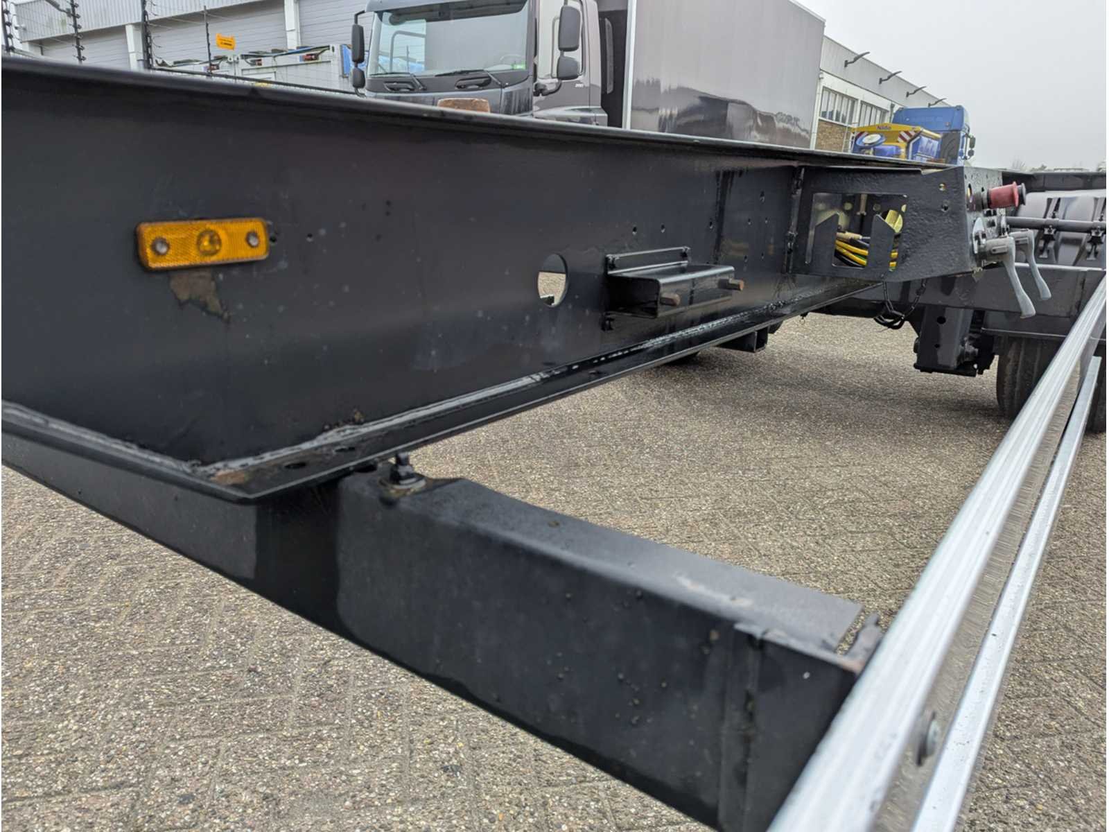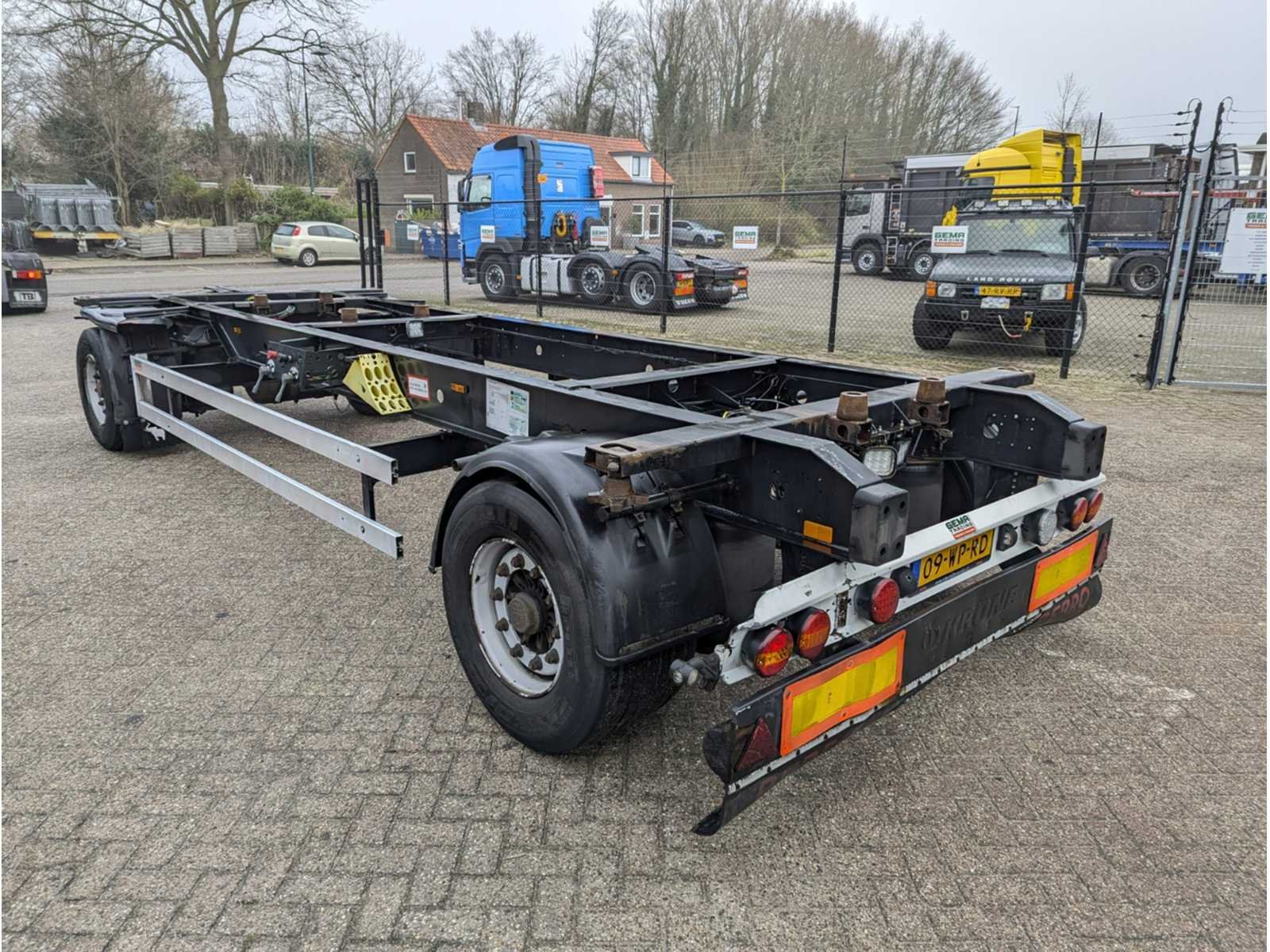 Voorzien van ABS, schijfremmen, luchtvering, 2-assen BPW, banden ca. 60 en twistlocks Kenteken: 09-WP-RD Merk: Krone Type: SW 18 Bouwjaar: 2008 Chassisnummer VIN: WKEAZ000000407748 Cilinderinhoud: 0cc APK vervaldatum: 2025-11-23 Datum eerste toelating: 2008-04-11 Aantal assen: 2 Laadvermogen: 14950kg Eigen gewicht: 3050kg Totale afmeting L: 9200mm Totale afmeting Breedte: 2550mm Totale afmeting Hoogte: 1080mm